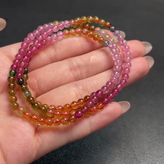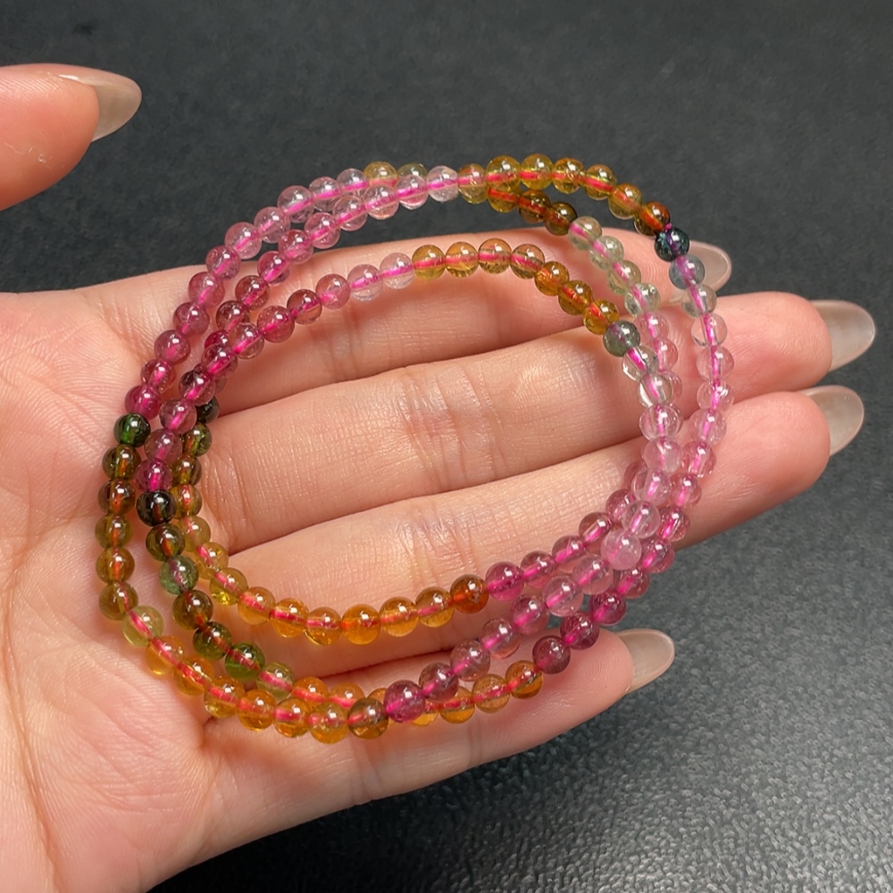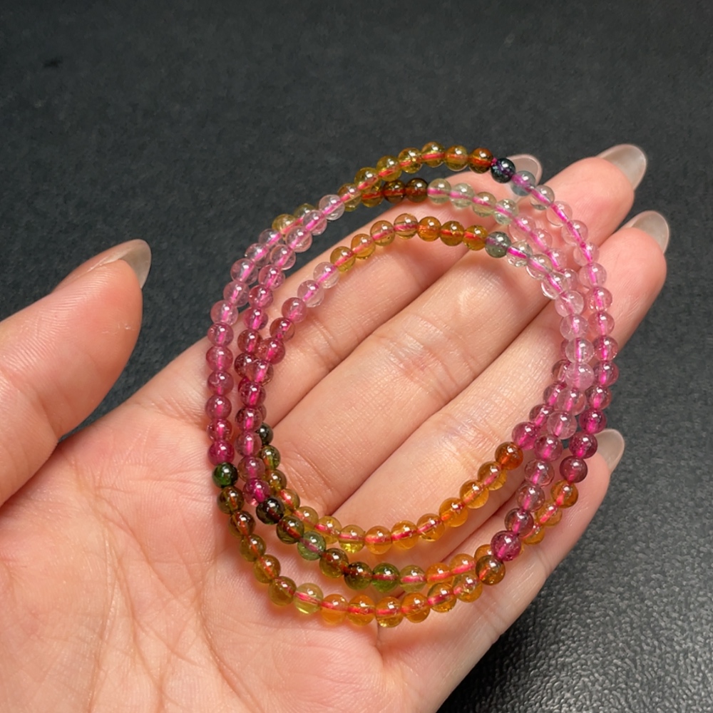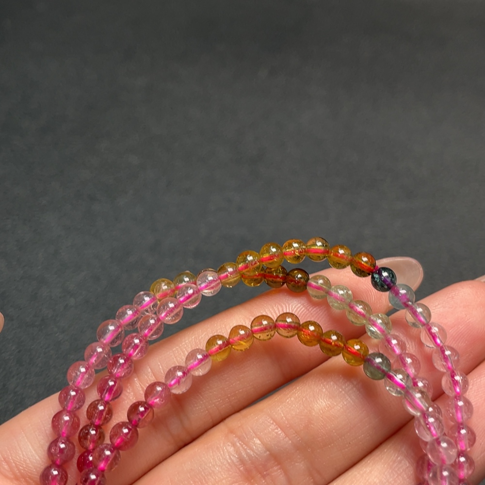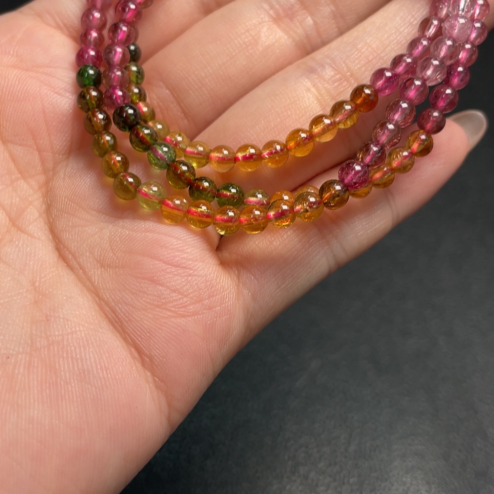 Tourmaline Bead Necklace with Visible Organic Matter, Total Weight Approx. 13.82g, Size ~3.8mm