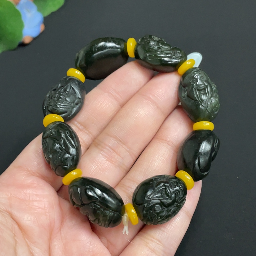 Hetian Jade God of Wealth Bracelet, Total Weight Approx. 63.6g