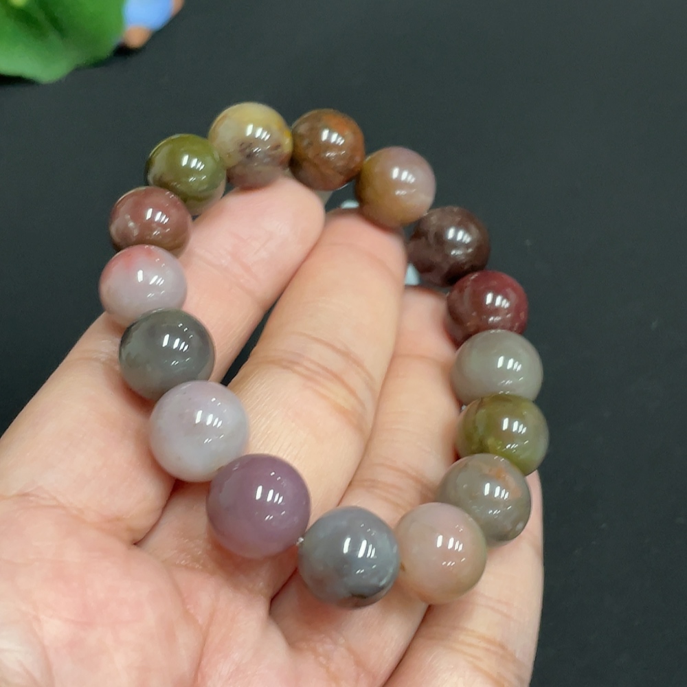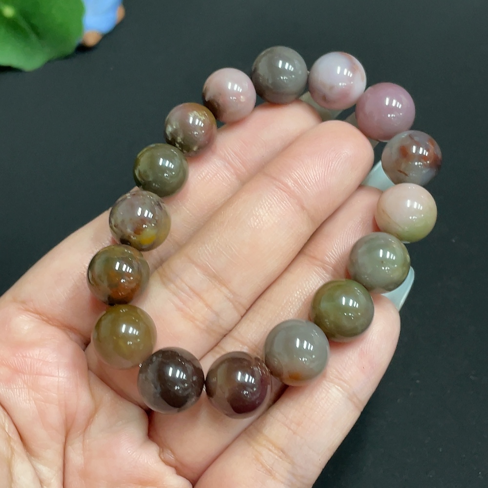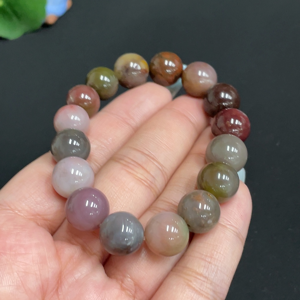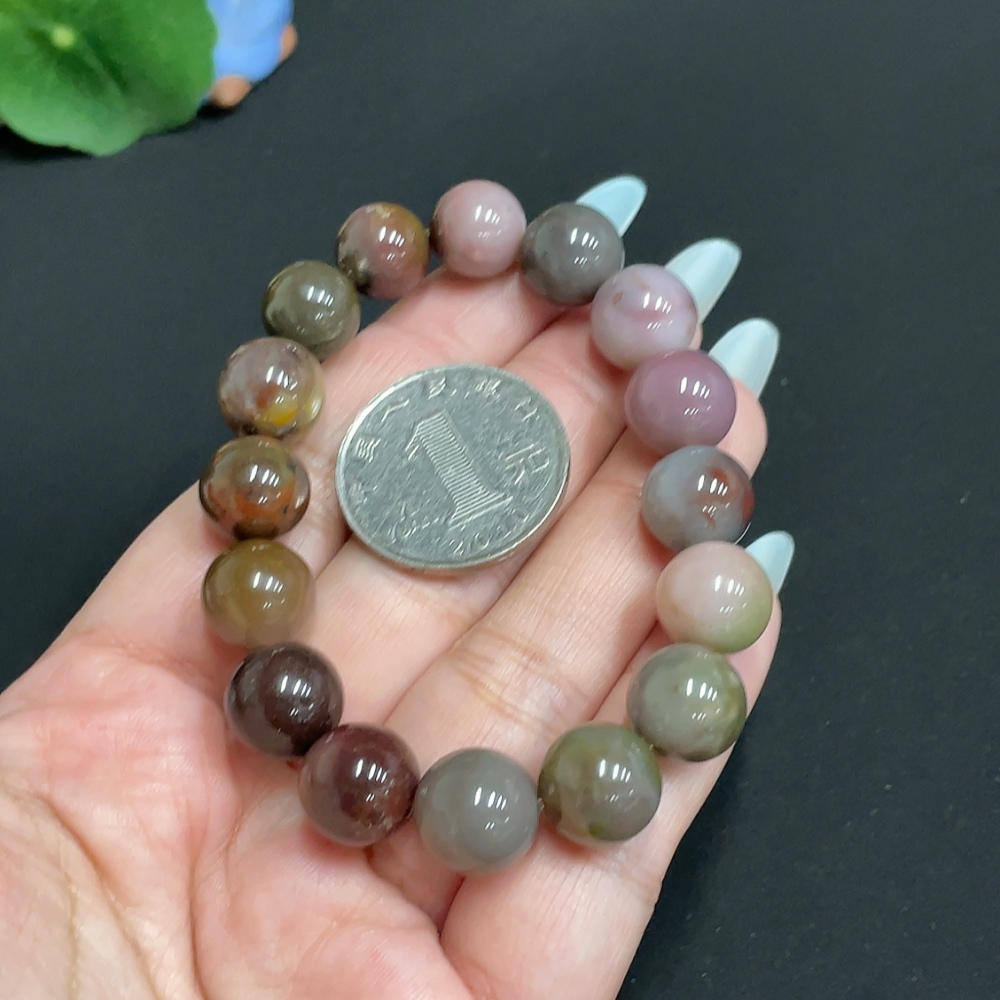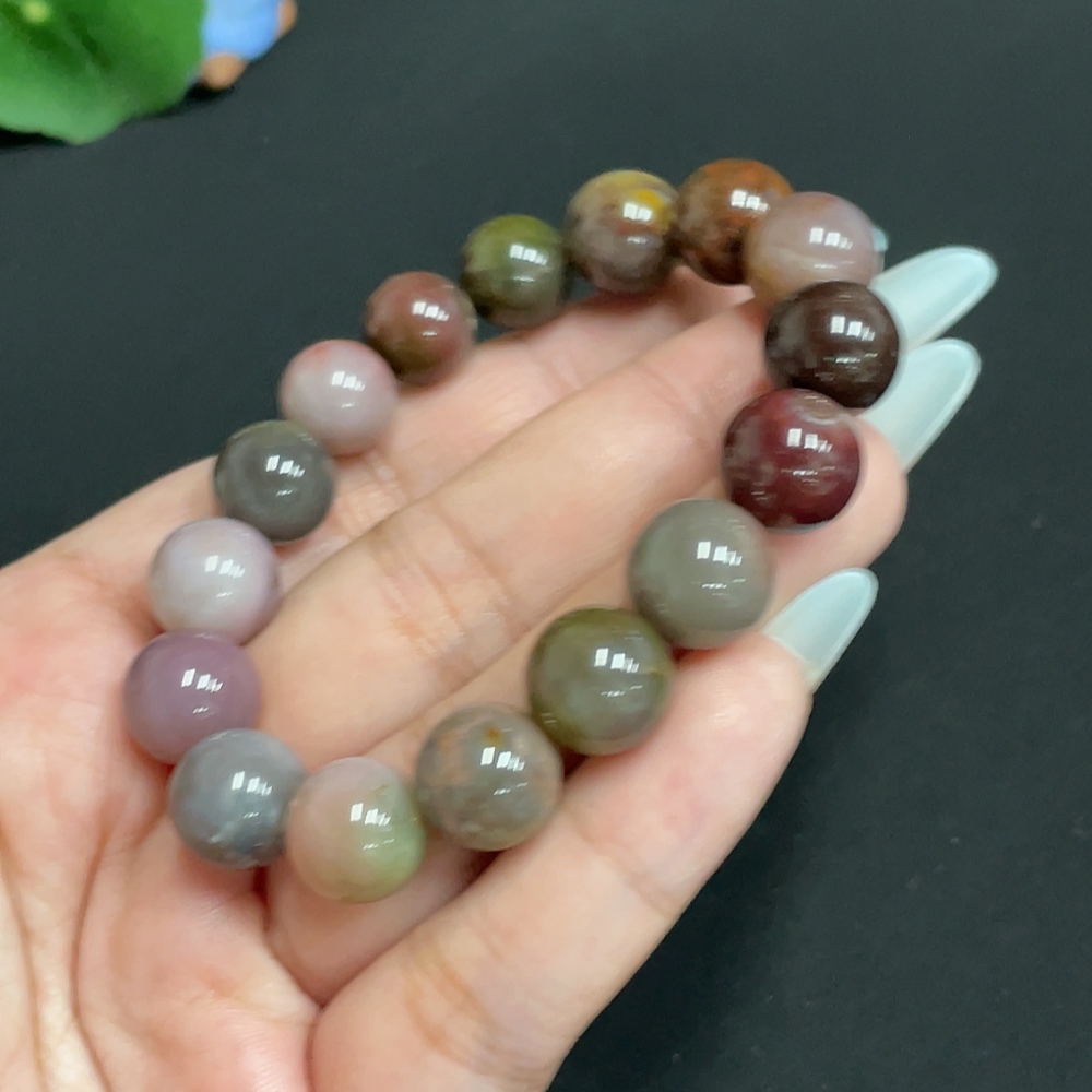 Salt Source Agate Bracelet, approx. 11.7 mm, visible organic matter, total weight approx. 33.6g