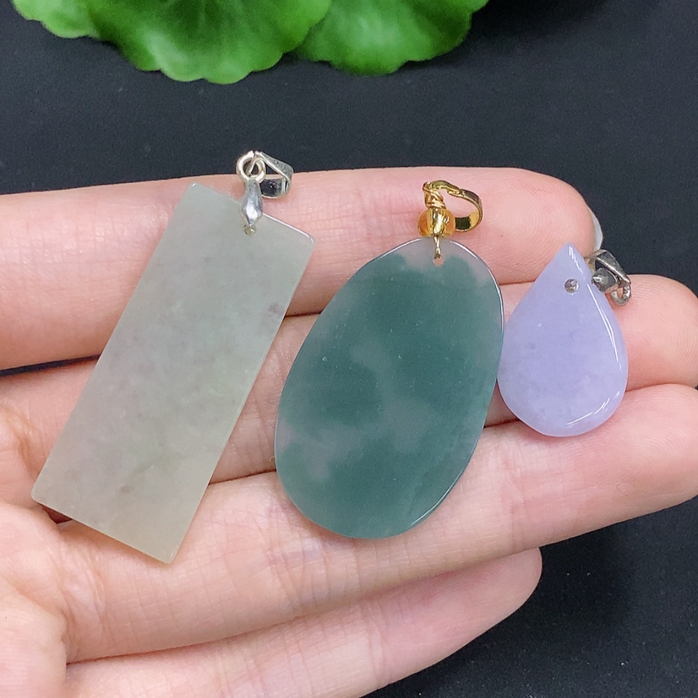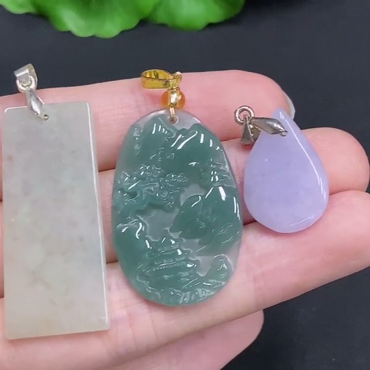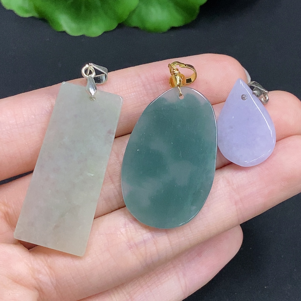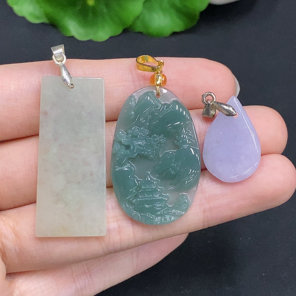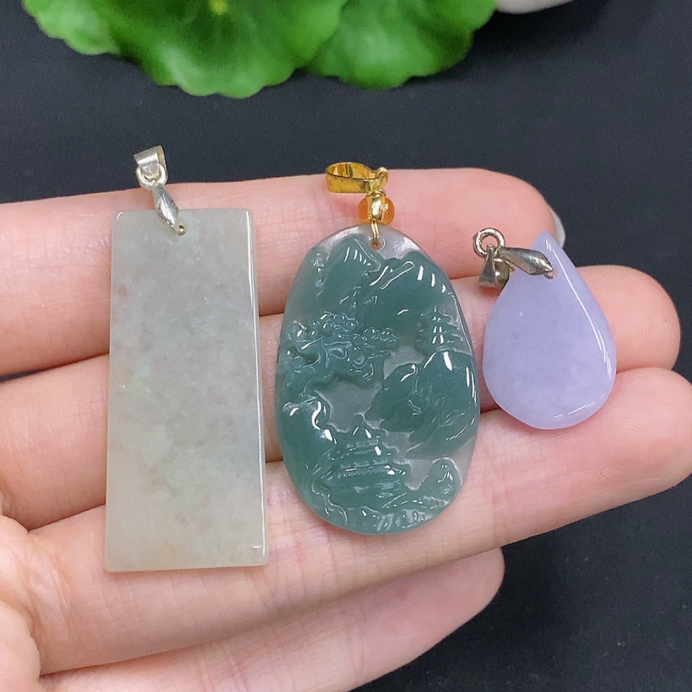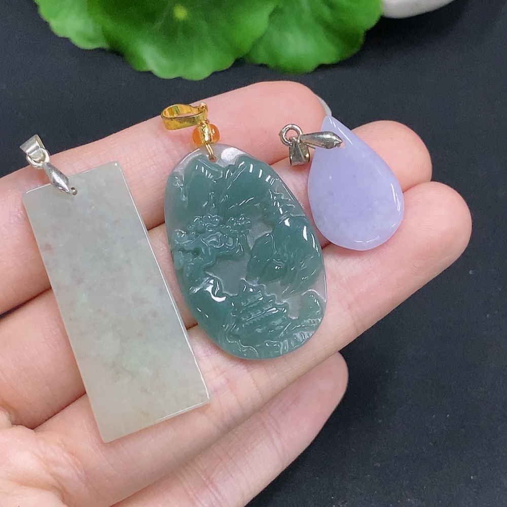 Jadeite Pendants Sell as a Lot Non-gold Inlaid