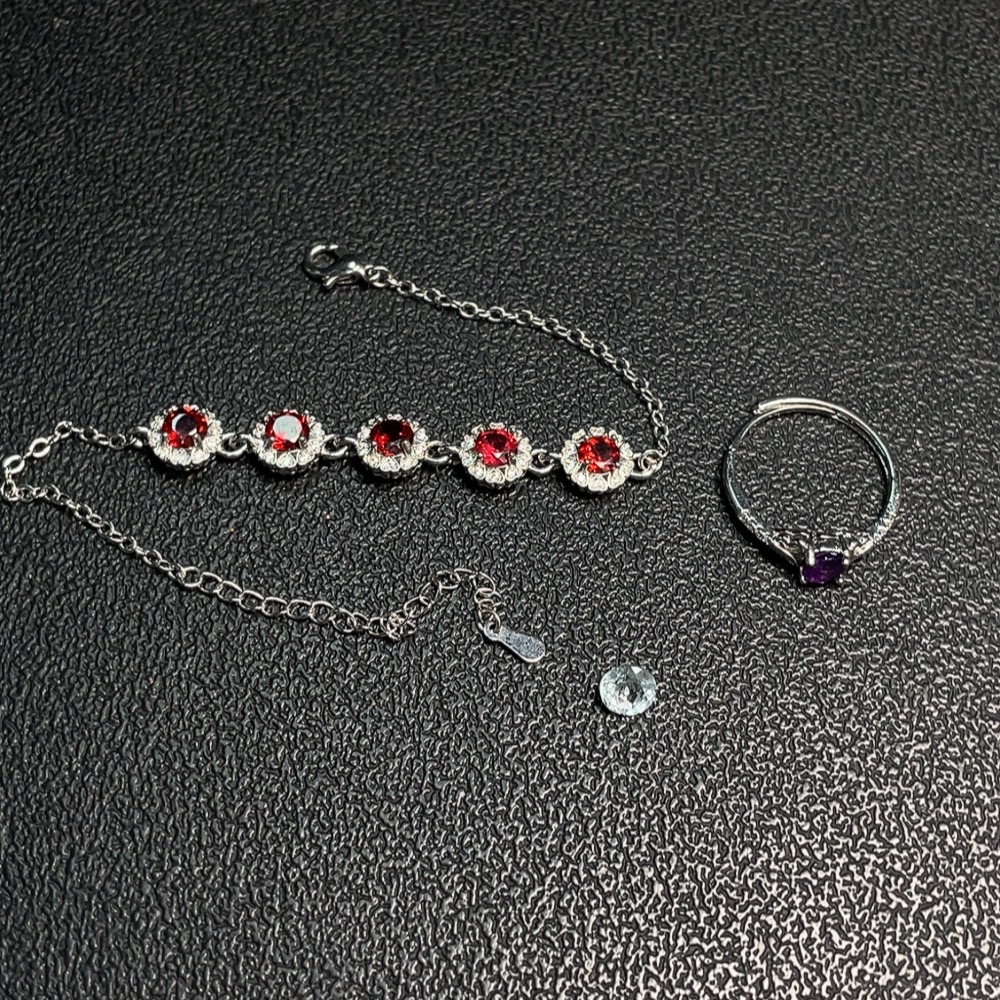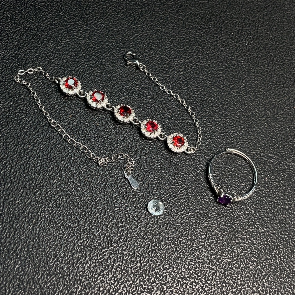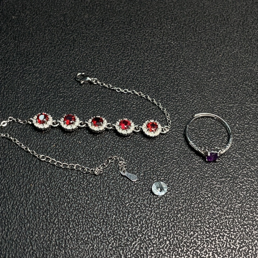 Crystal, Aquamarine, Garnet Inlaid Bracelet + Ring + Loose Stones, Non-Gold Inlaid, Total Weight Approximately 5.93g