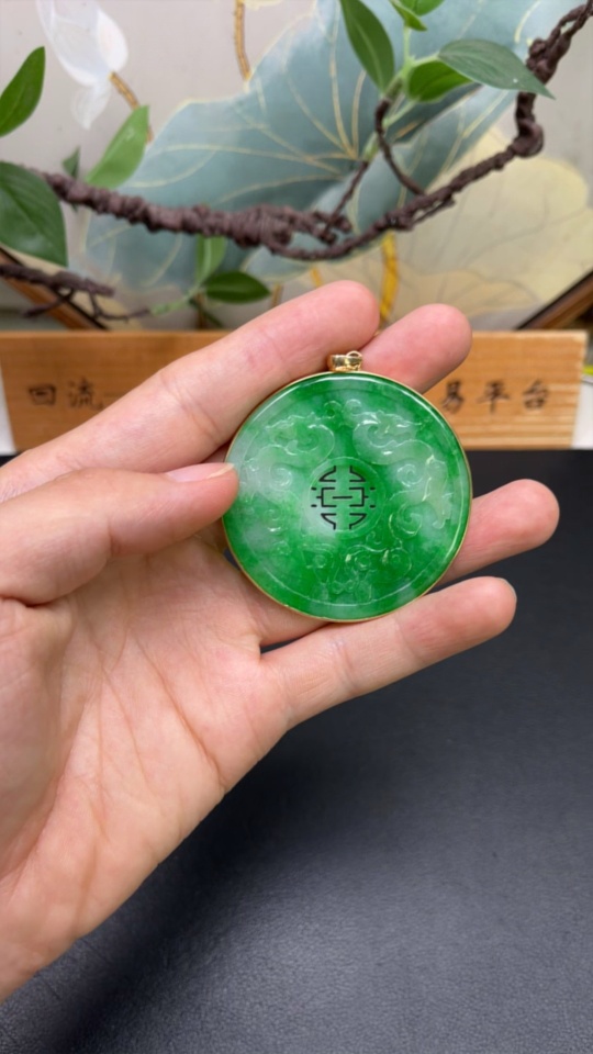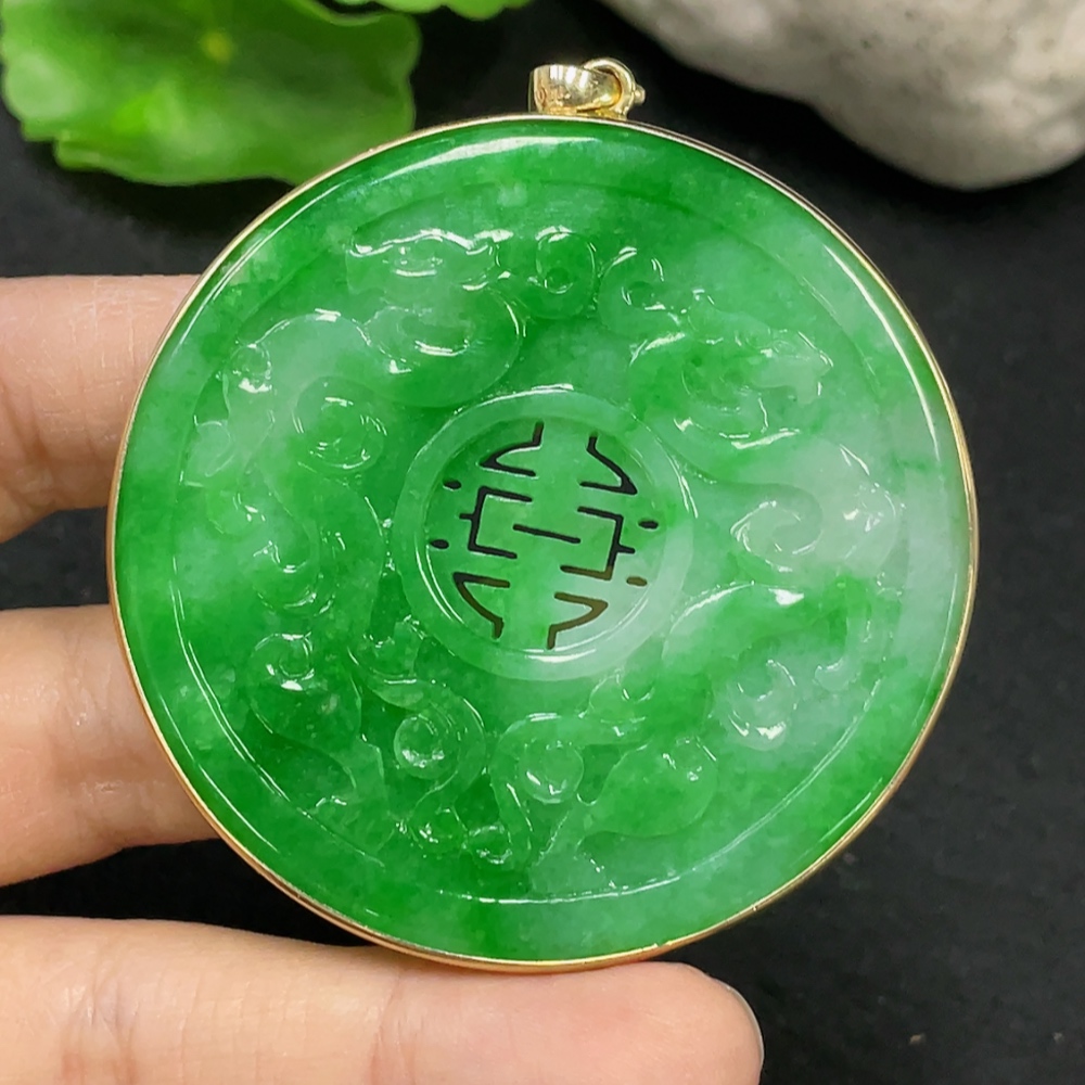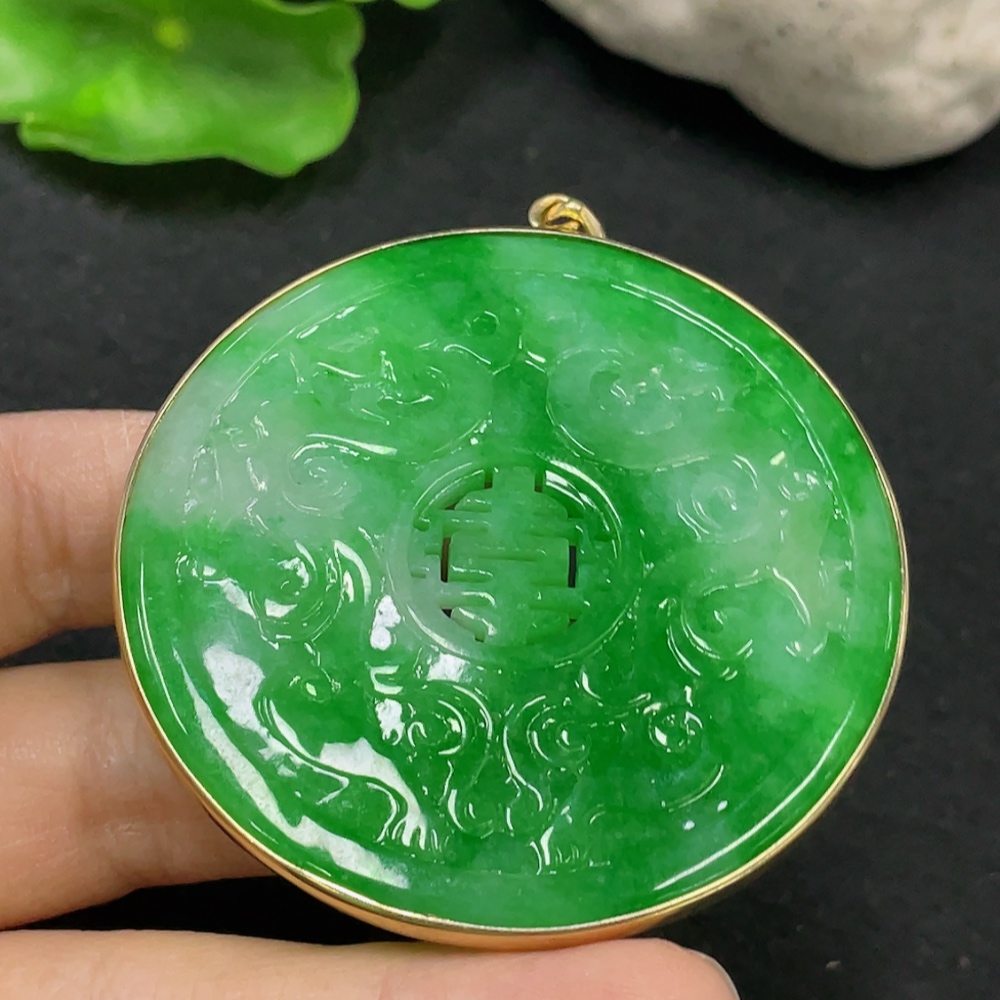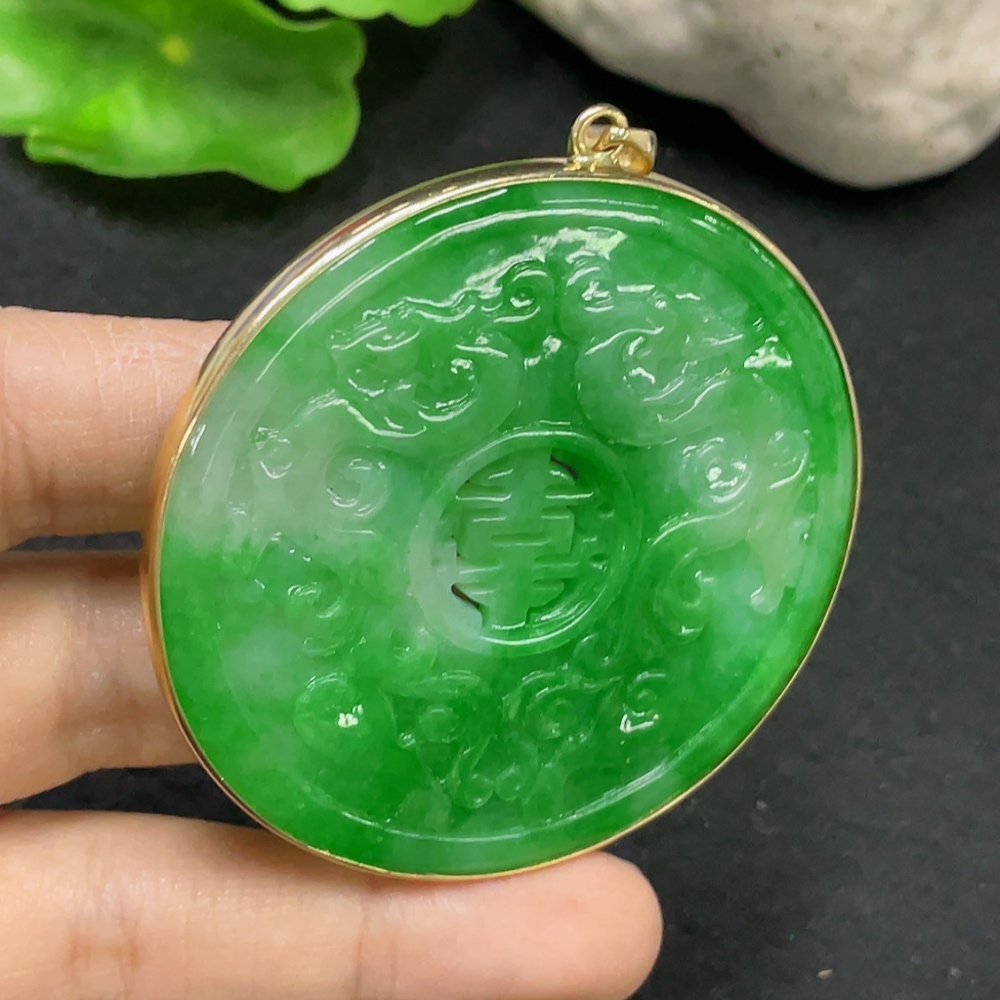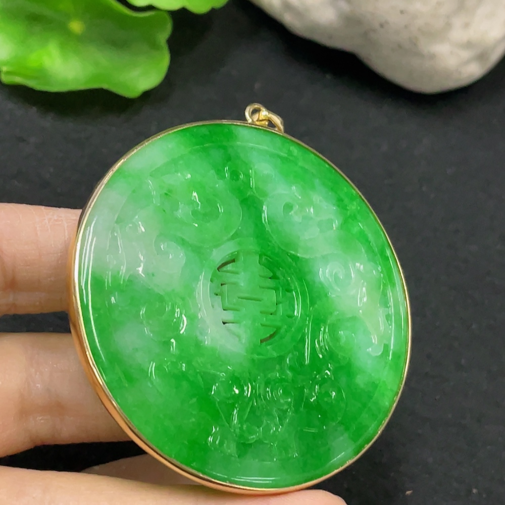 JadeiteInlaid Piece with 73% Gold in Clasp and 72% Gold in Main Body, Total Weight Approx. 28.34g