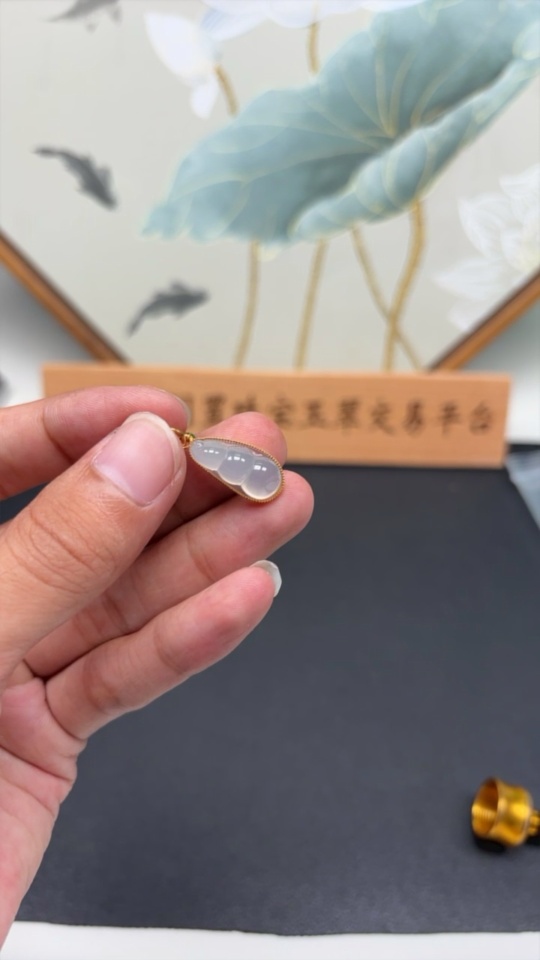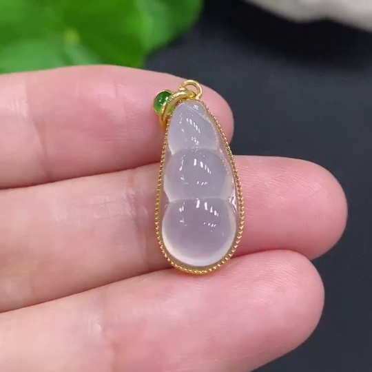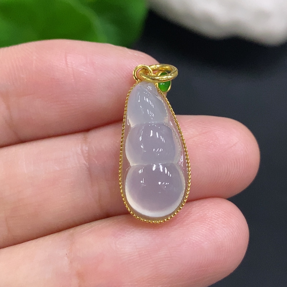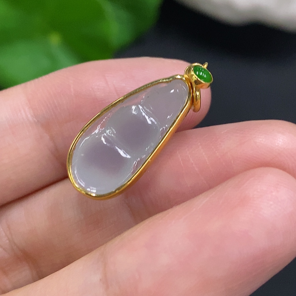 Jadeite Auspicious Bean Pendant with 18K Gold Setting, Total Weight Approx. 2.4g