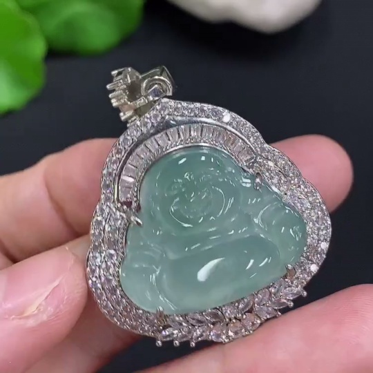 Jadeite Buddha Pendant Inlaid Without Gold Total Weight Approx. 16.5g