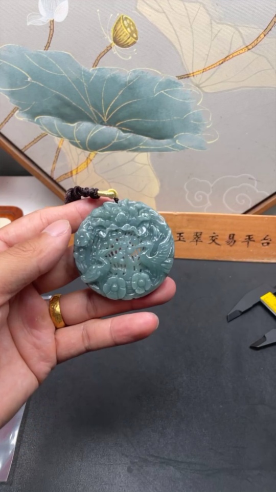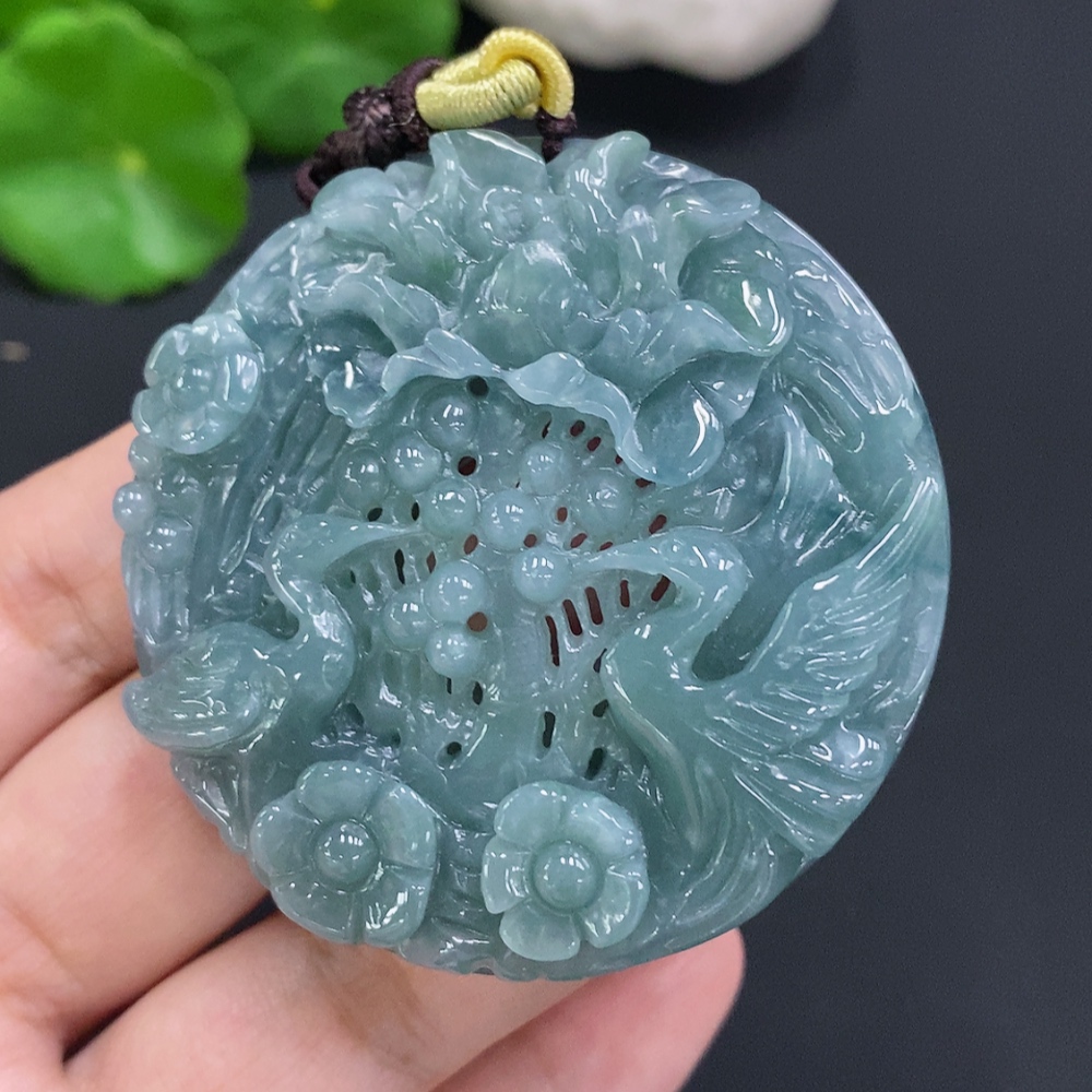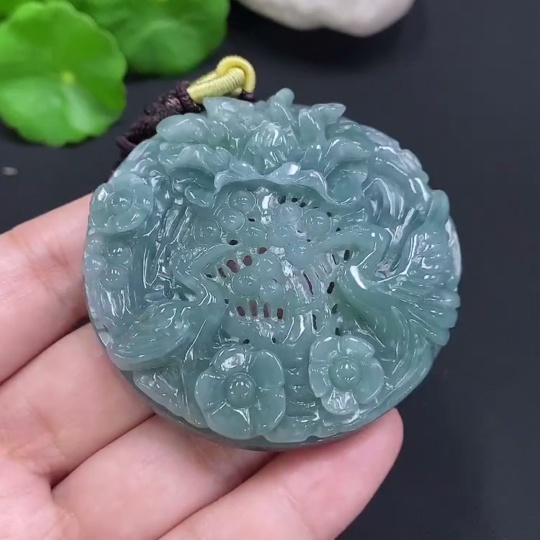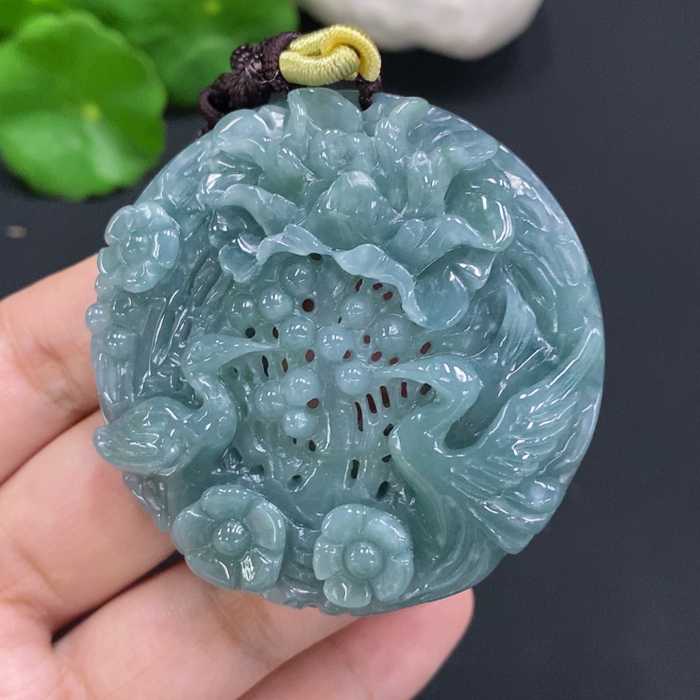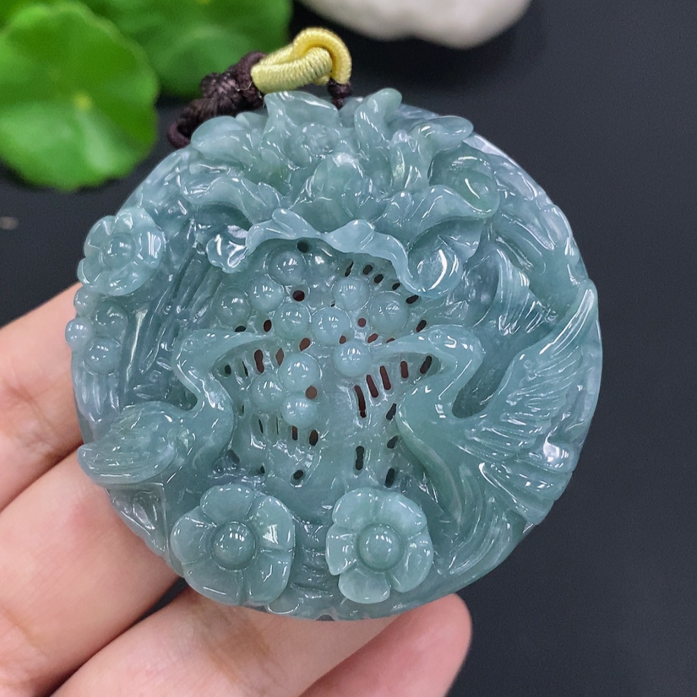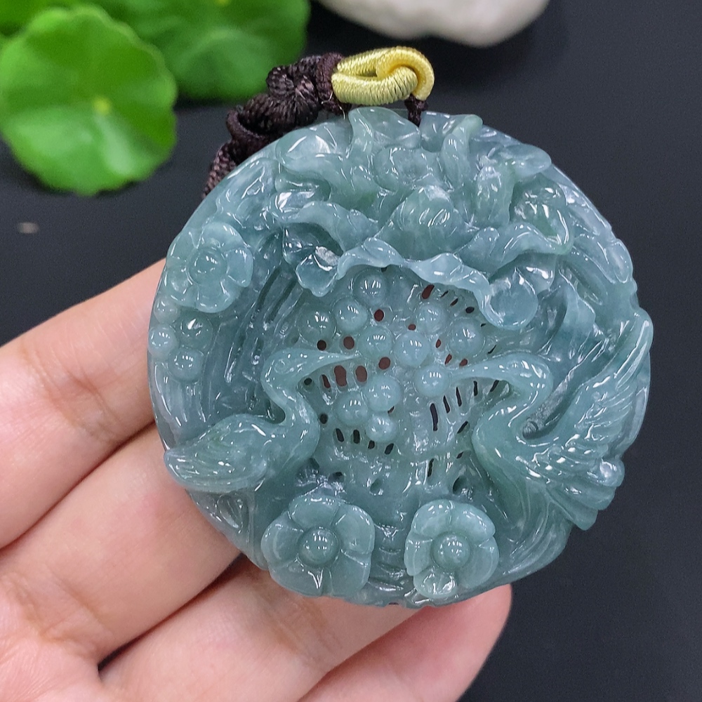 Trezaar - JadeiteMandarin Ducks Playing in Water Pendant