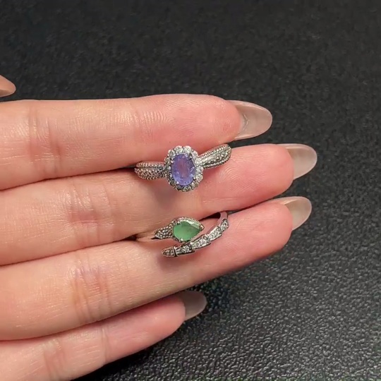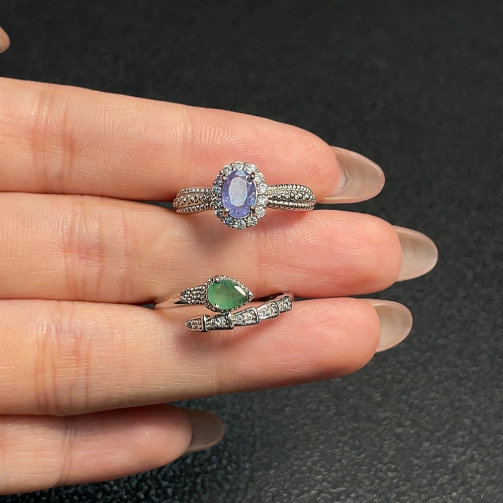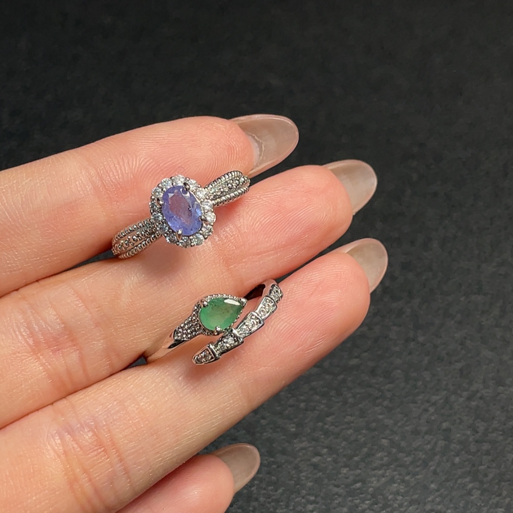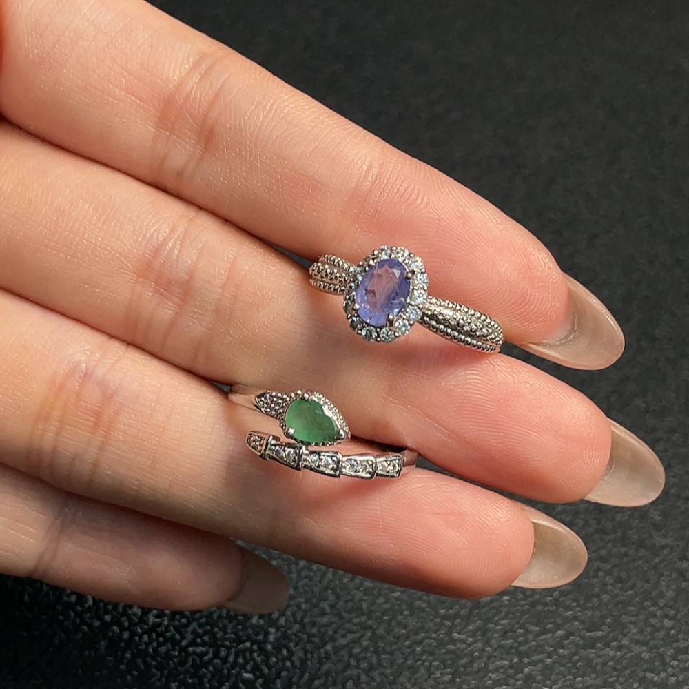 Tanzanite + Emerald Clarity Enhanced Ring, Adjustable, Non-Gold, Non-Diamond, Total Weight Approx. 3.90g, Sell as a Lot