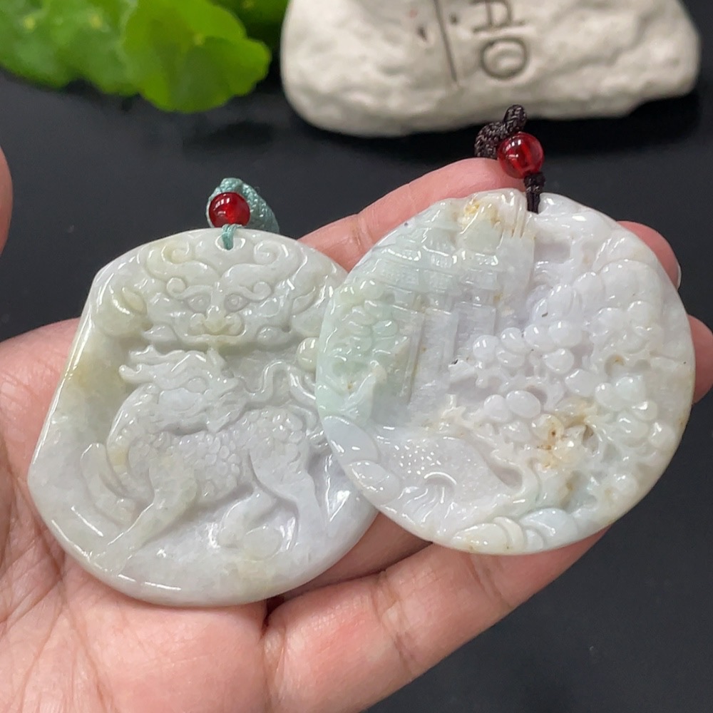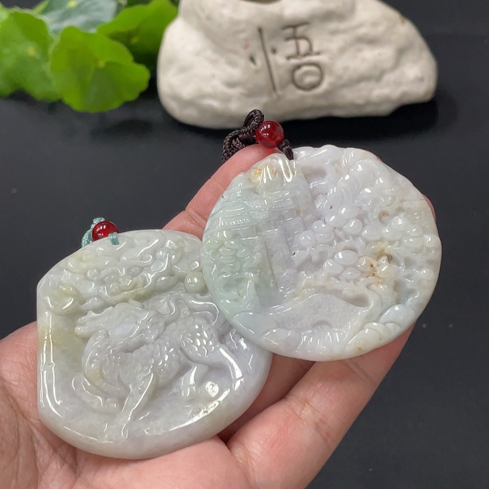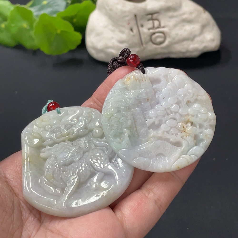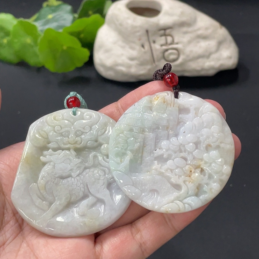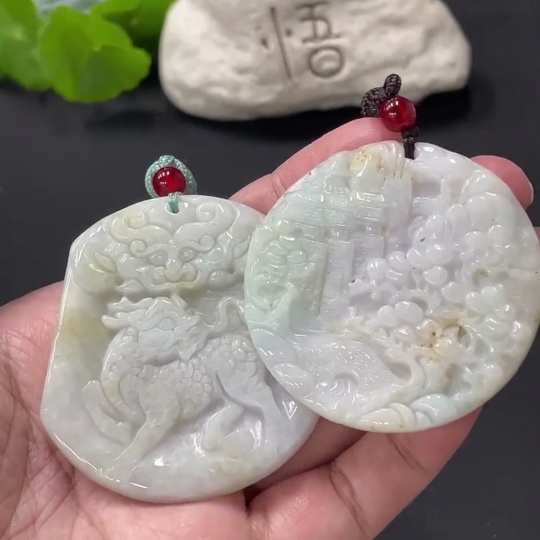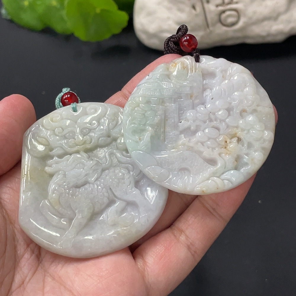 JadeitePendant Kylin Landscape Plaque