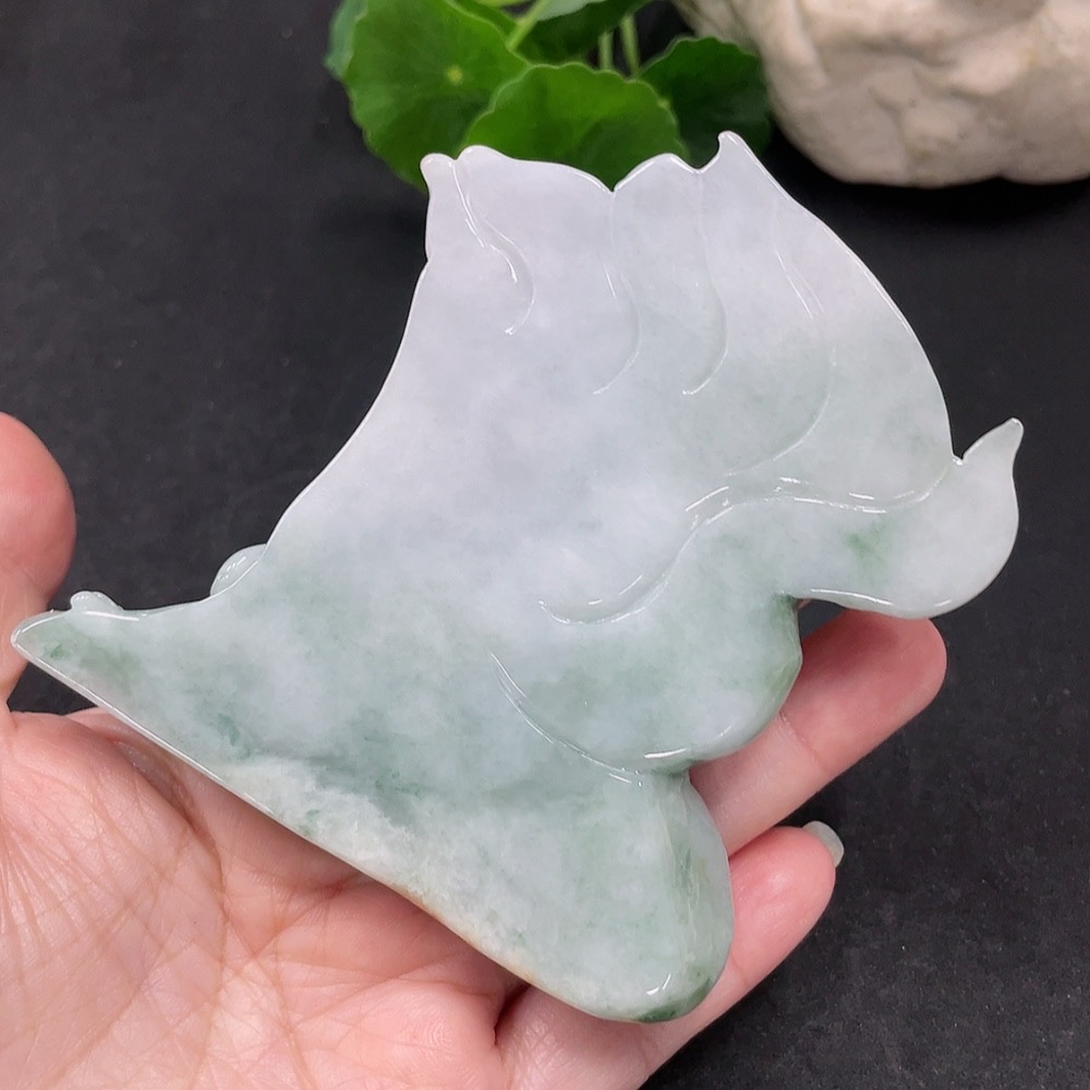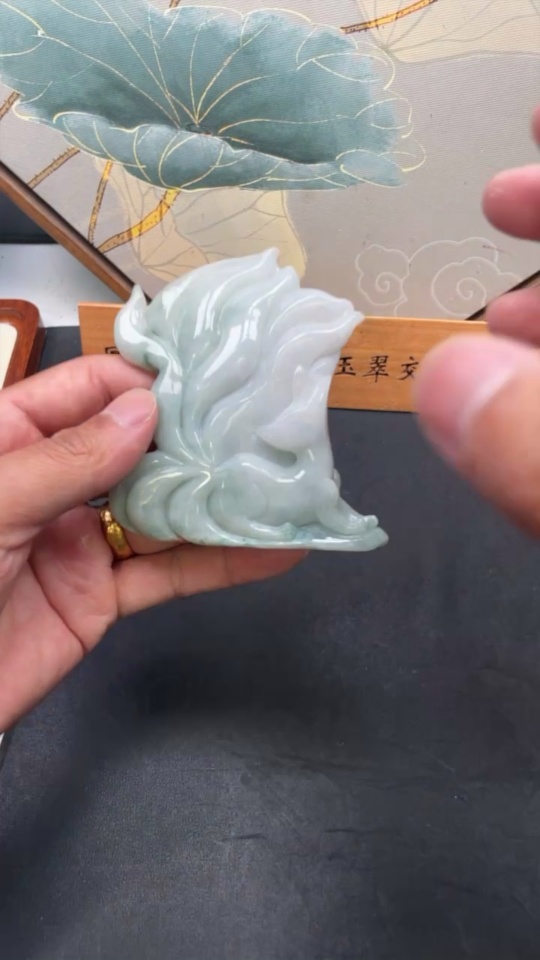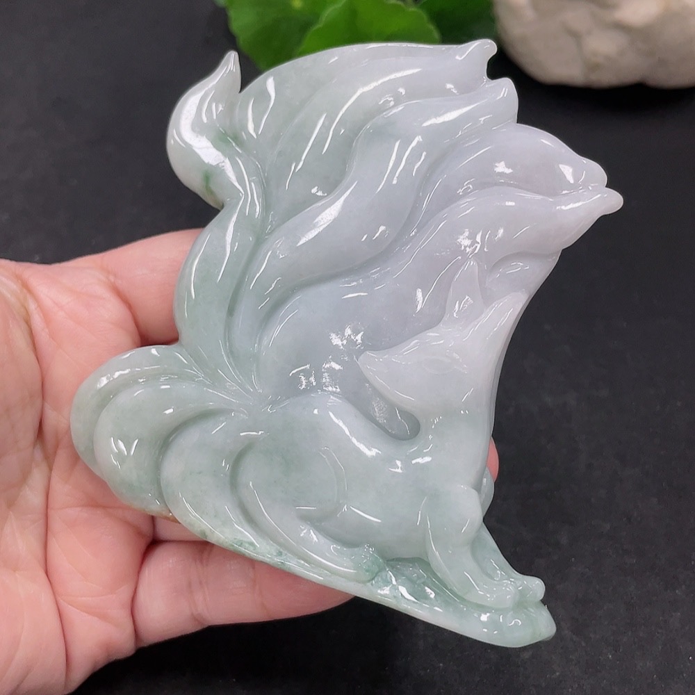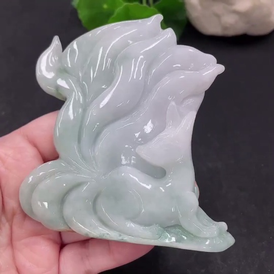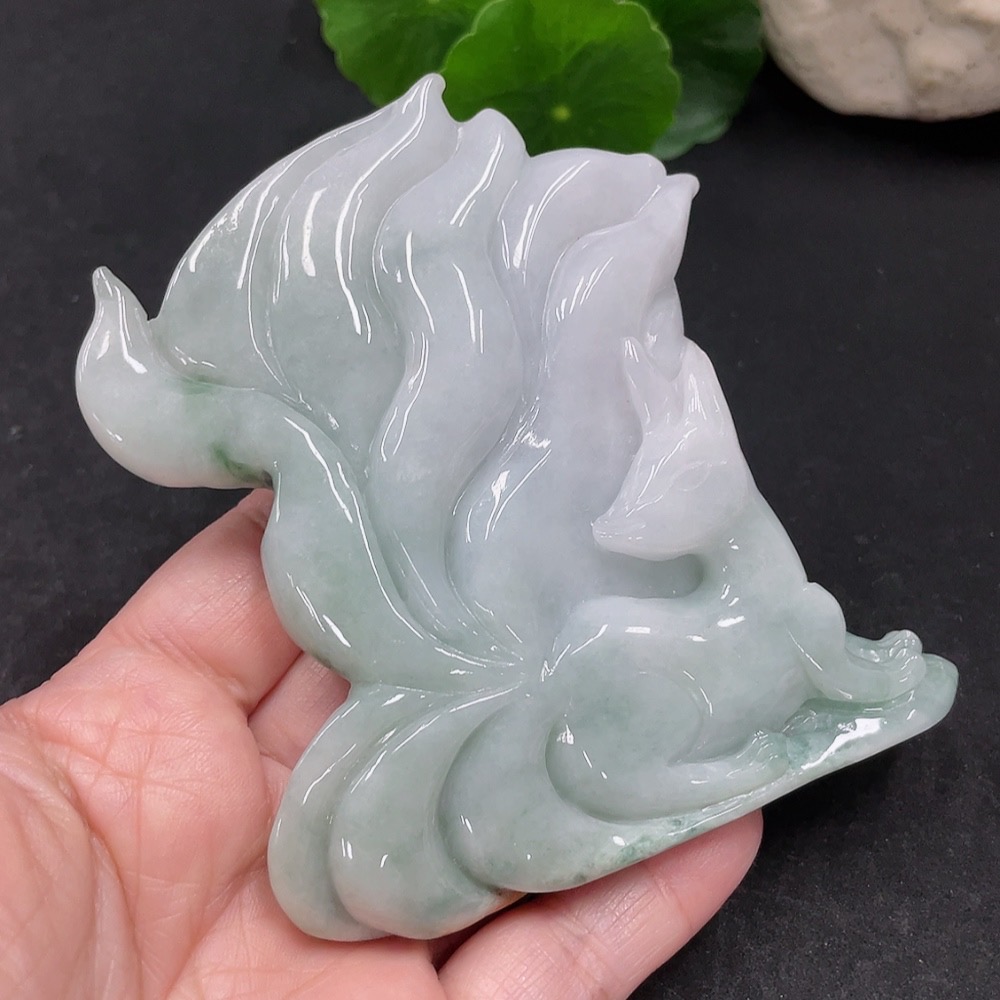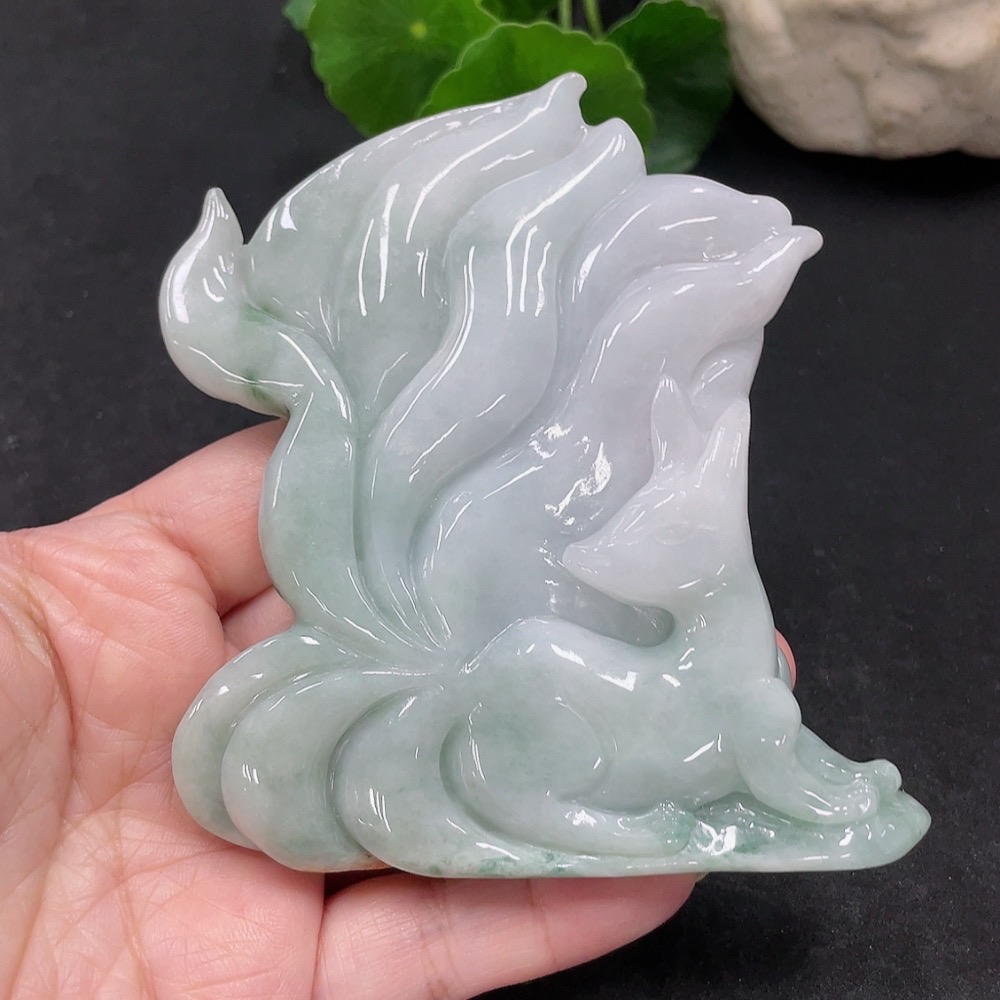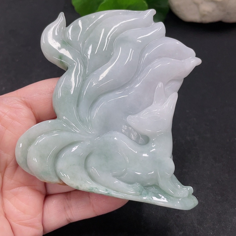 Jadeite Nine-Tailed Fox Ornament with a total weight of approximately 153.7g (color origin undetermined)