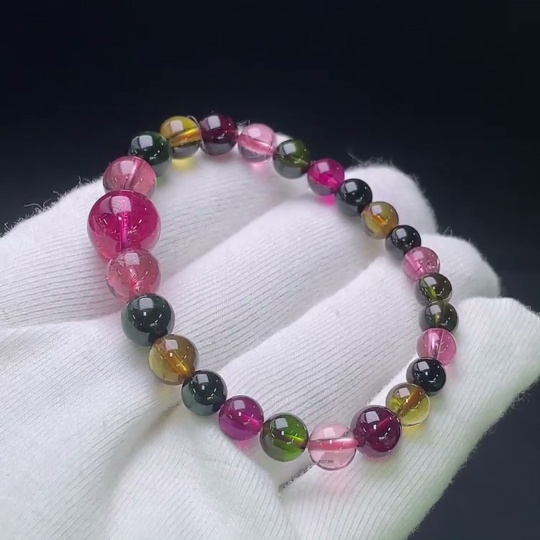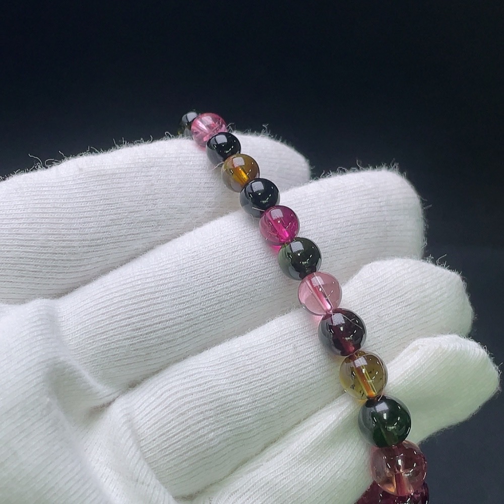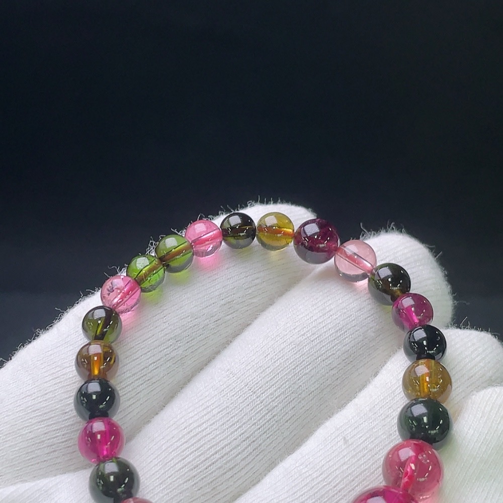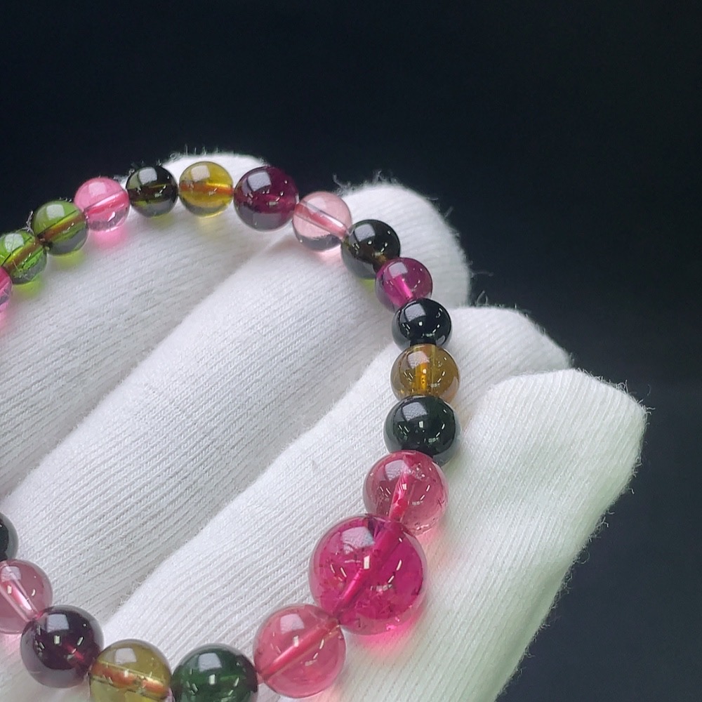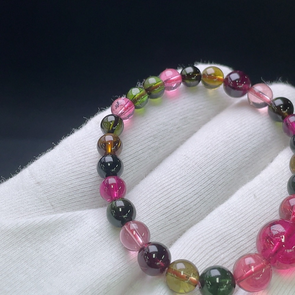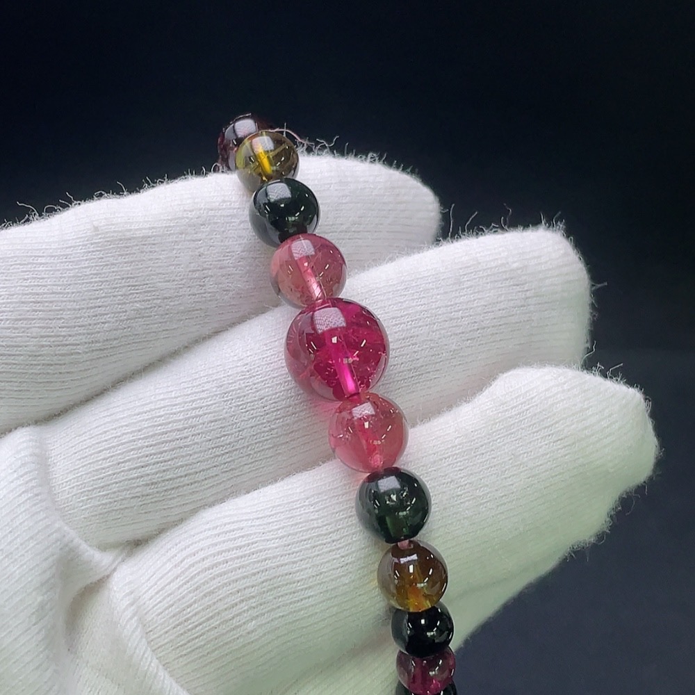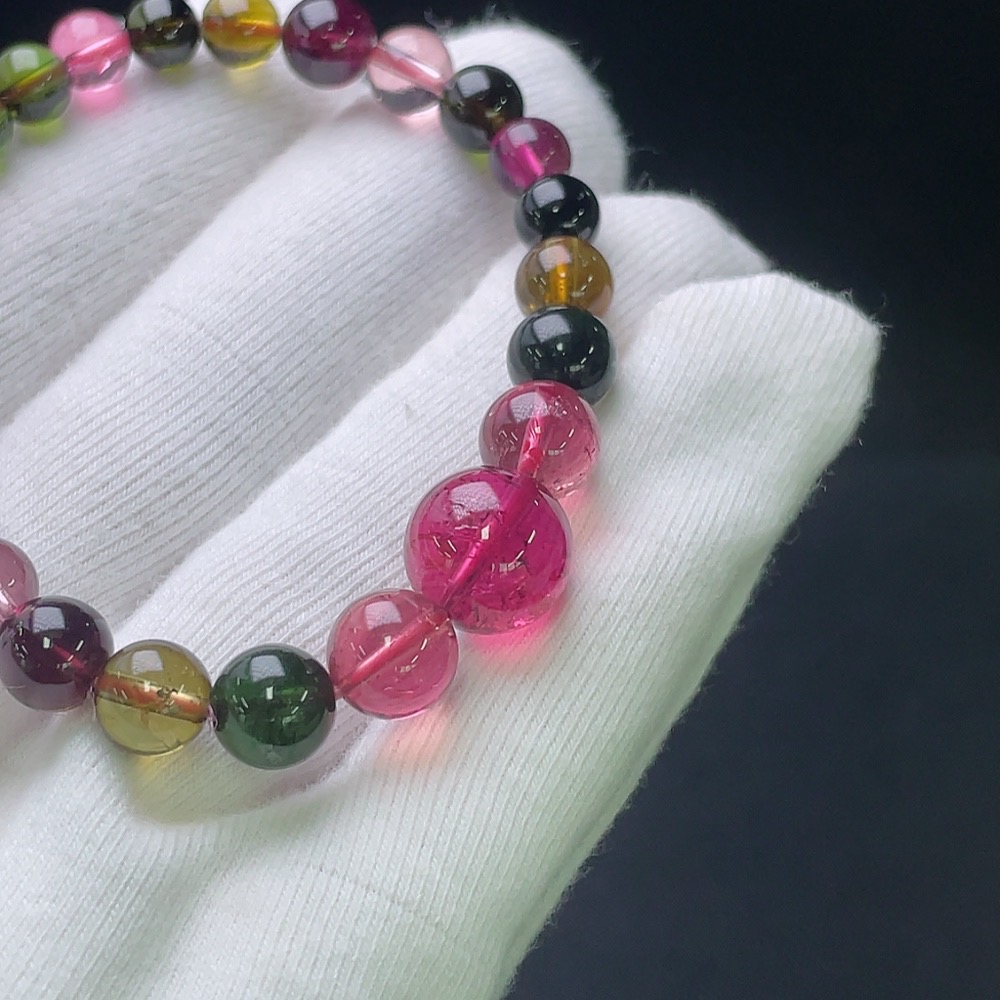 Tourmaline Bracelet with Visible Organic Matter, Total Weight Approx. 13.38g, Size 6-10.6mm