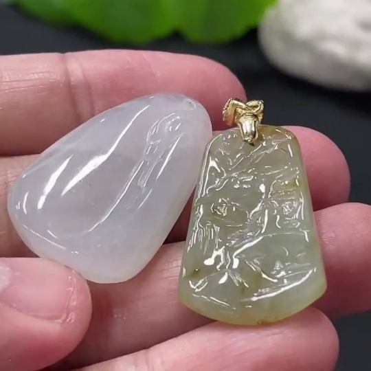 Jadeite Pendant Landscape Plaque Enlightenment Non-Gold Bale