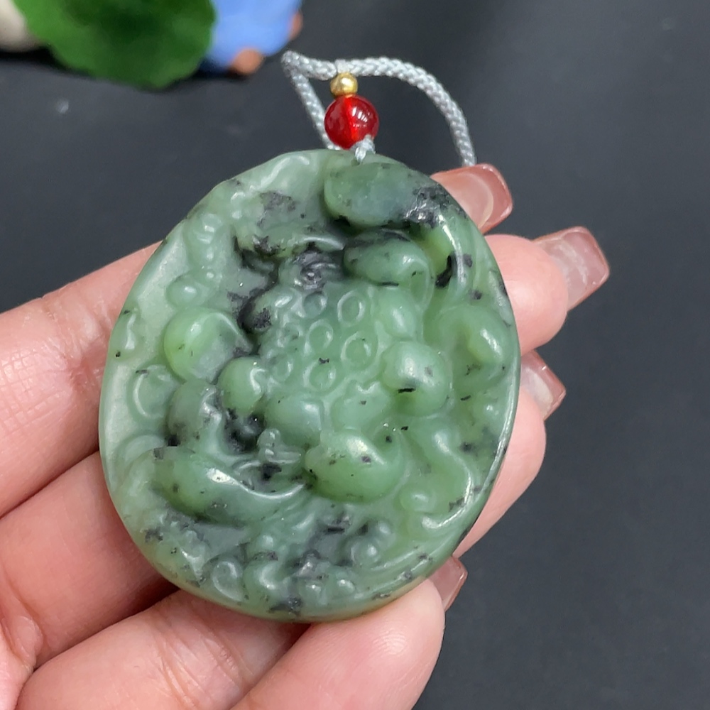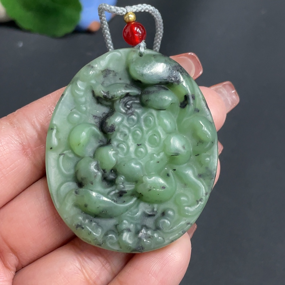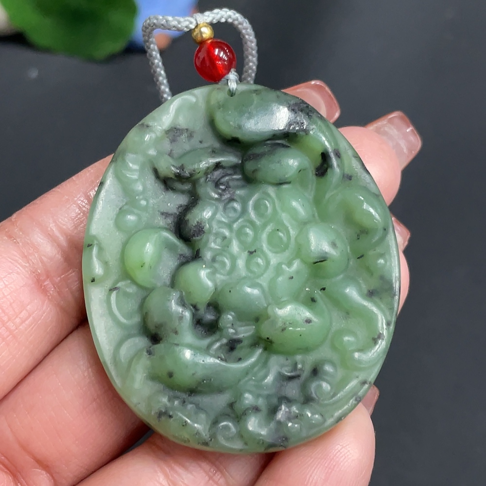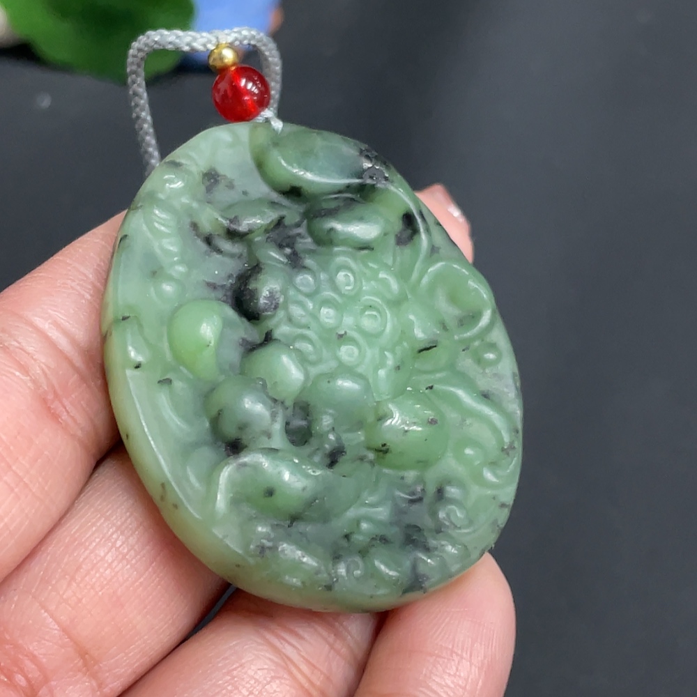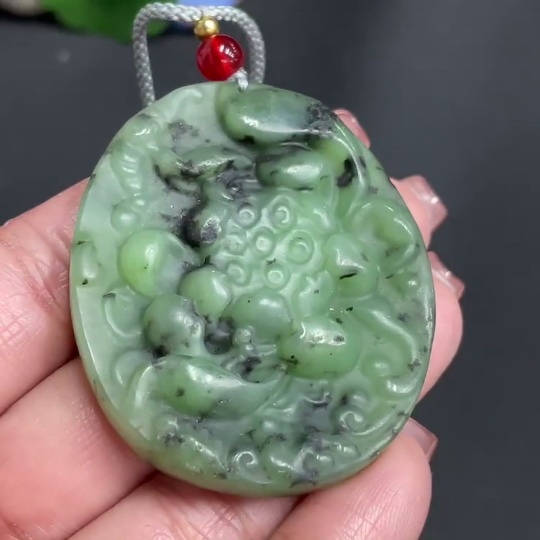 Hetian Jade Pendant Lotus with Non-Hetian Jade Beads Total Weight Approx. [Incl. String] 33.6g