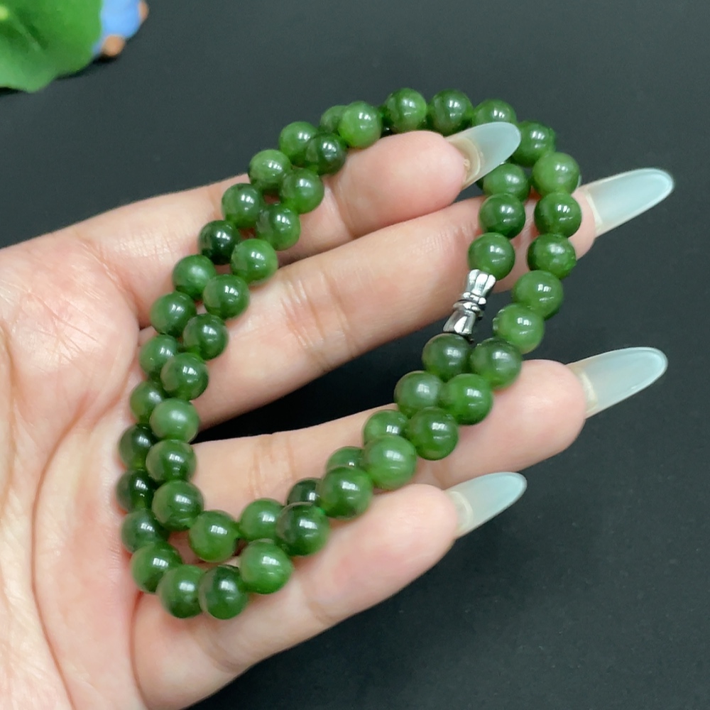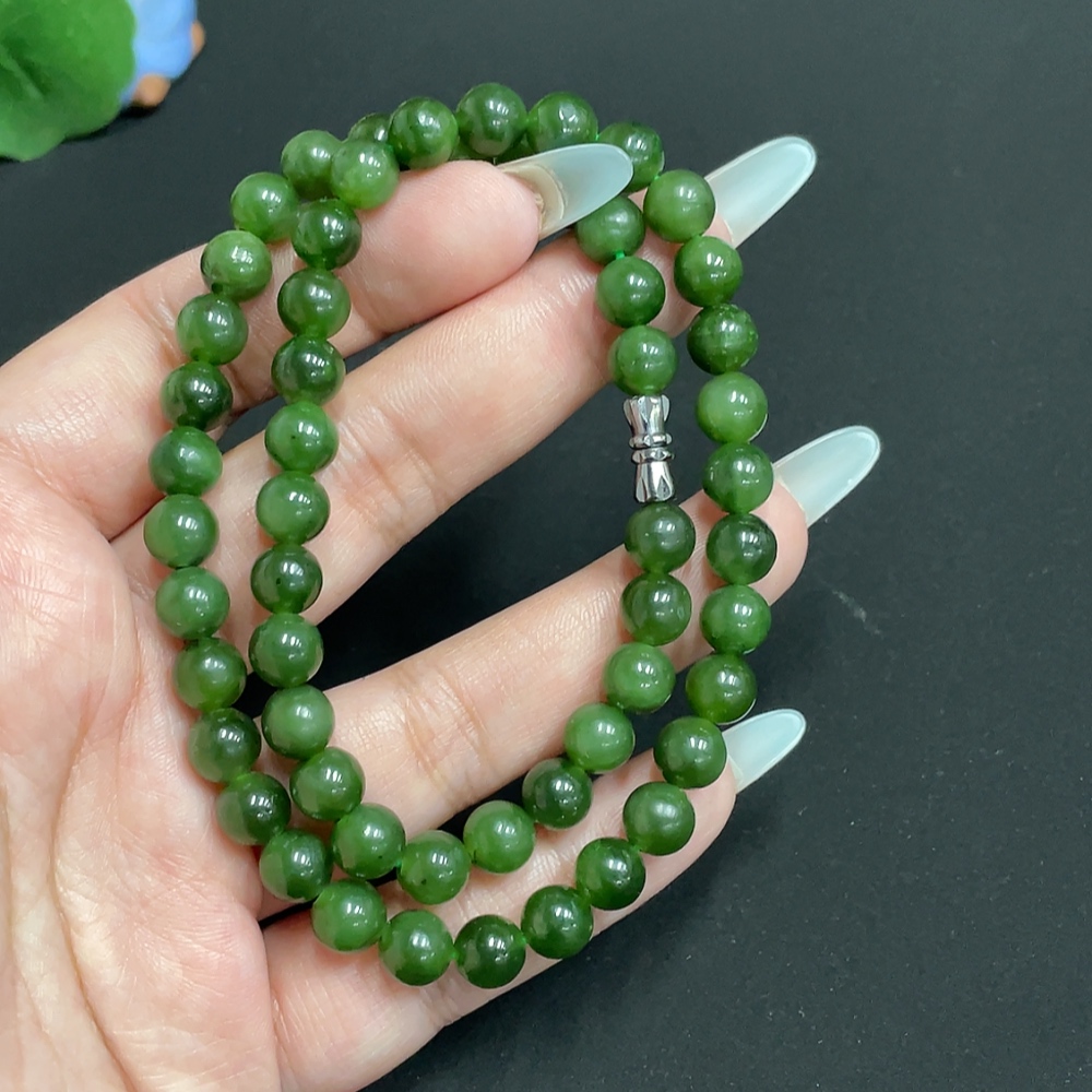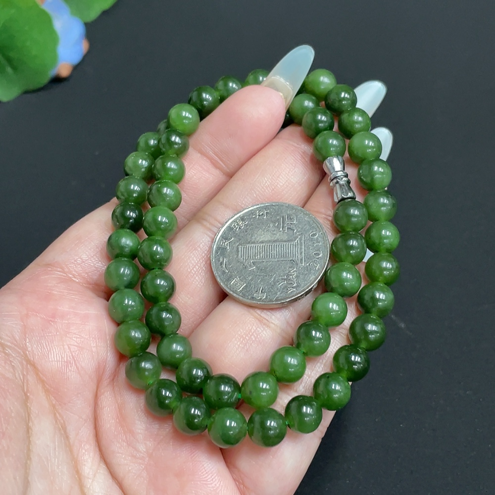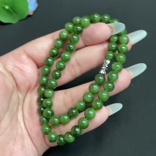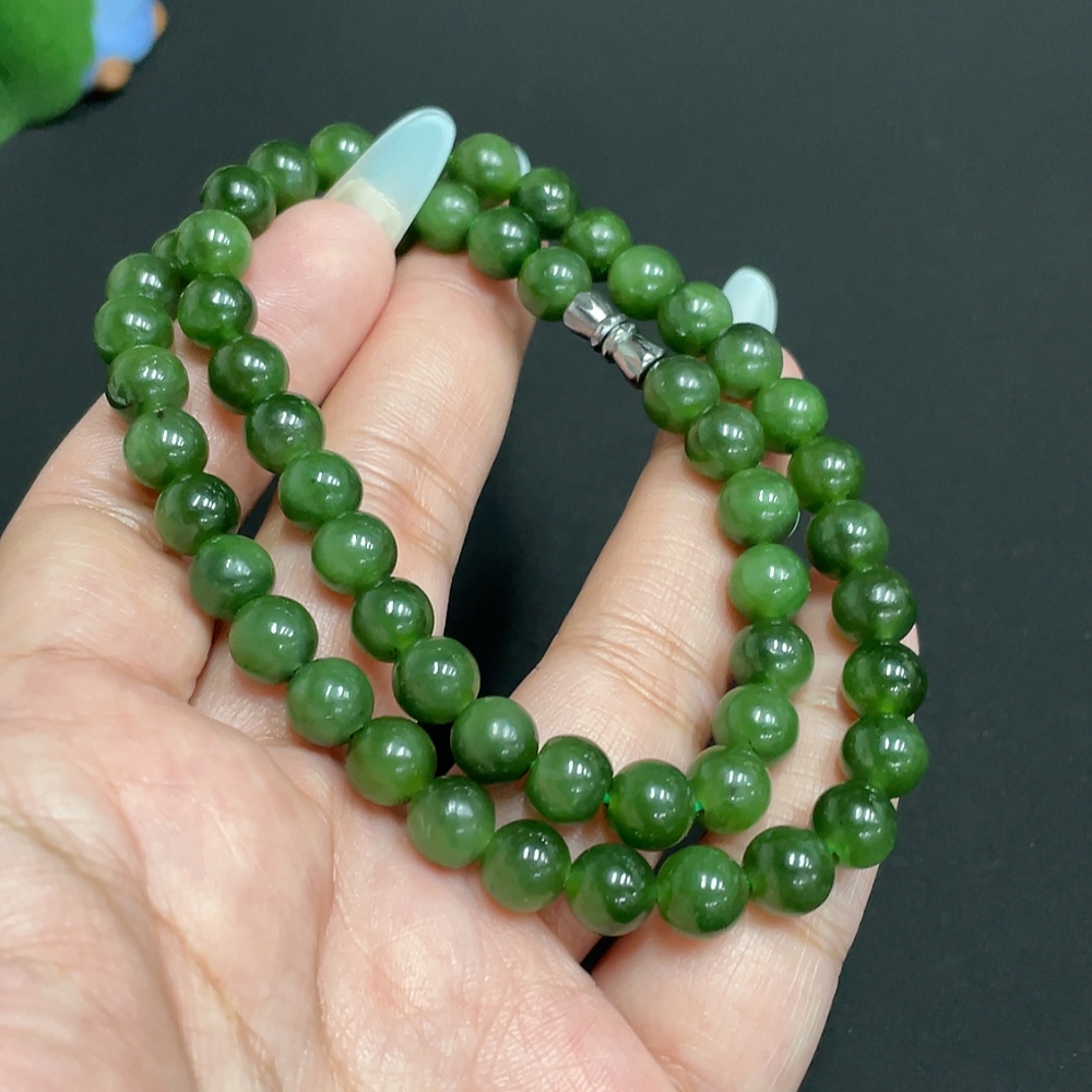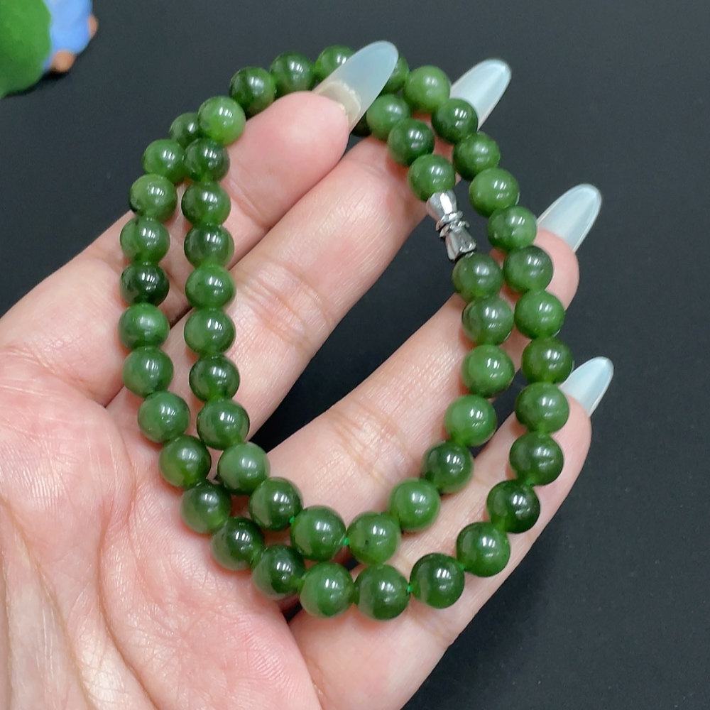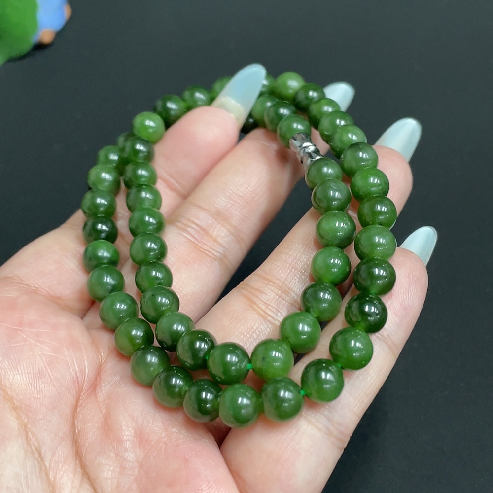 Hetian Jade Bead Necklace, Approx. 7.1mm, Total Weight Approx. 36.4g