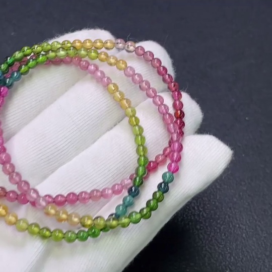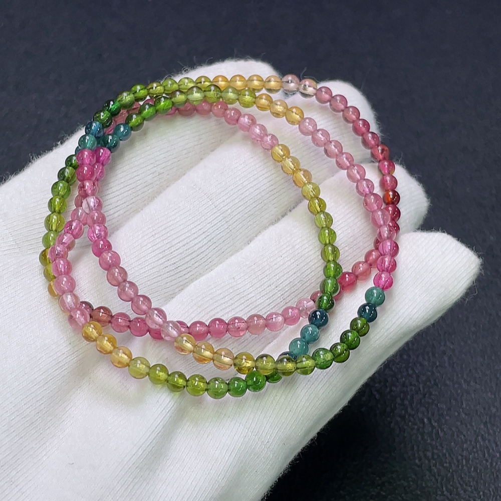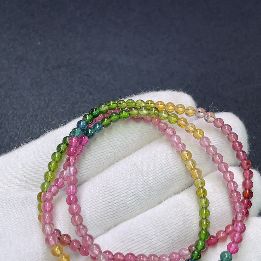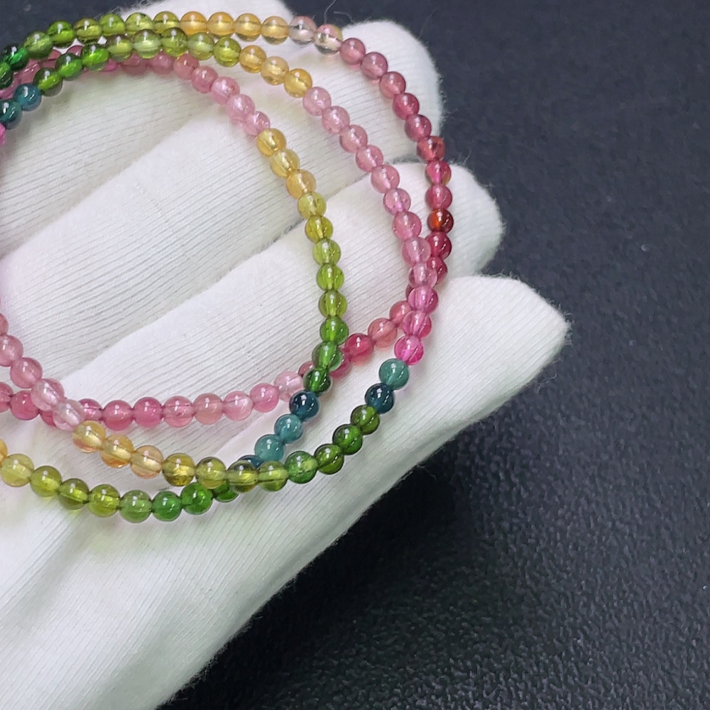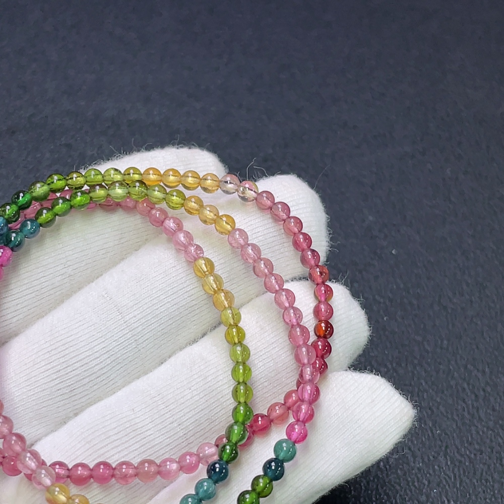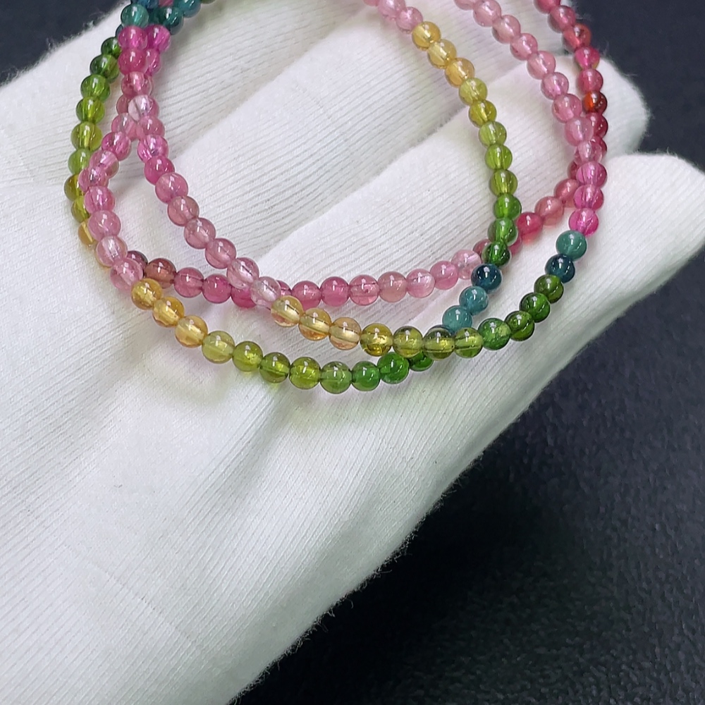 Tourmaline Bead Necklace with Visible Organic Inclusions, Total Weight Approx. 10.62g, Bead Size 3.5mm