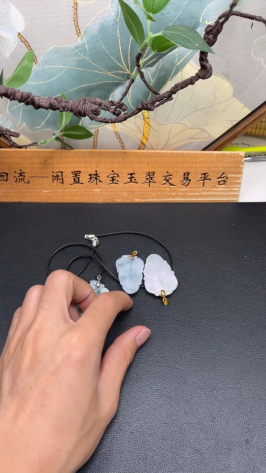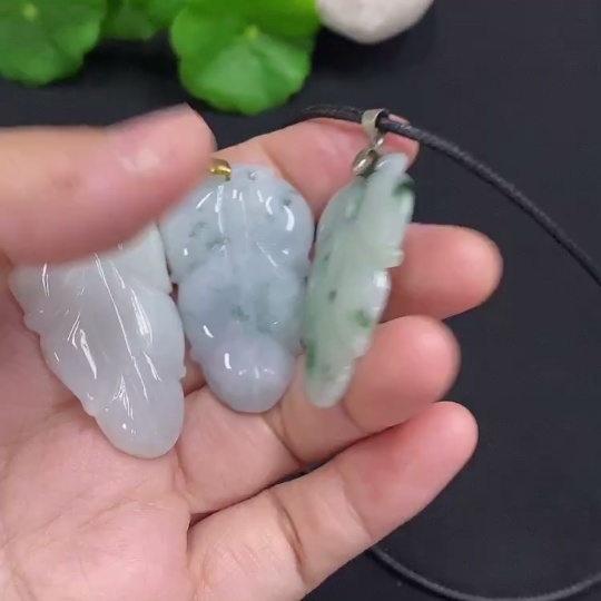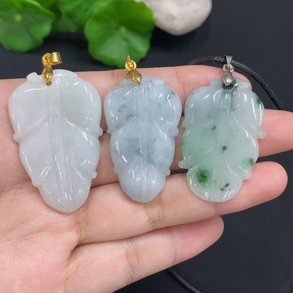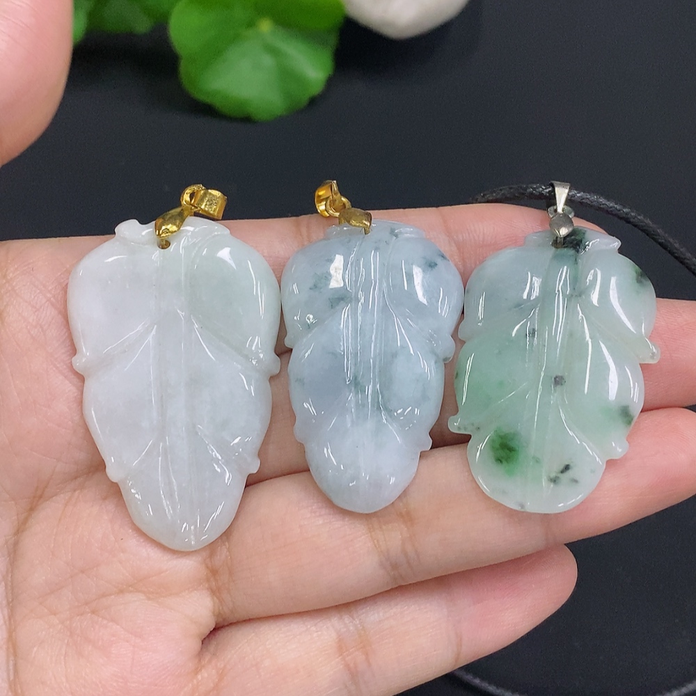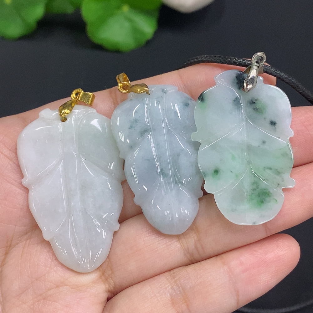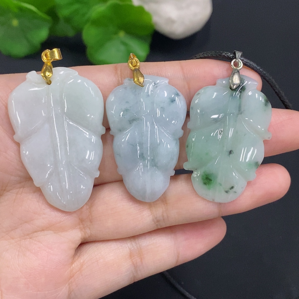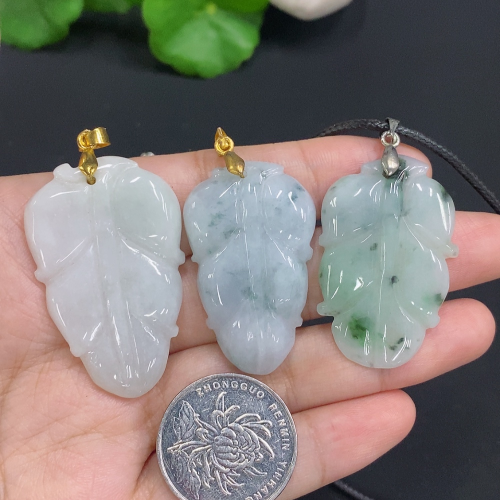 Jadeite Leaf Pendants Sell as a Lot Non-Gold Inlaid
