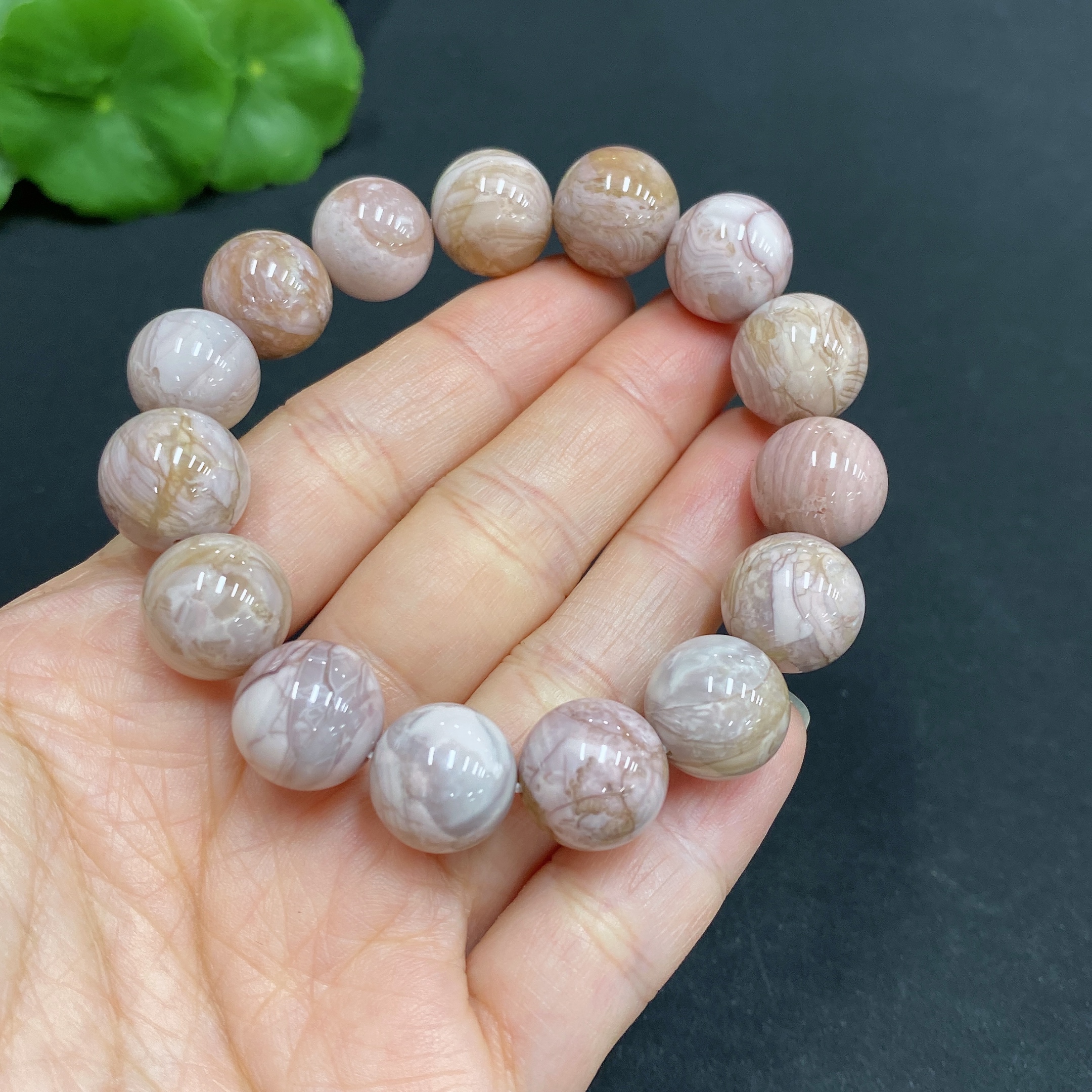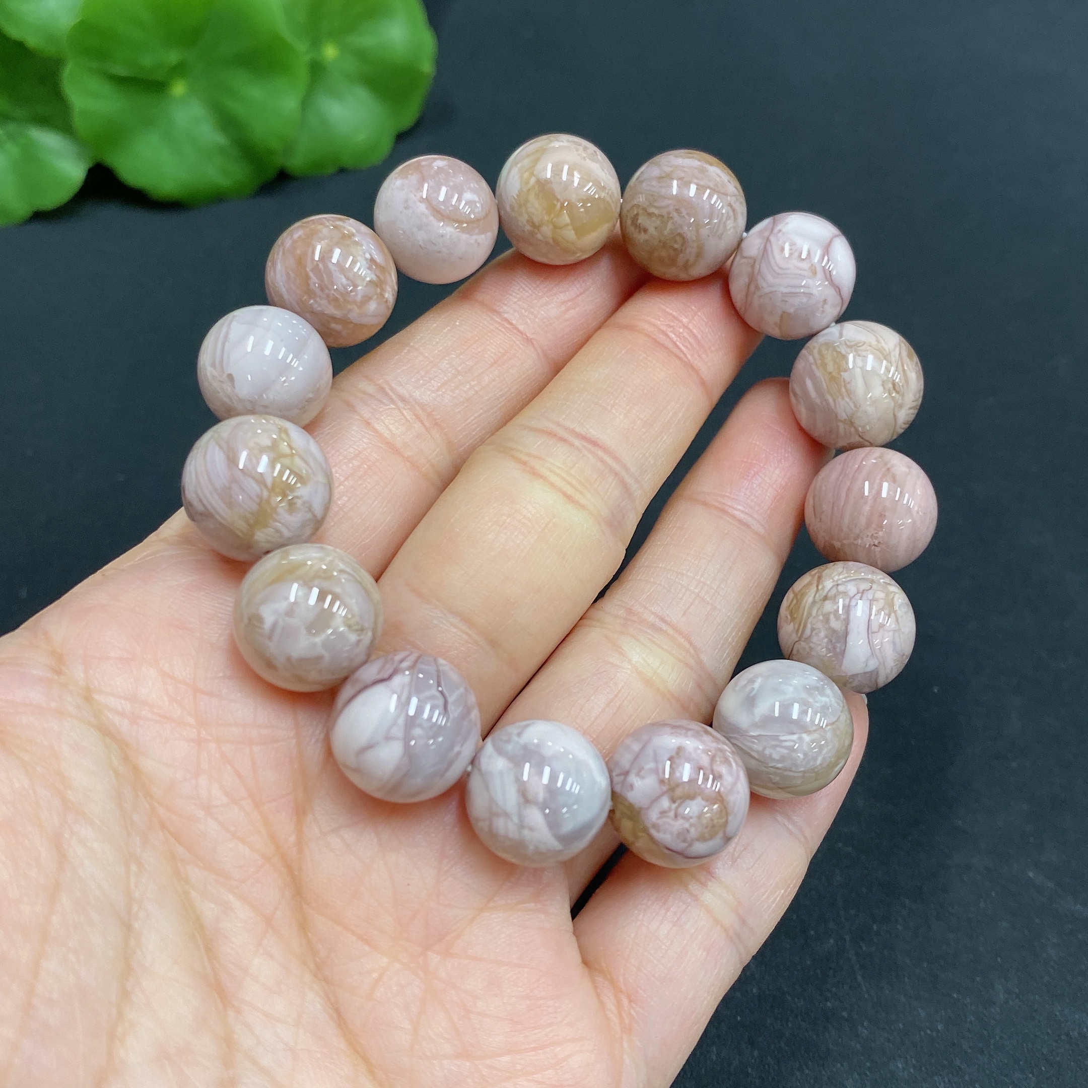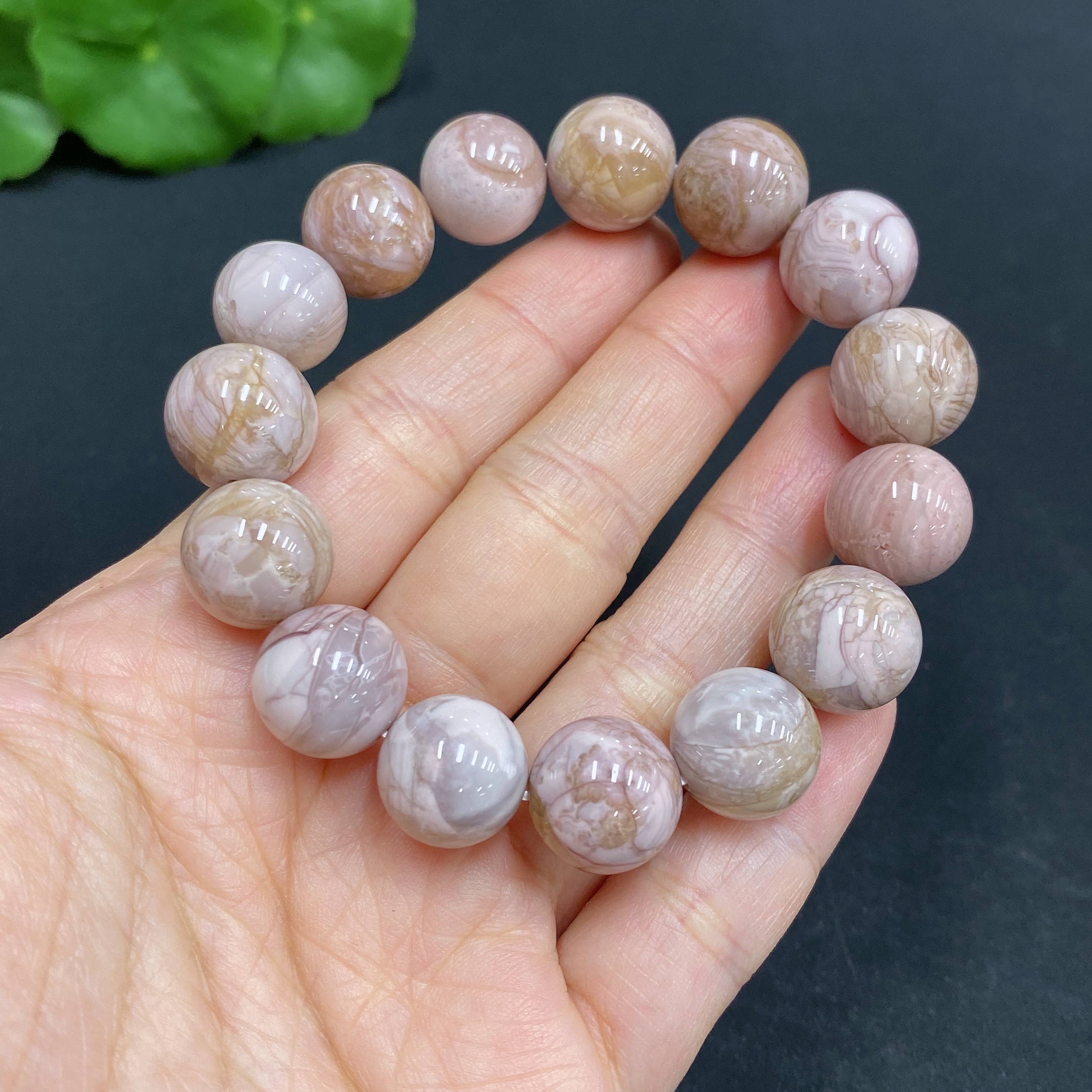 Alashan Agate Bracelet, approx. 12.6 mm, containing other mineral components, total weight approx. 39.8g