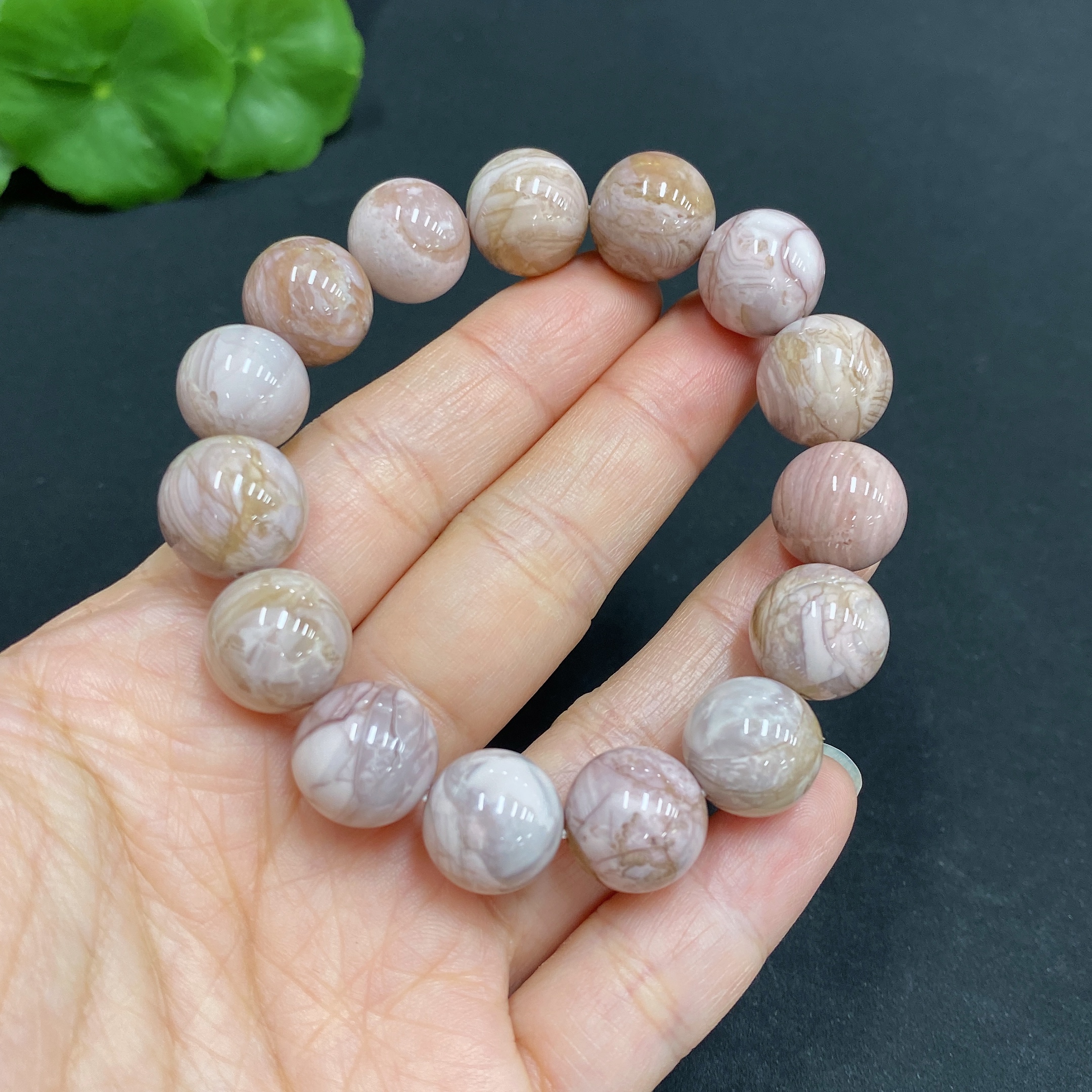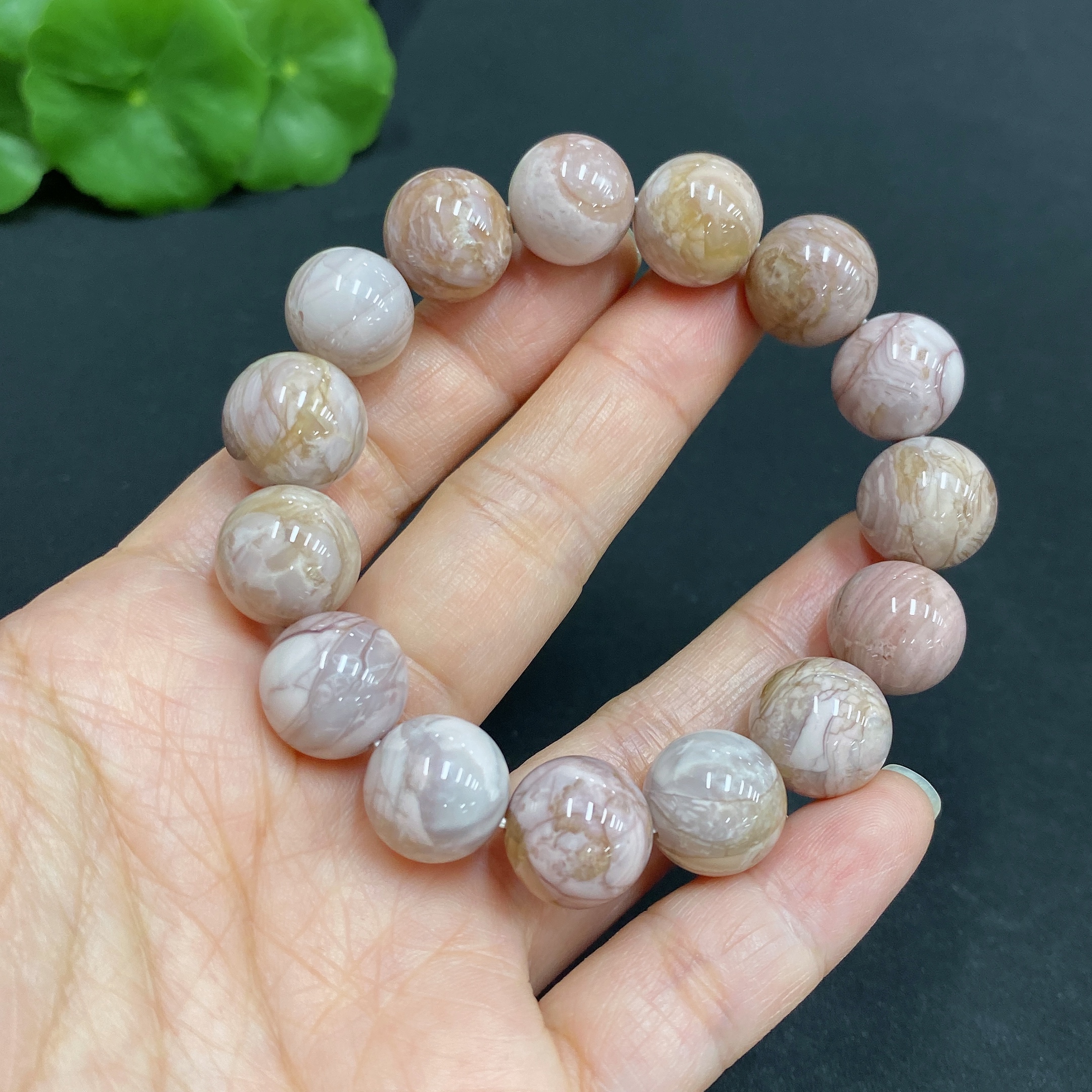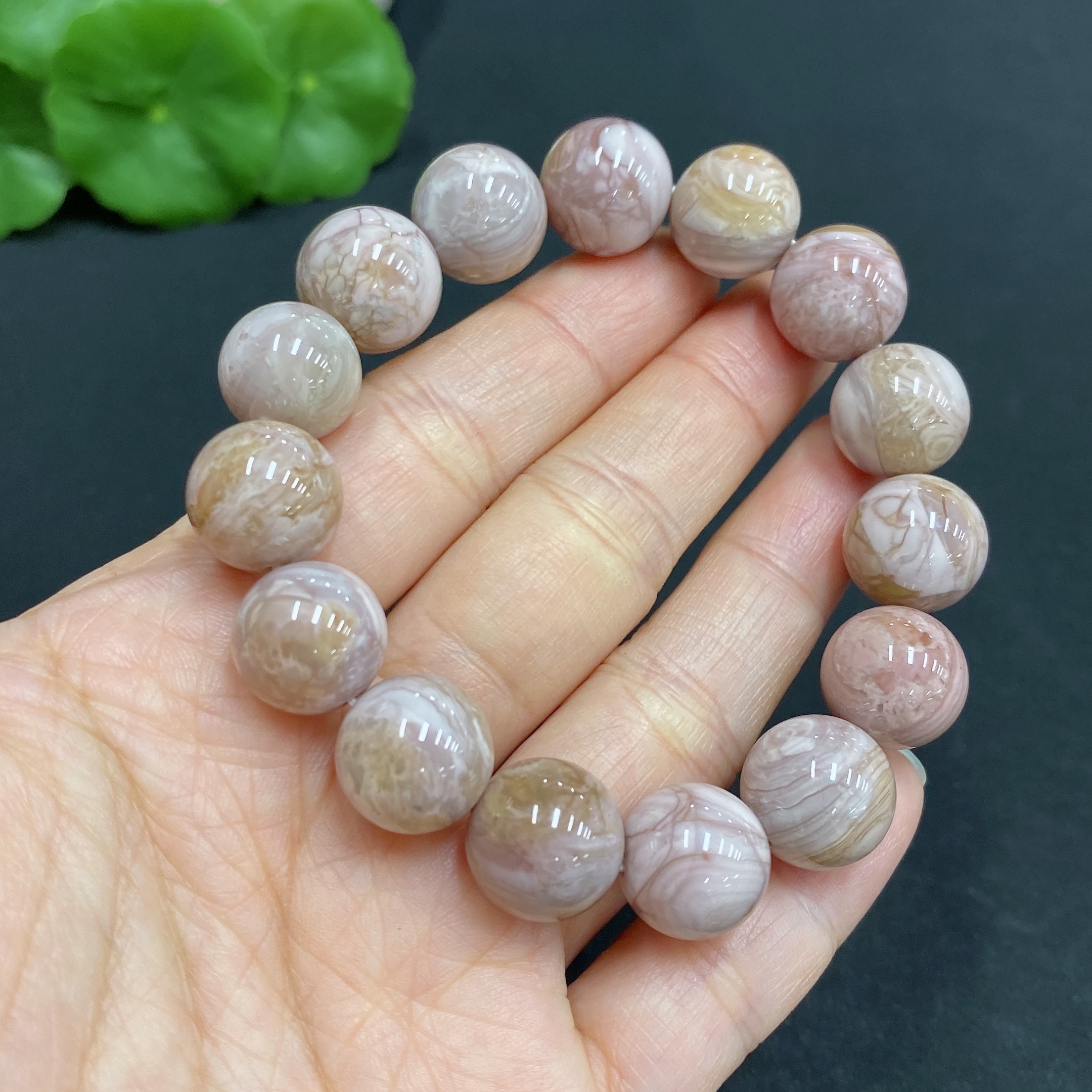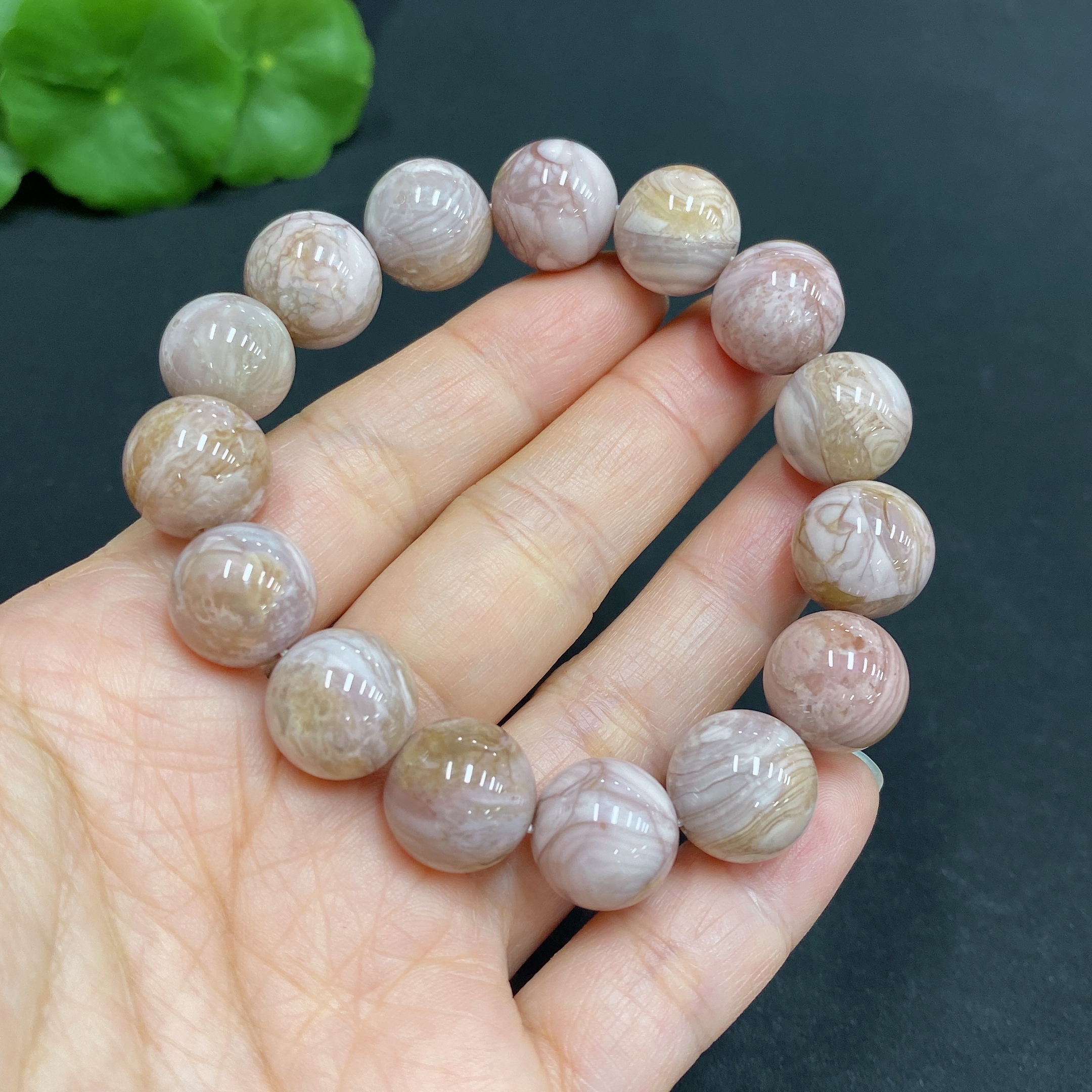 Alashan Agate Bracelet, approx. 12.6 mm, containing other mineral components, total weight approx. 39.8g