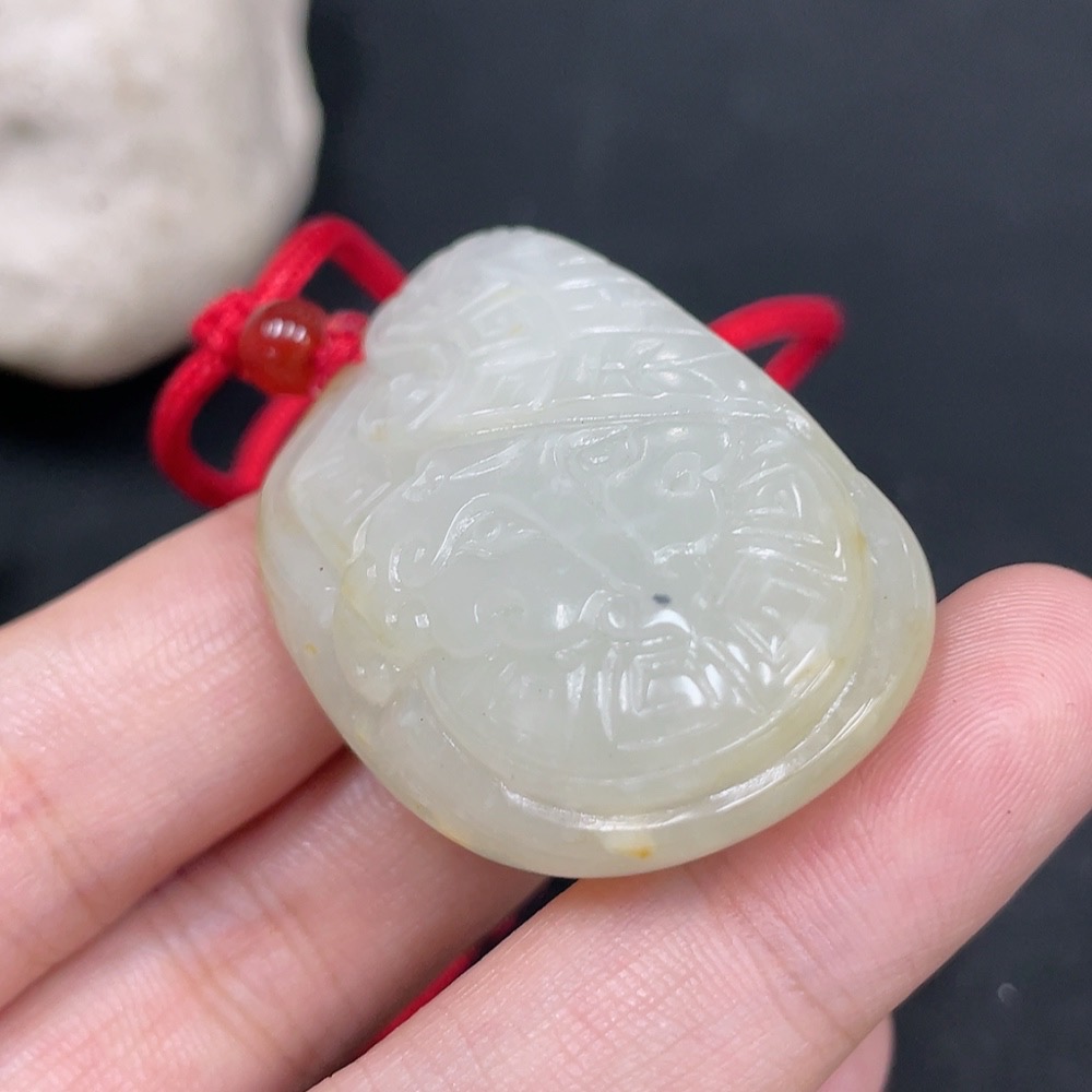 Hetian Jade Pendant Antique-style Piece Undetermined Skin Color Origin Total Weight Approx. (Including Rope) 33.4g