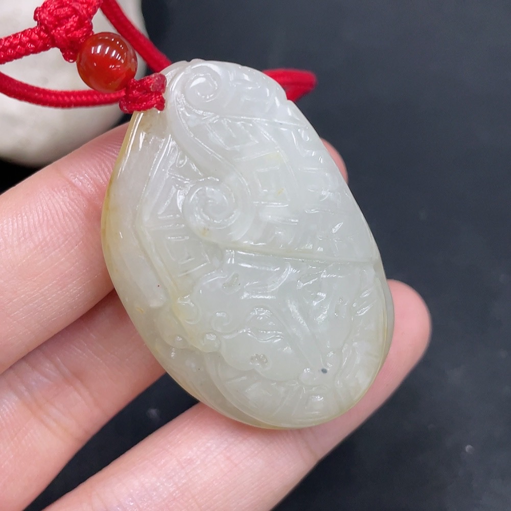 Hetian Jade Pendant Antique-style Piece Undetermined Skin Color Origin Total Weight Approx. (Including Rope) 33.4g