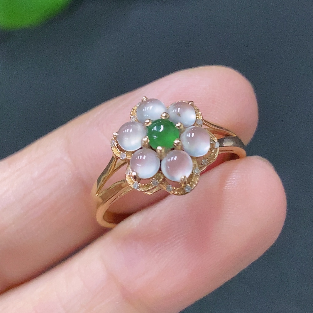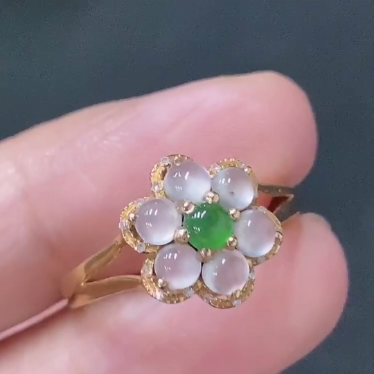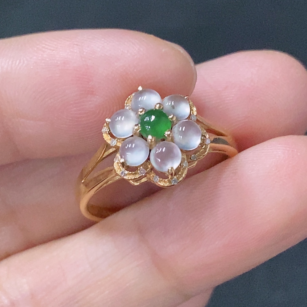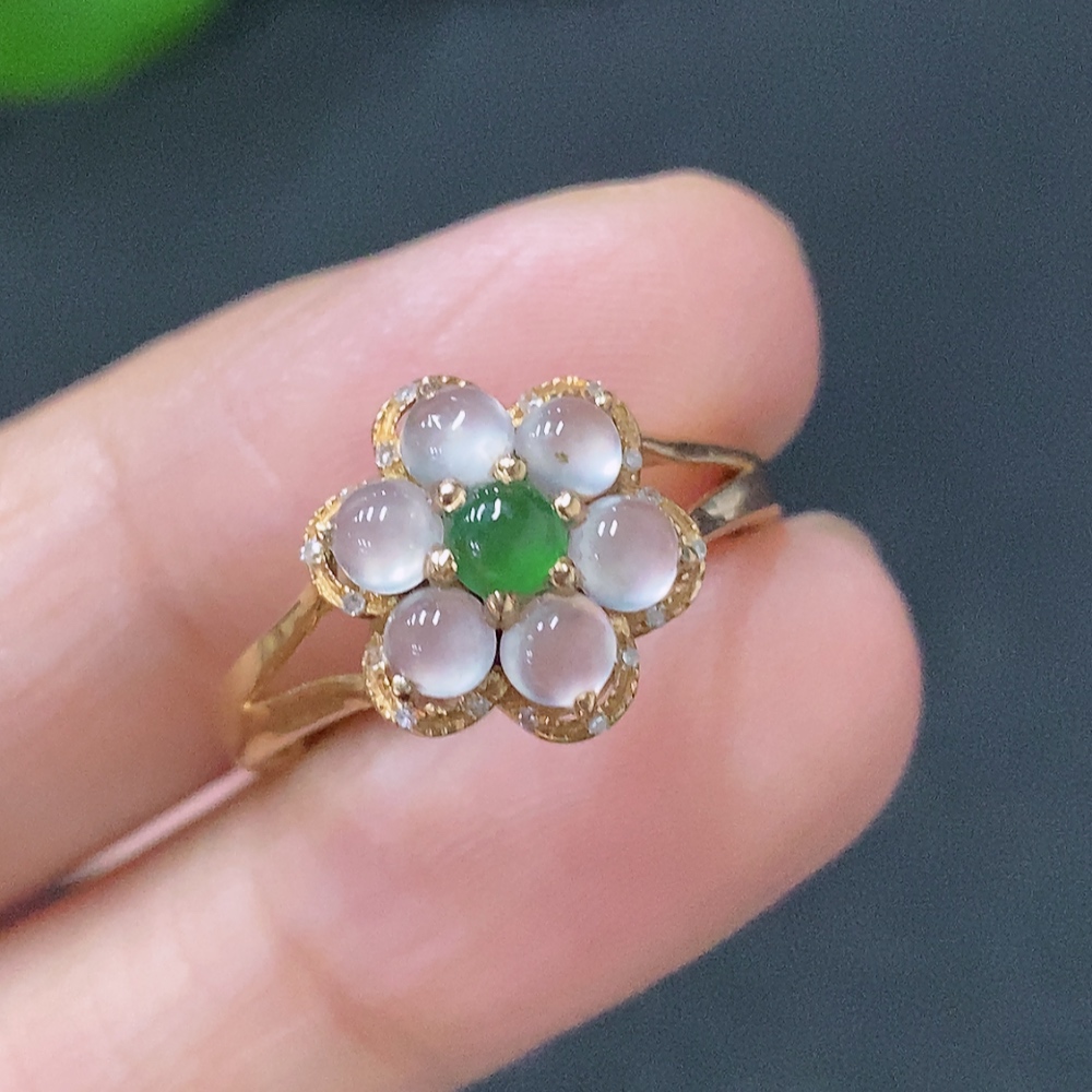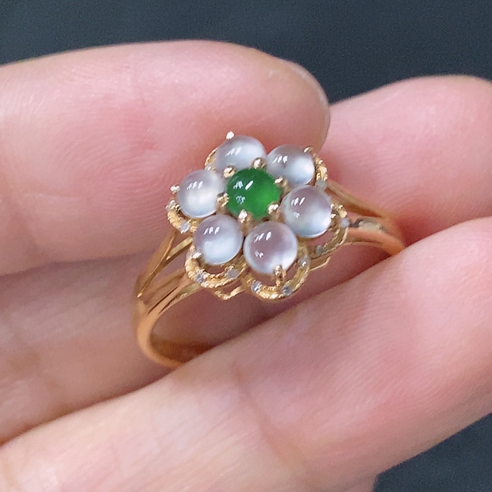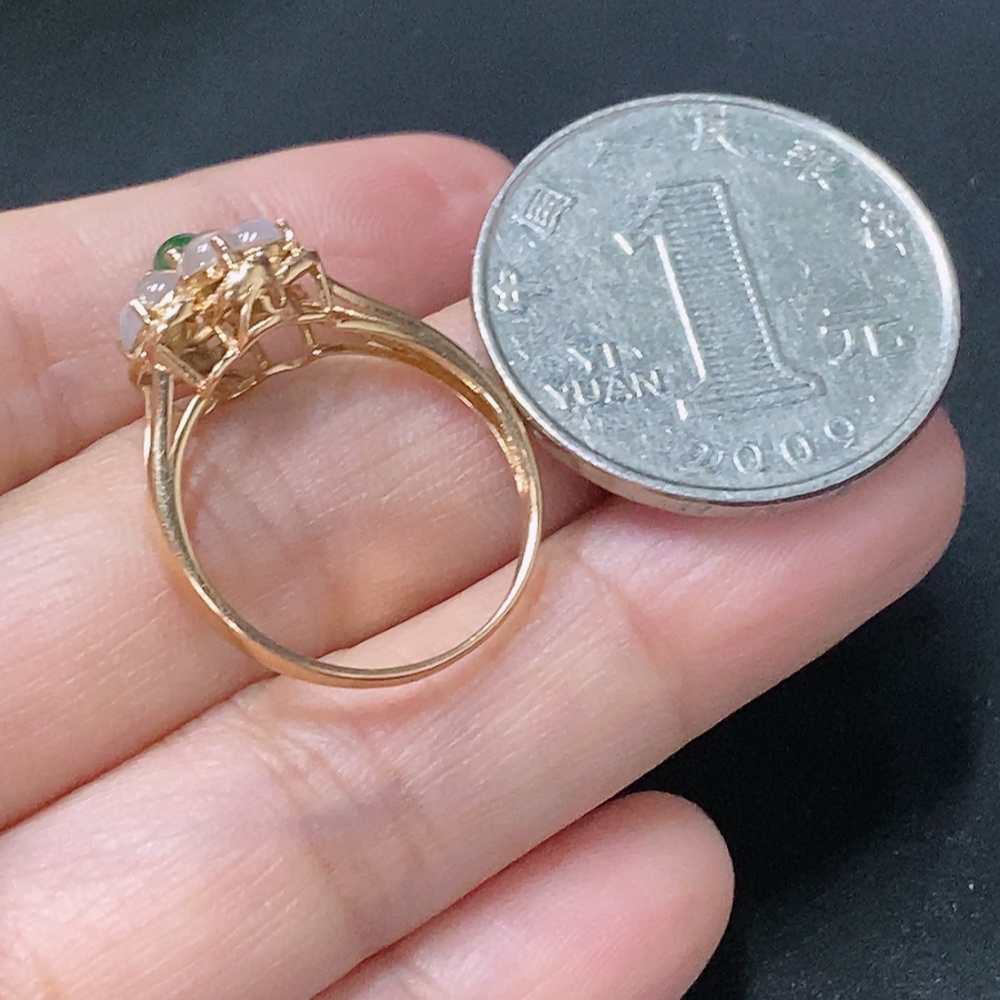 Jadeite inlaid ring 18k with diamond size 14 total weight about 2g