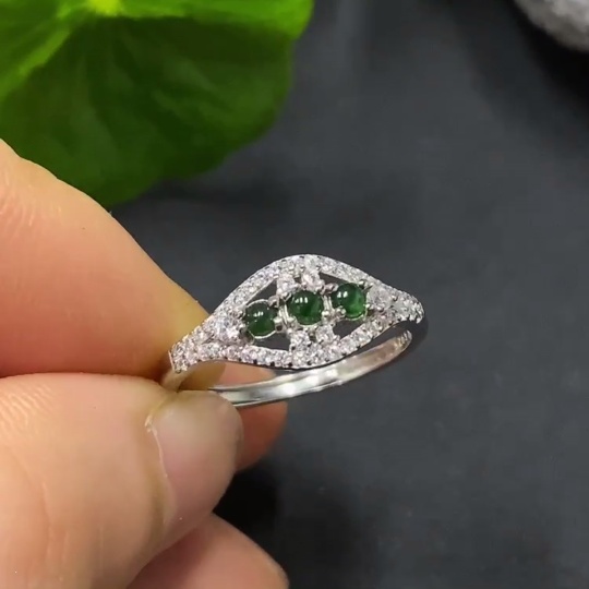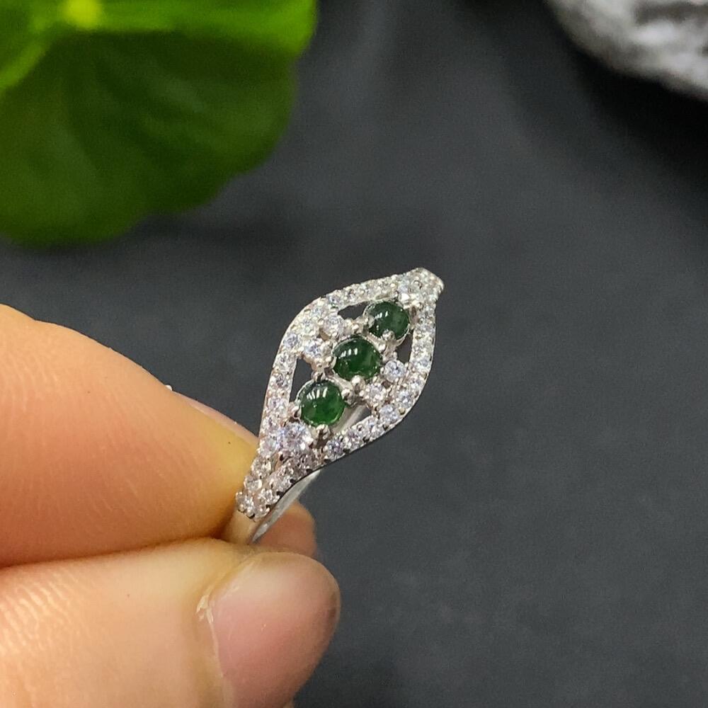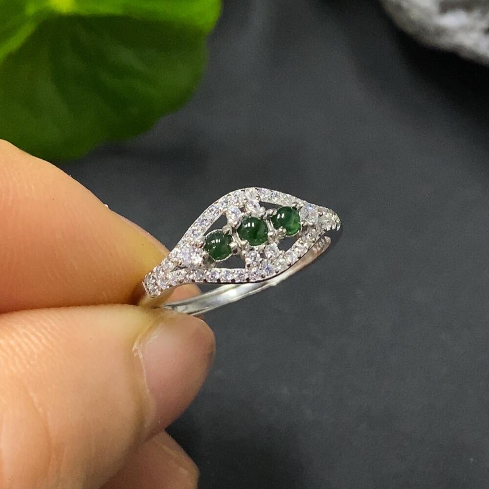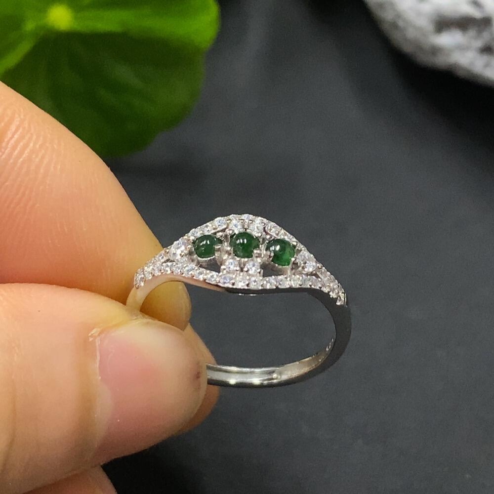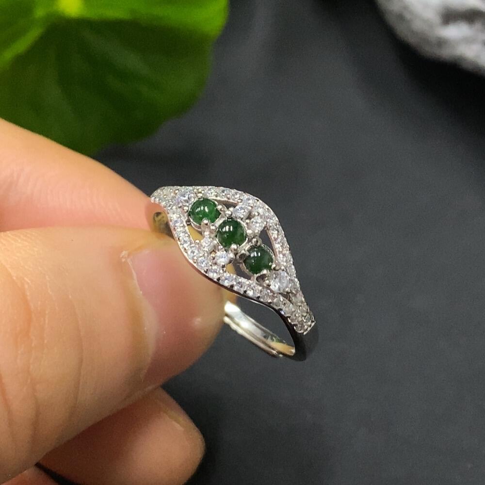 Jadeite cabochon inlaid ring, some with grain cracks, adjustable, non-gold inlaid