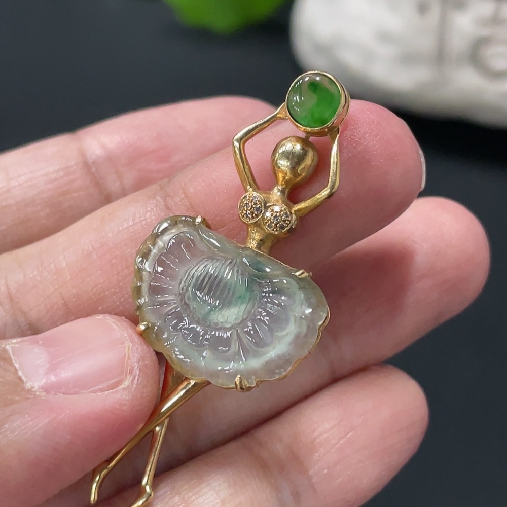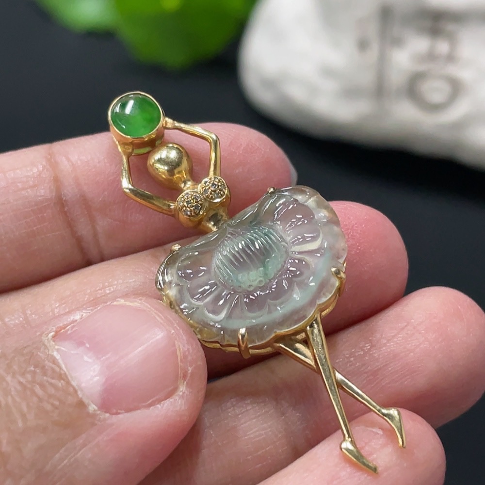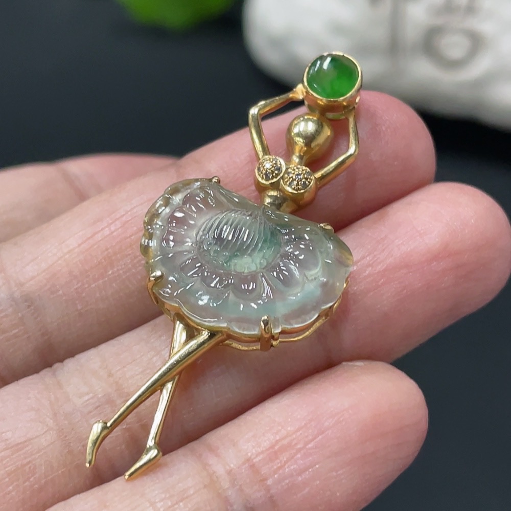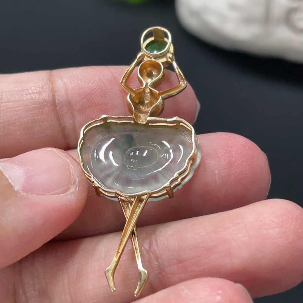 Jadeite Pendant with 18K Gold Setting, Total Weight Approx. 3.7g