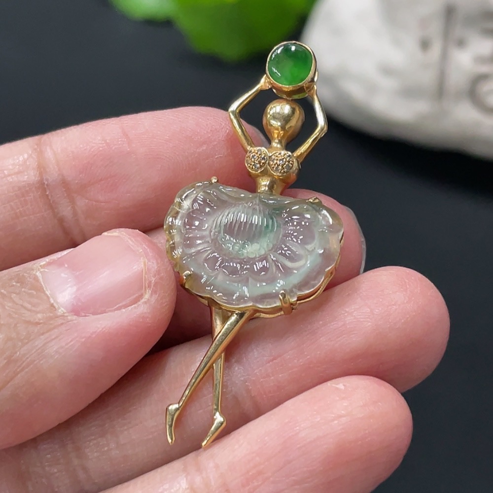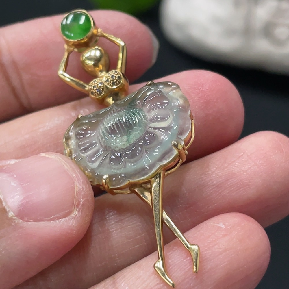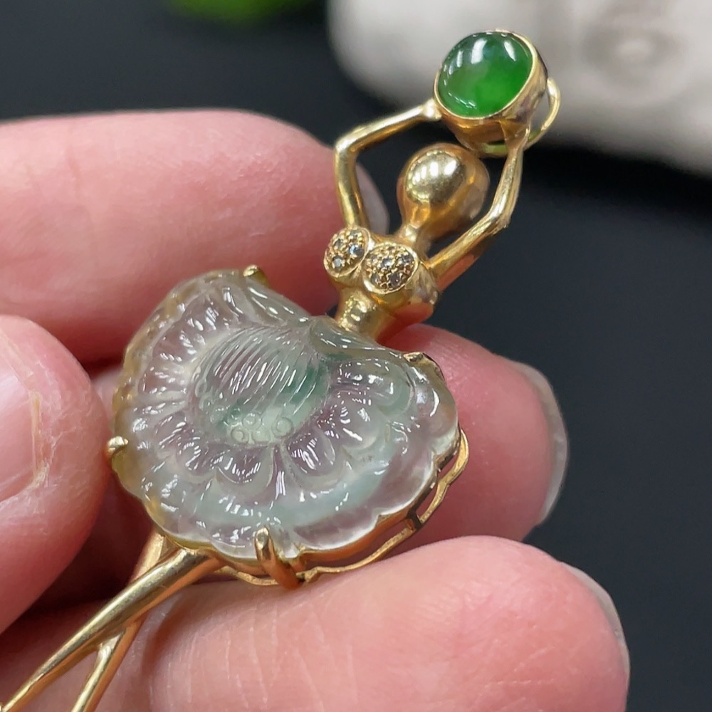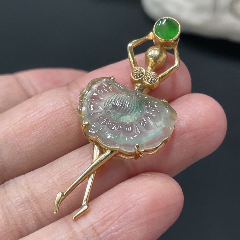 Jadeite Pendant with 18K Gold Setting, Total Weight Approx. 3.7g