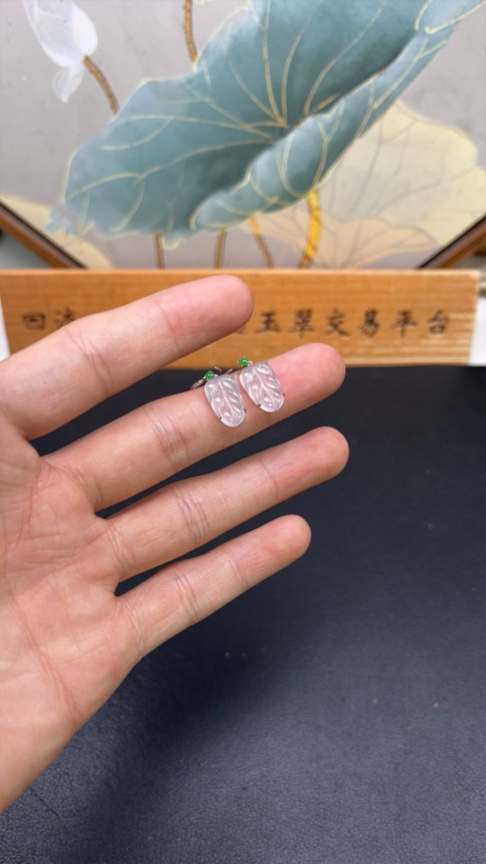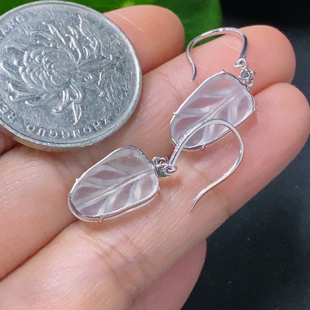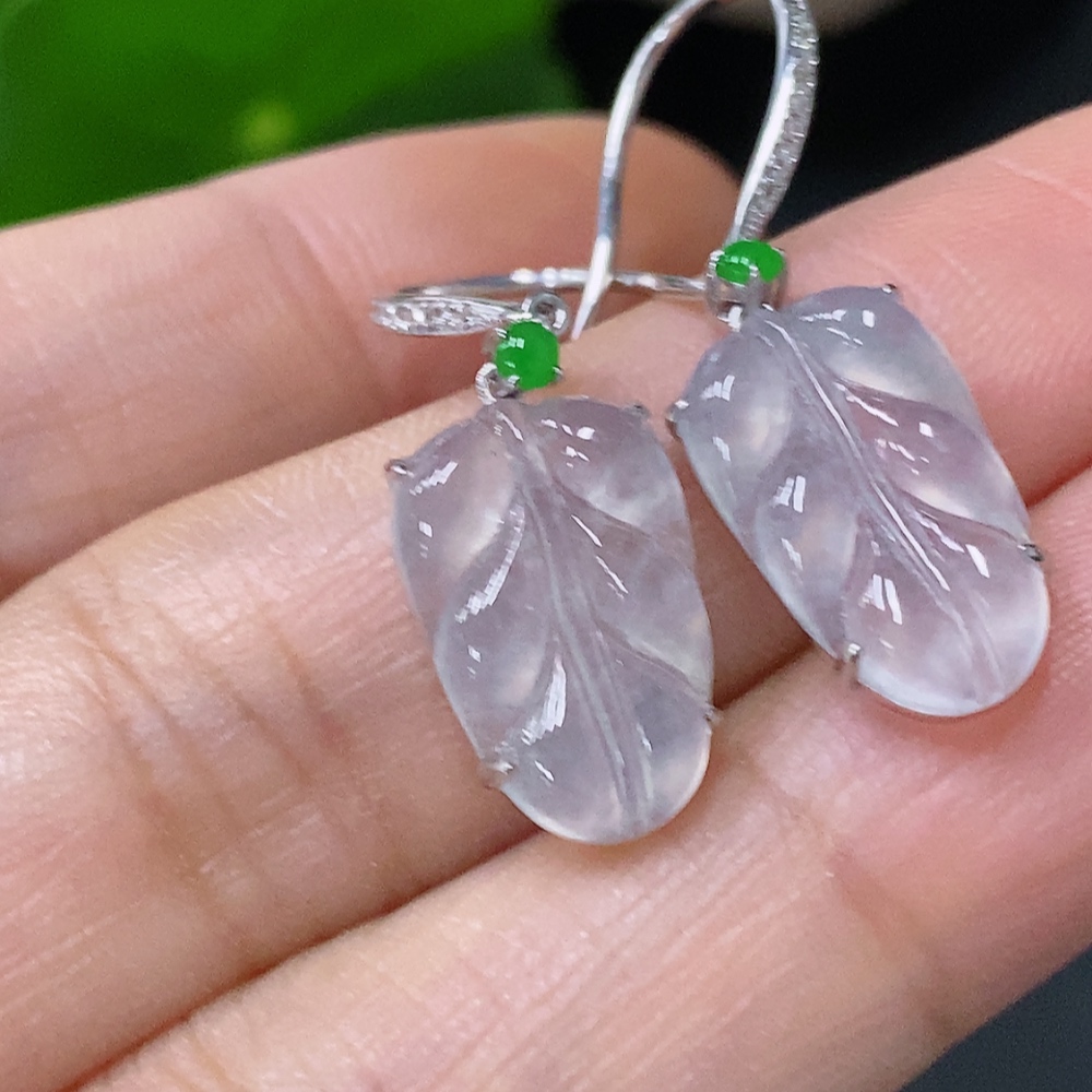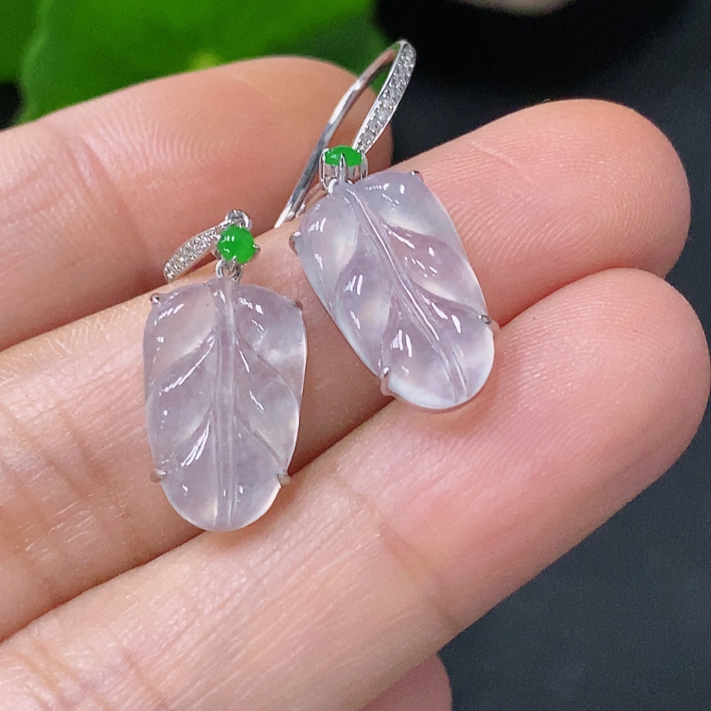 Jadeite Earrings with 18k Gold Setting, Total Weight Approximately 2.33g