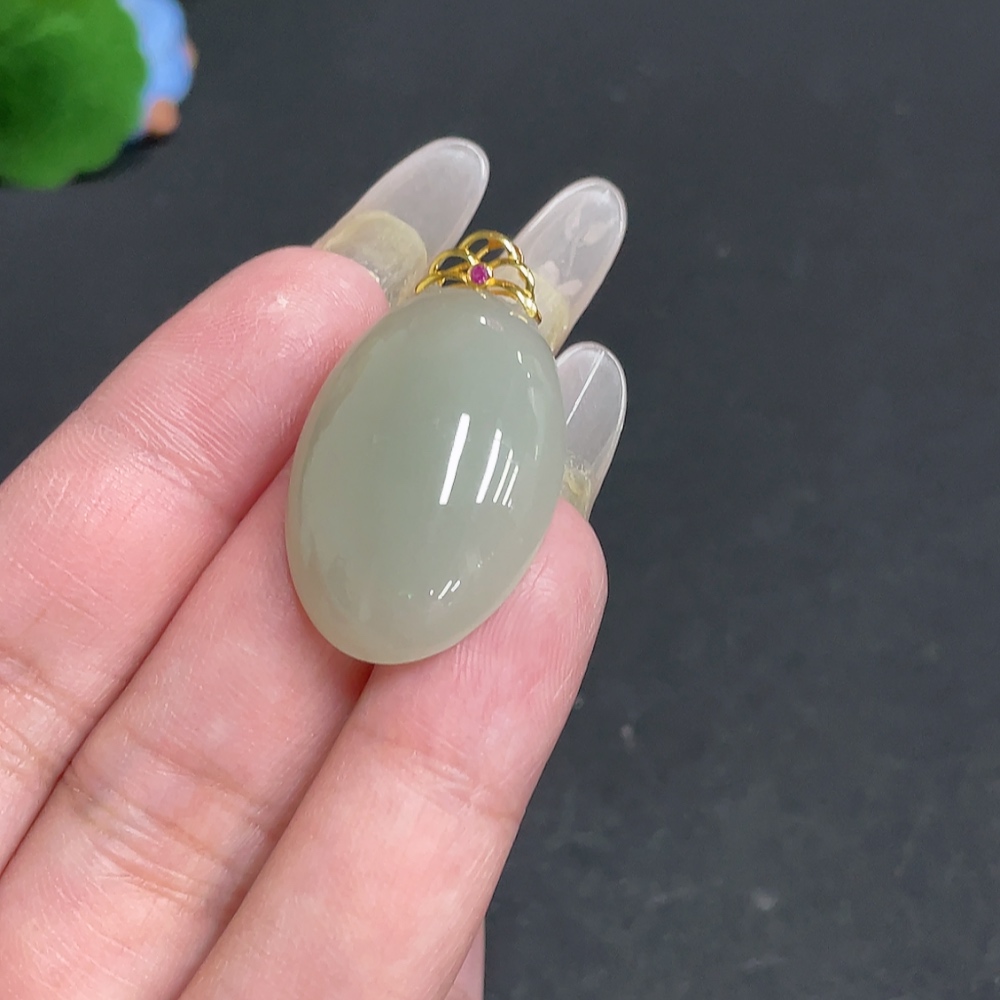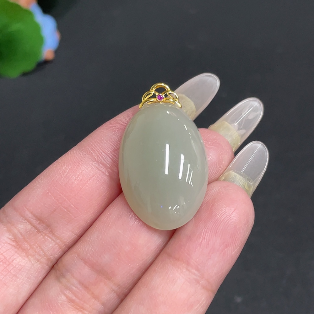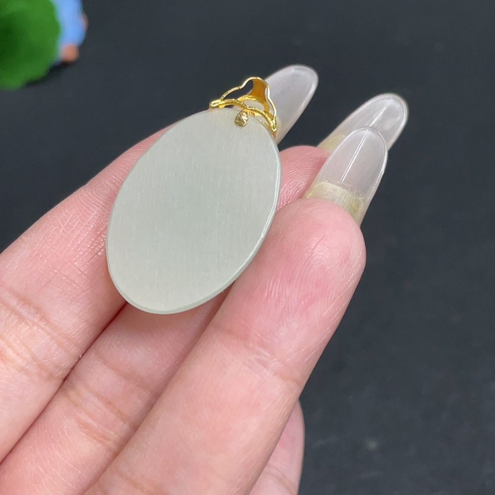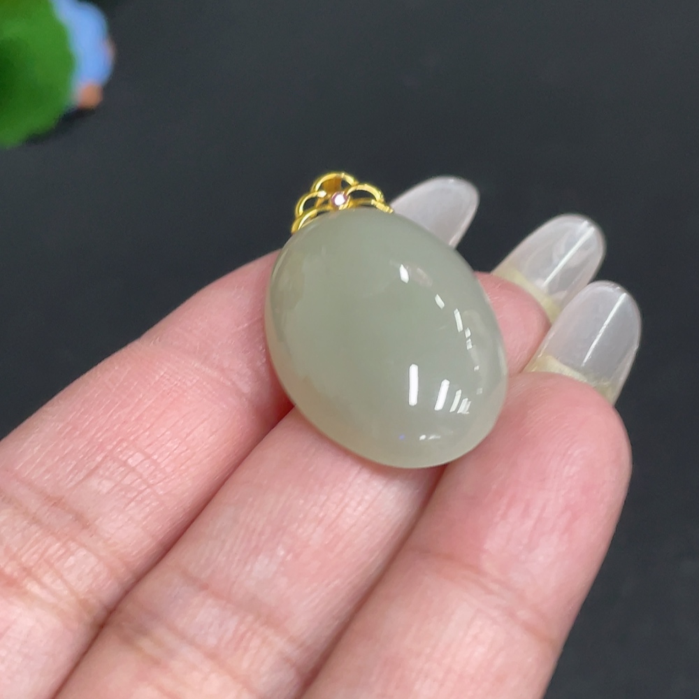 Hetian Jade Inlaid Pendant, Cabochon, 18k, Total Weight Approx. 6.7g
