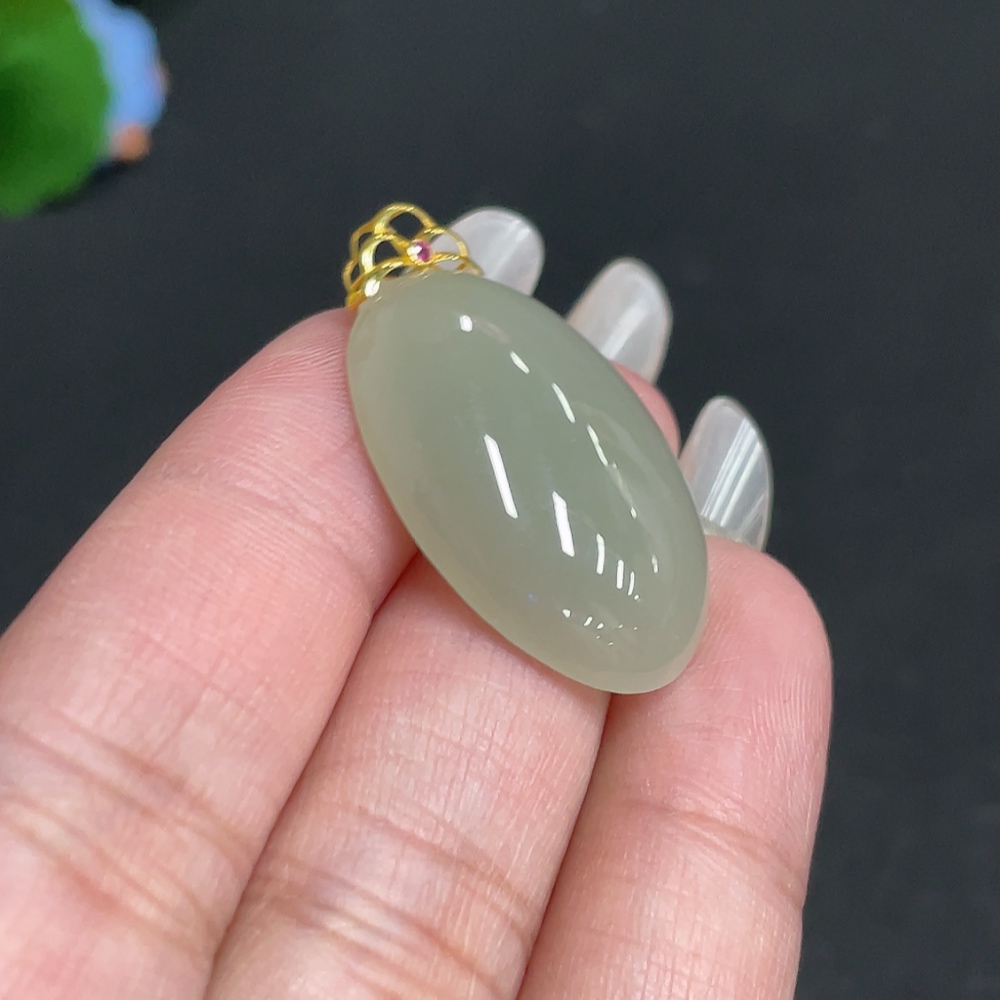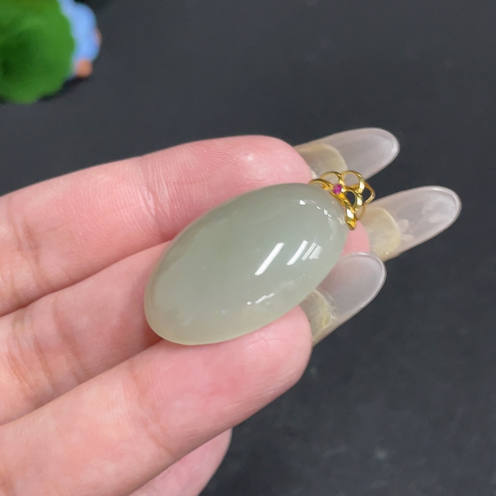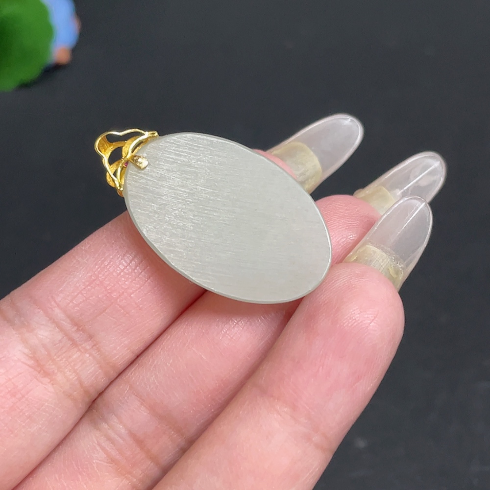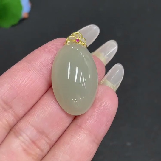 Hetian Jade Inlaid Pendant, Cabochon, 18k, Total Weight Approx. 6.7g