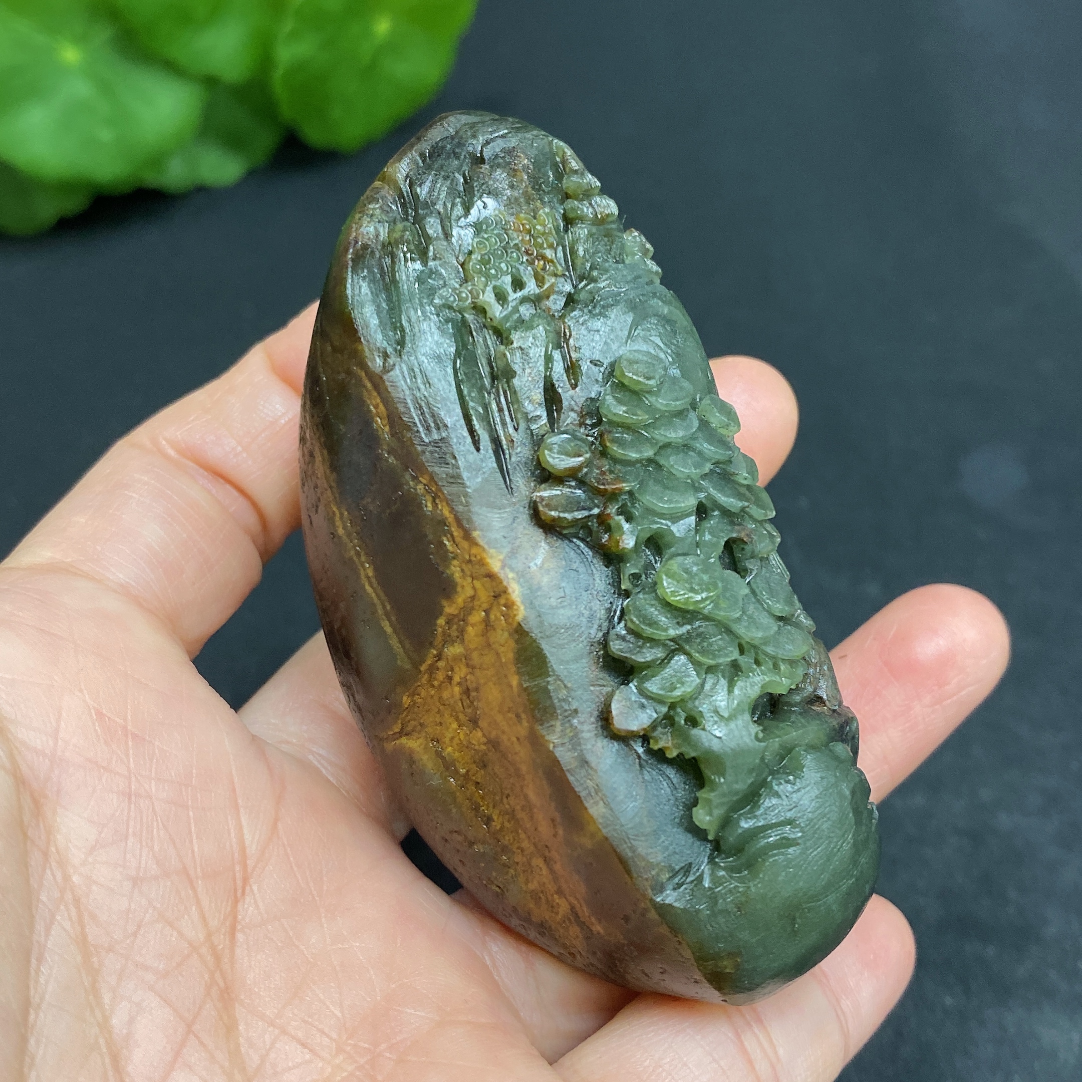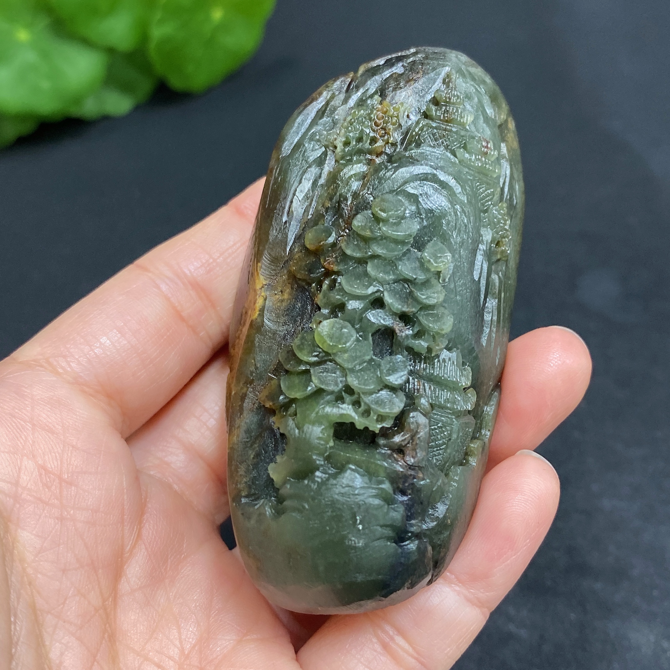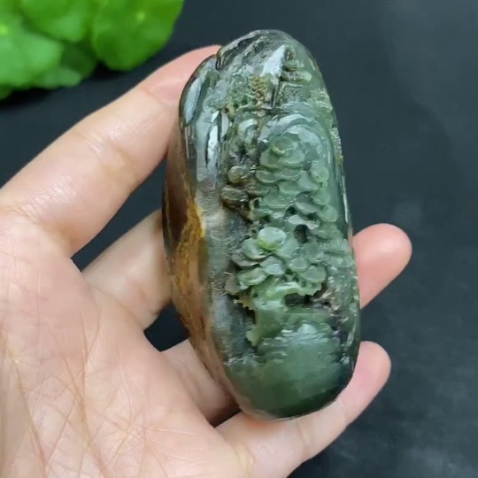 Hetian Jade Handheld Piece - Landscape - Total Weight Approx. 129.2g - Undetermined Skin Color Origin - Contains Other Mineral Components