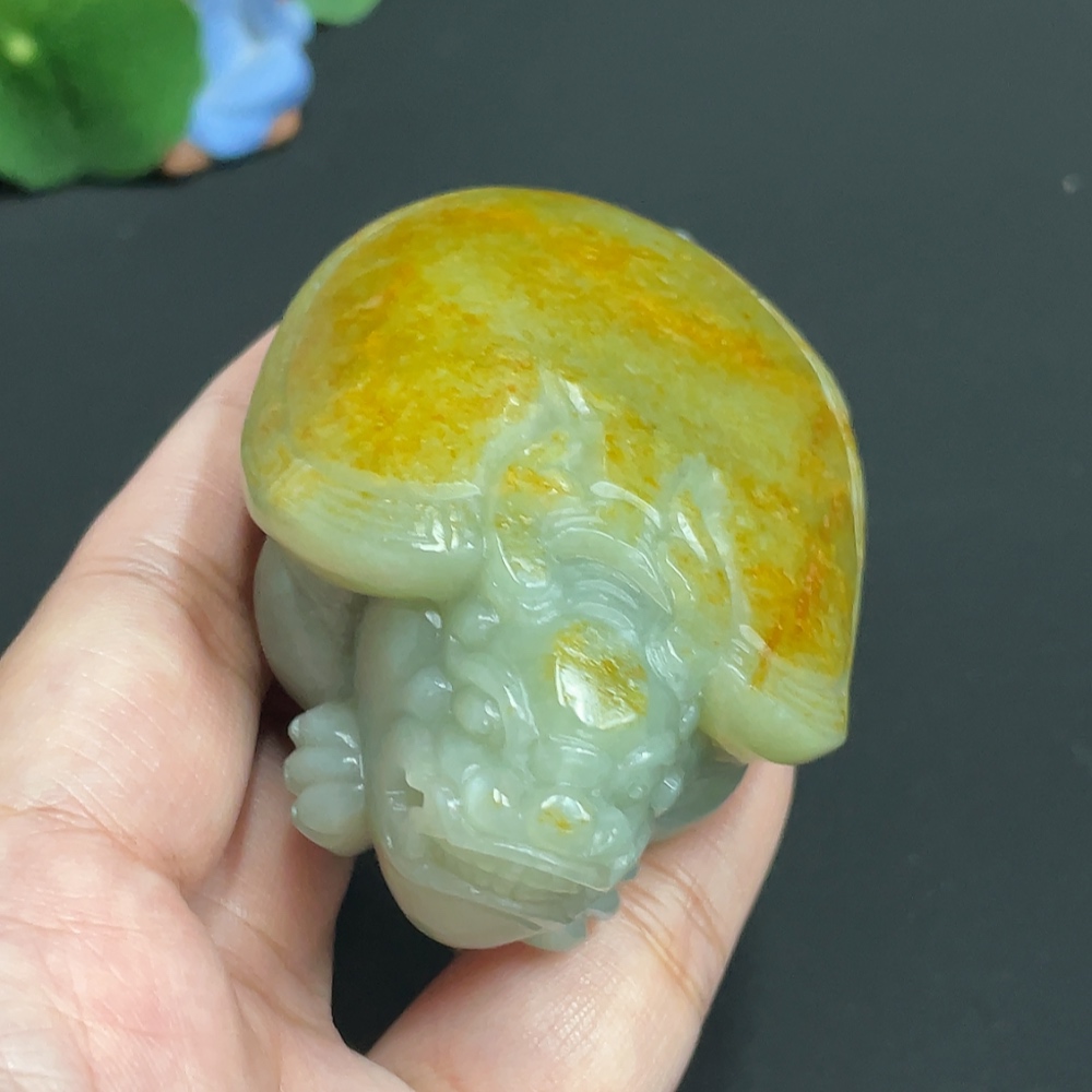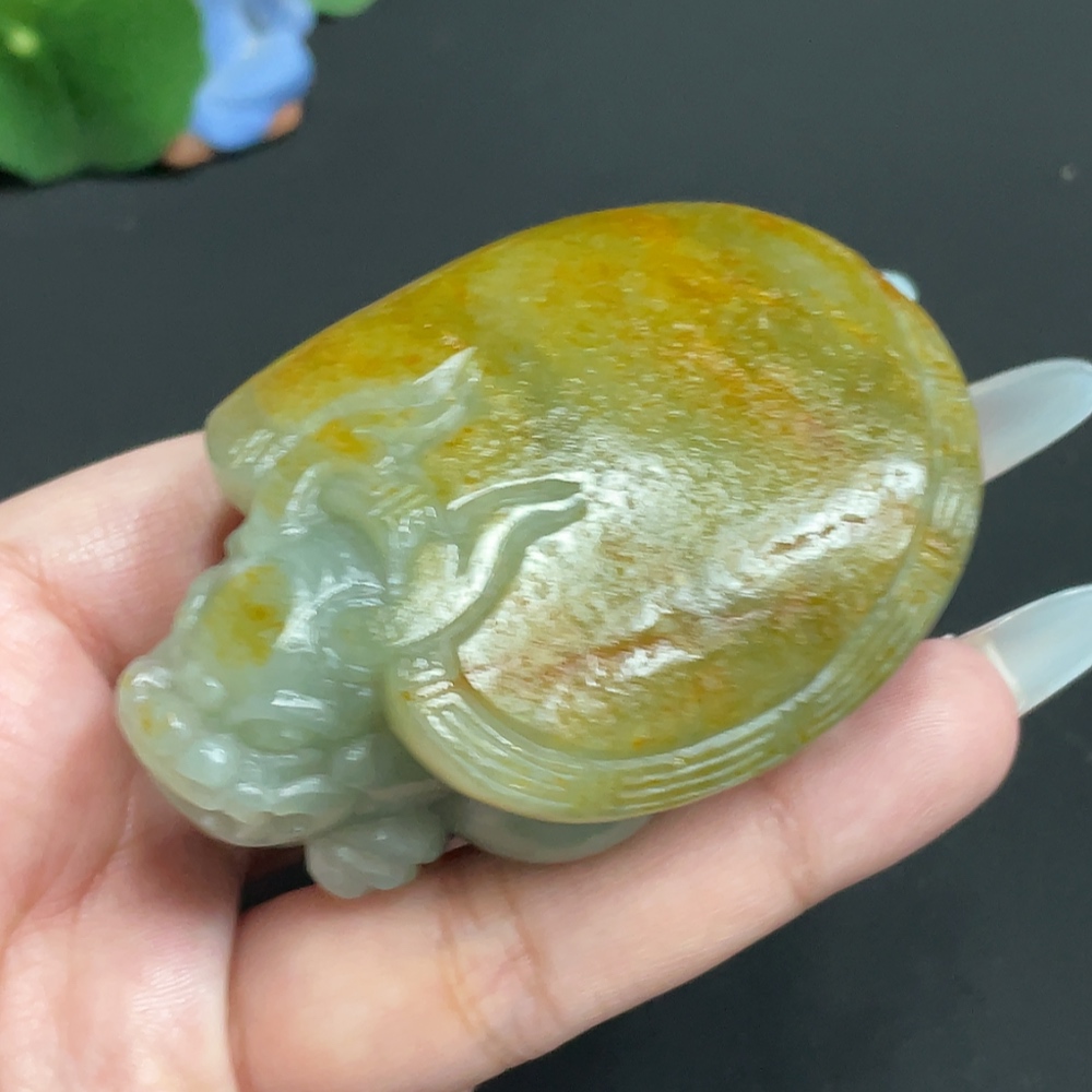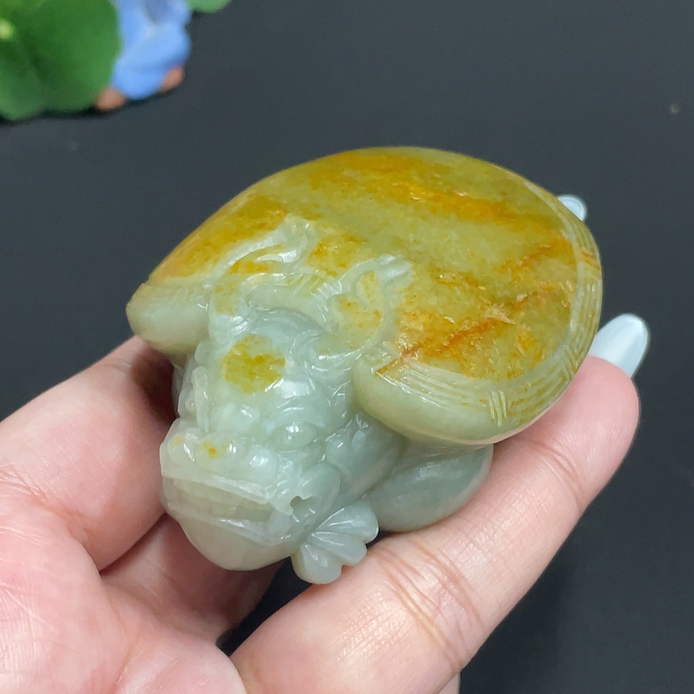 Hetian Jade Handheld Piece - Dragon Turtle - Total Weight Approx. 168.3g - Undetermined Skin Color Origin