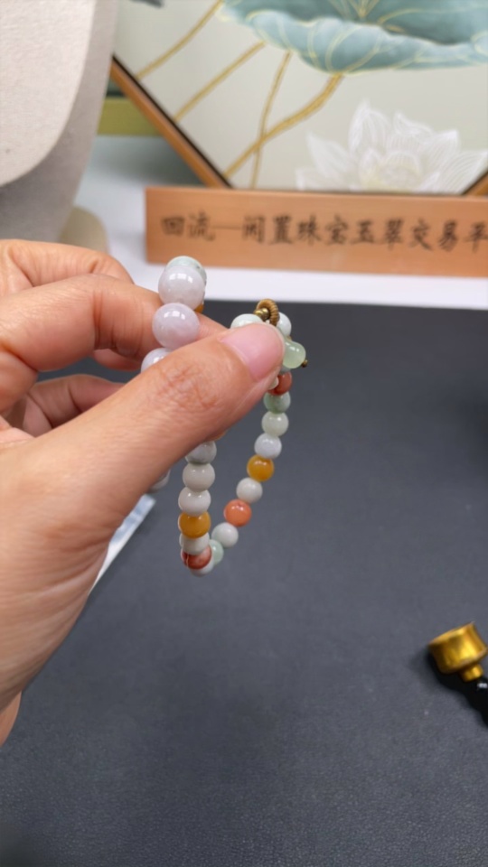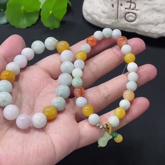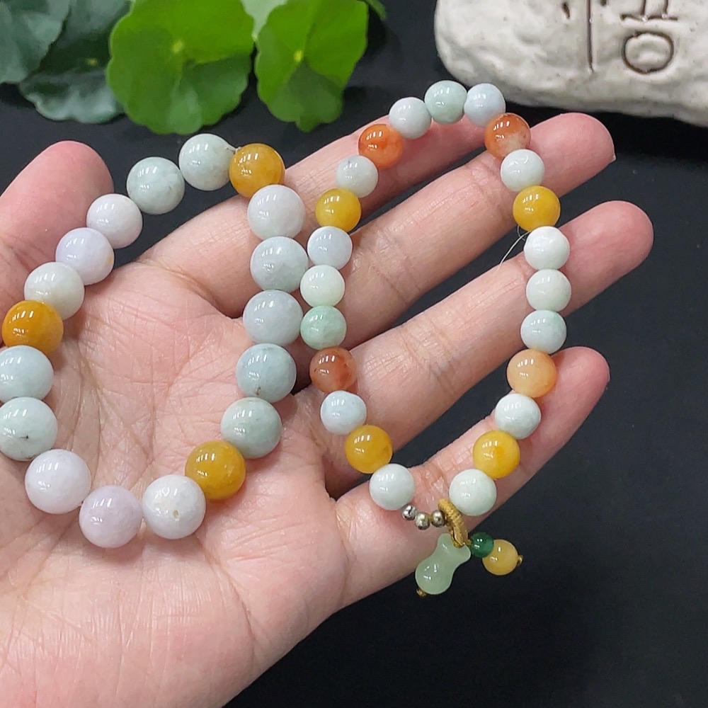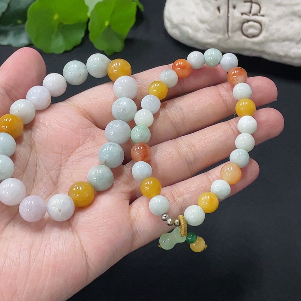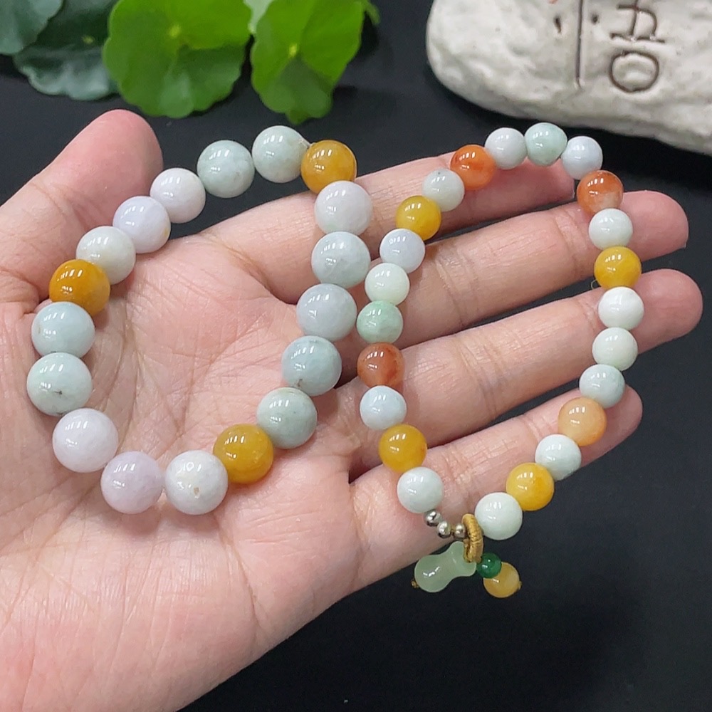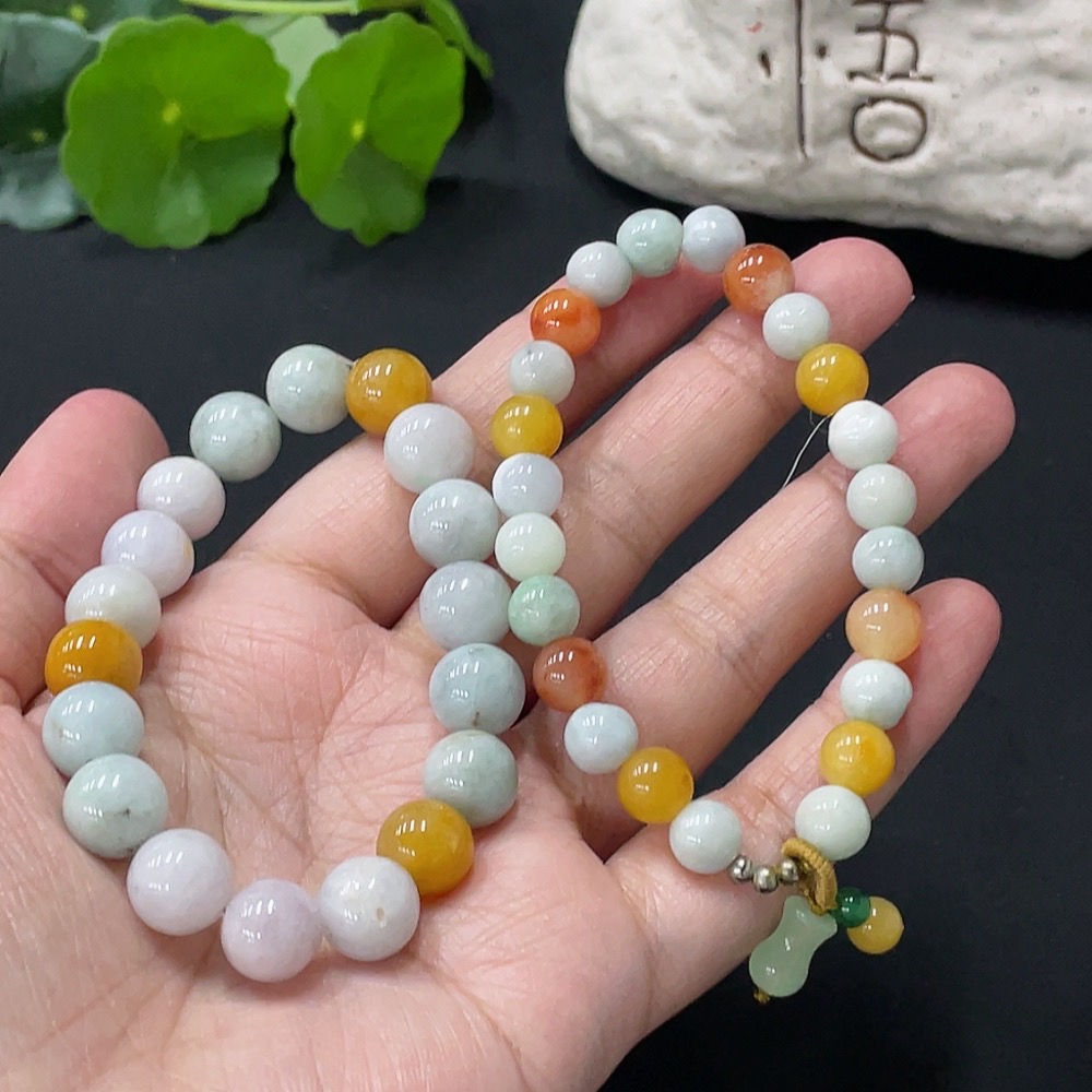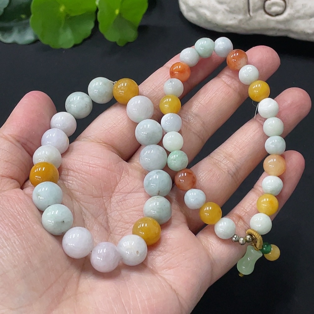 Jadeite Bracelet Card 10.2mm approx. Red, Yellow Beads Non-A Non-Gold Inlaid