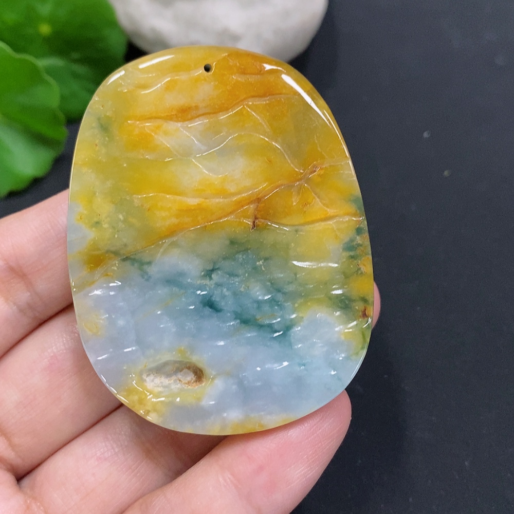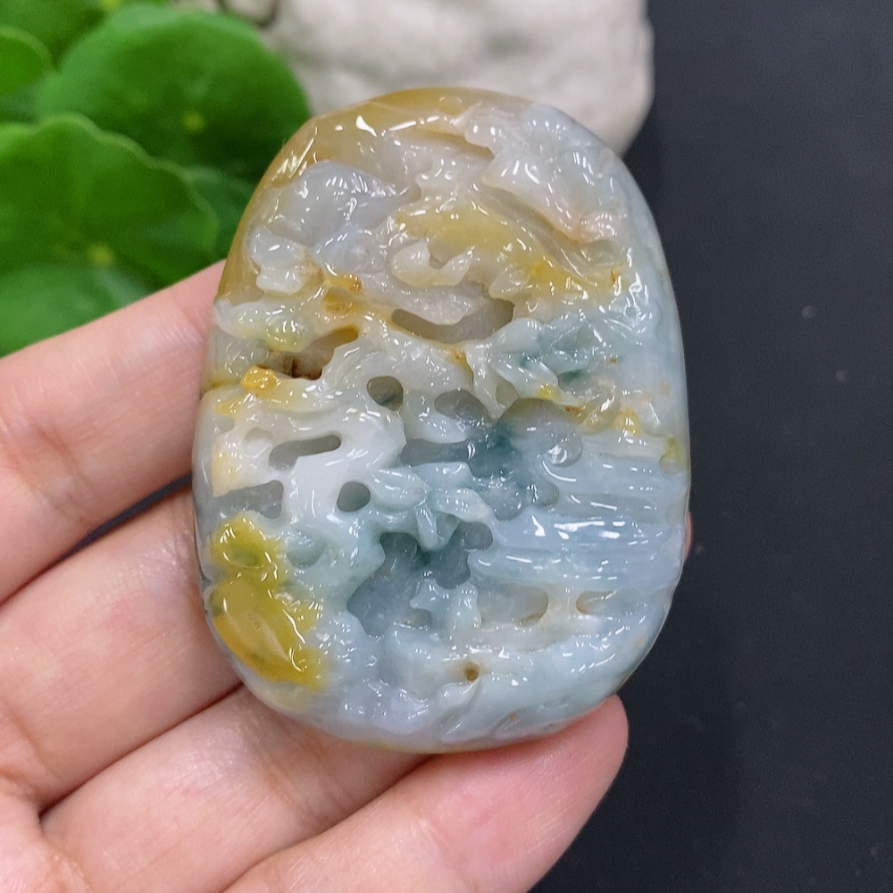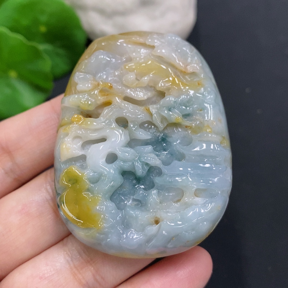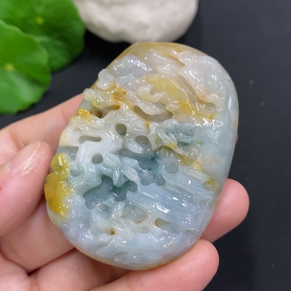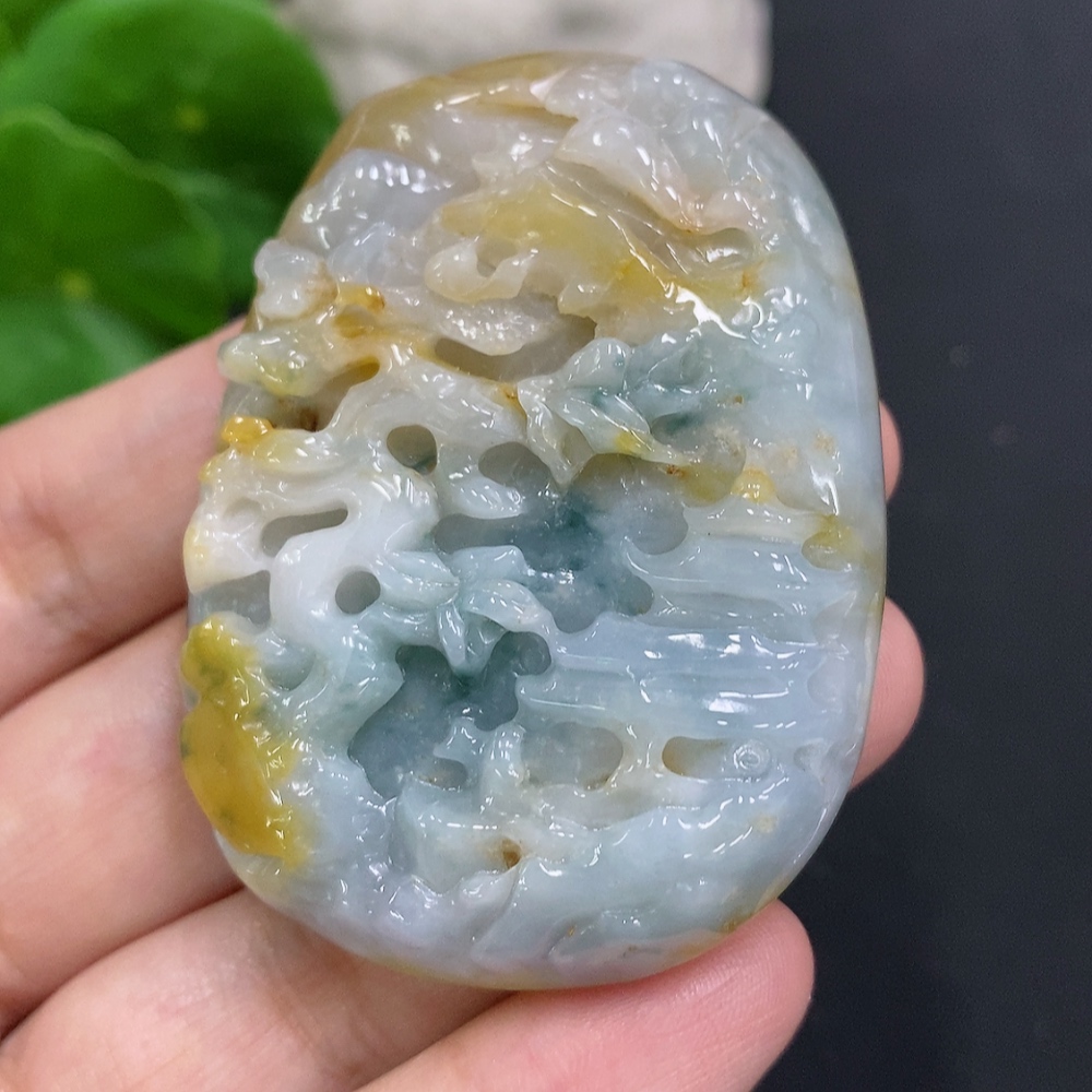 Jadeite Landscape Pendant Total Weight Approximately 53.8 Grams