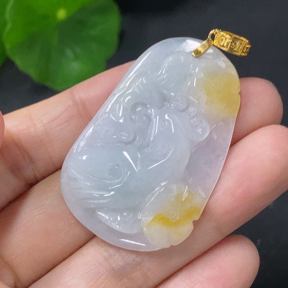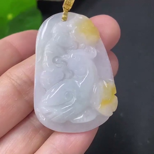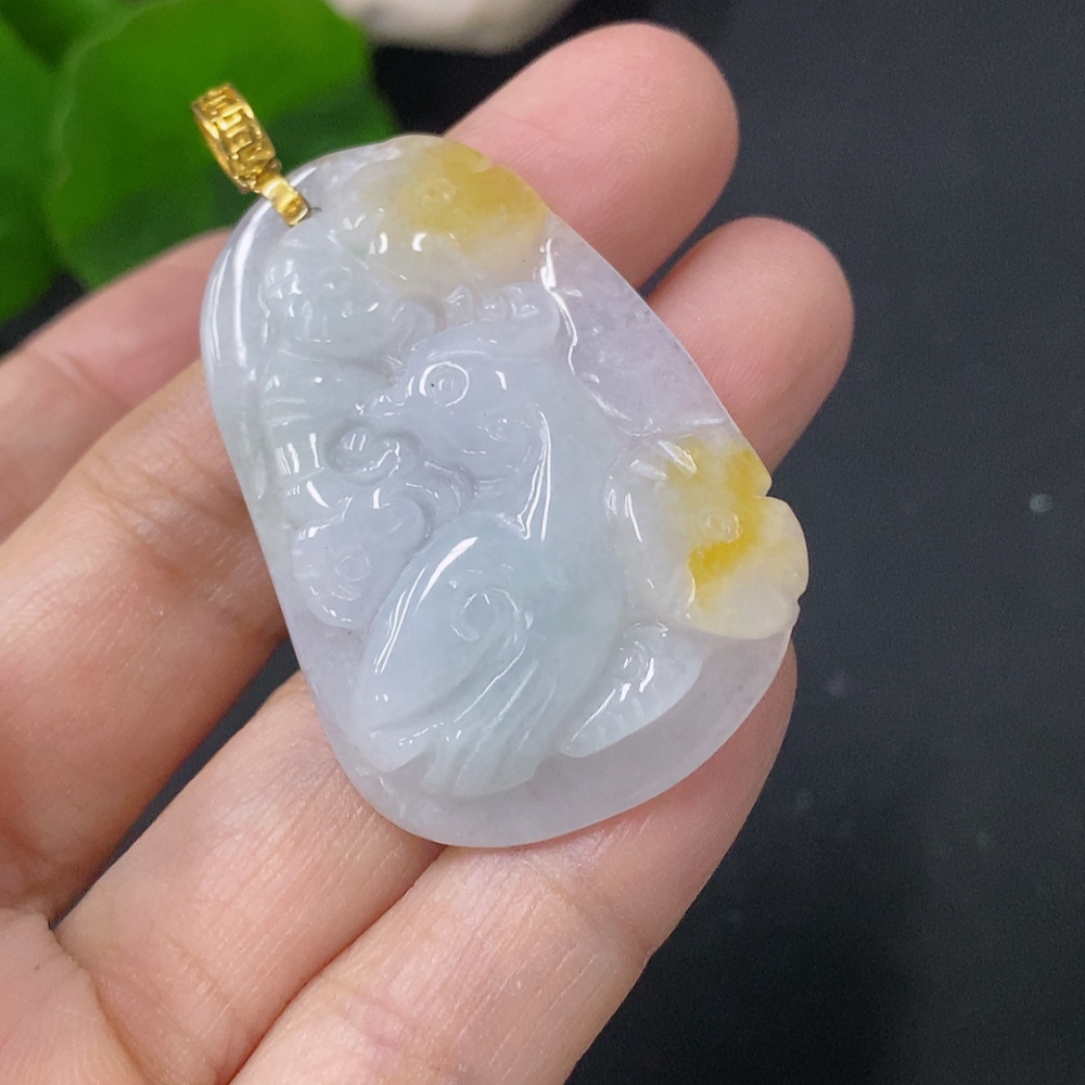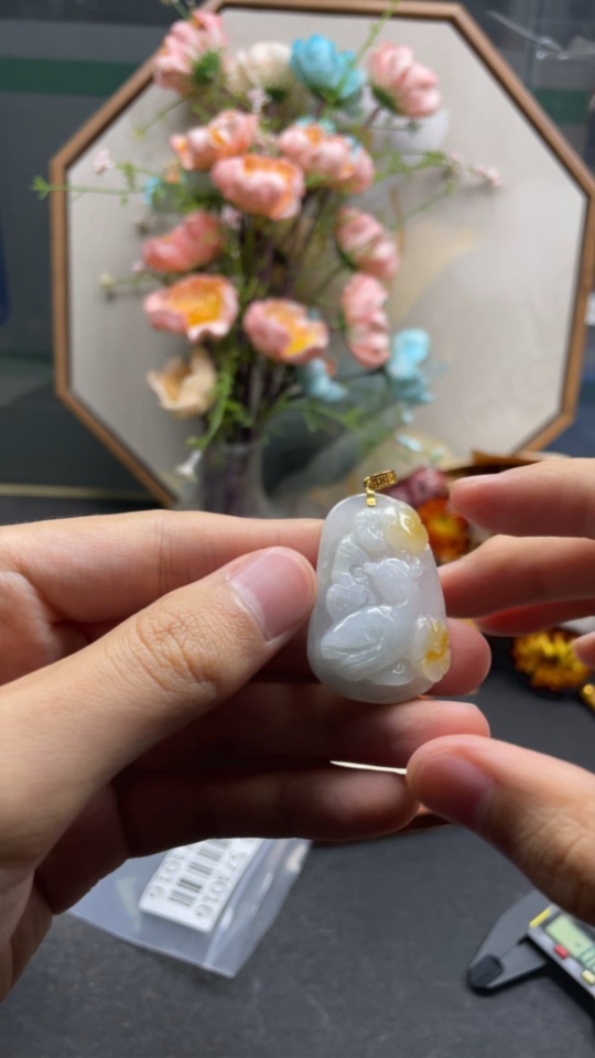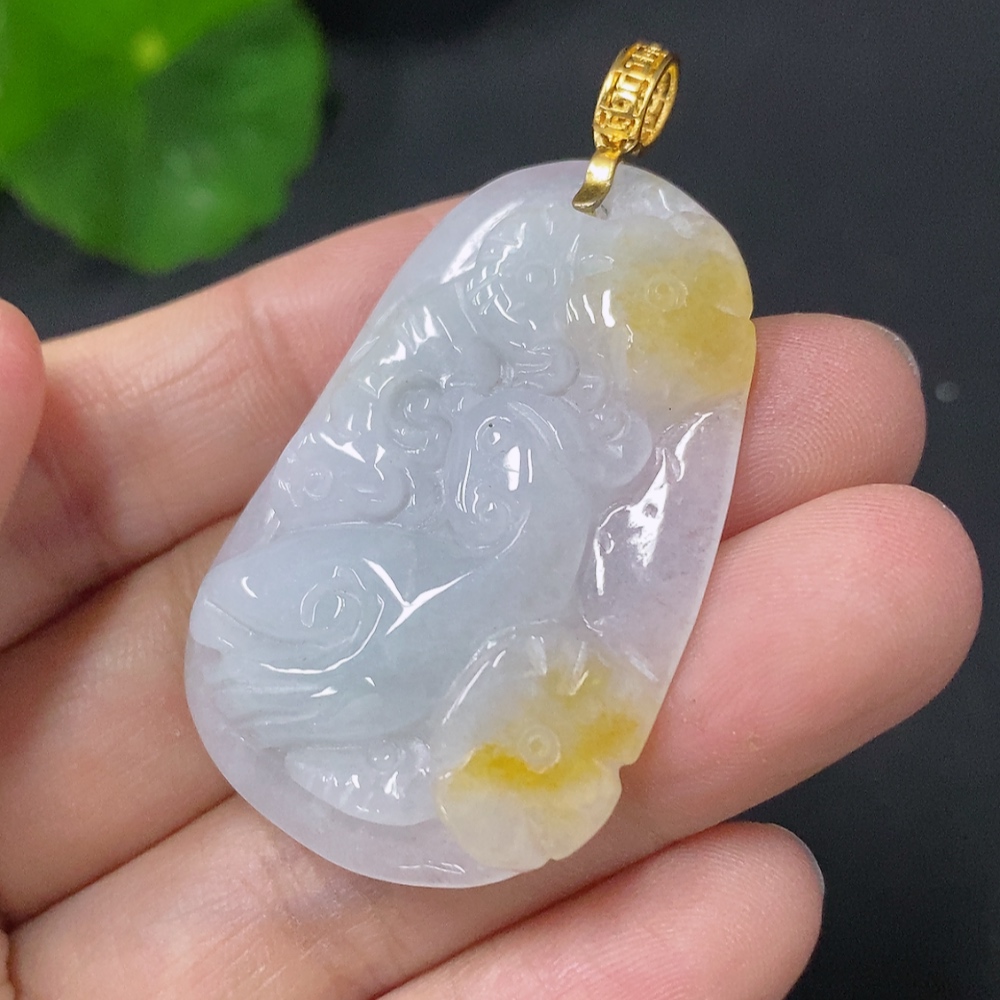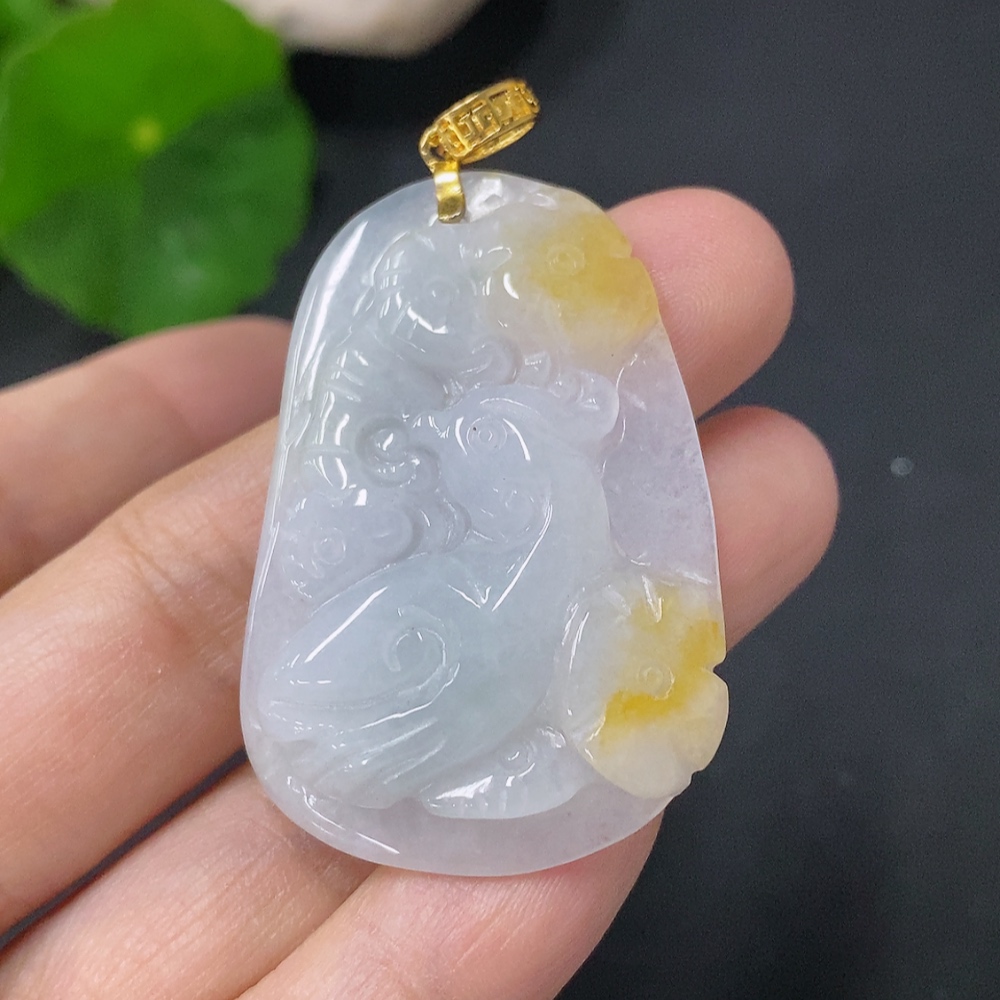 Jadeite Pendant Birds Singing and Flowers Giving Forth Fragrance Non-gold Total Weight Approx. 13.23g