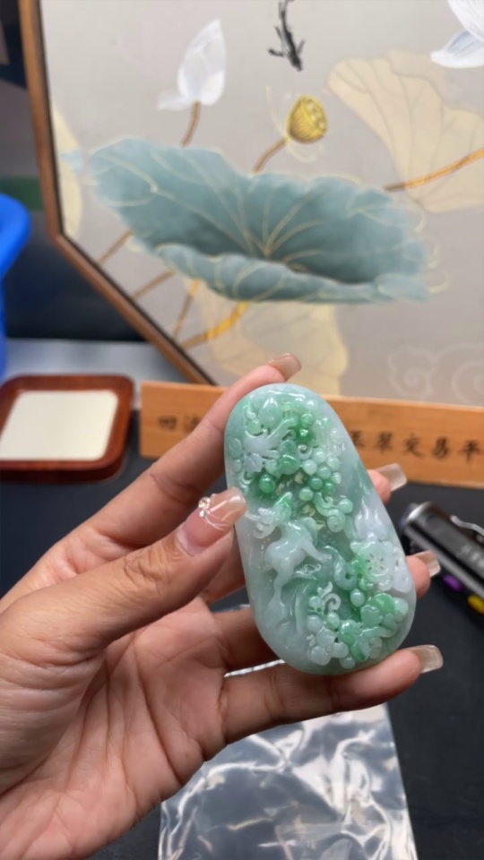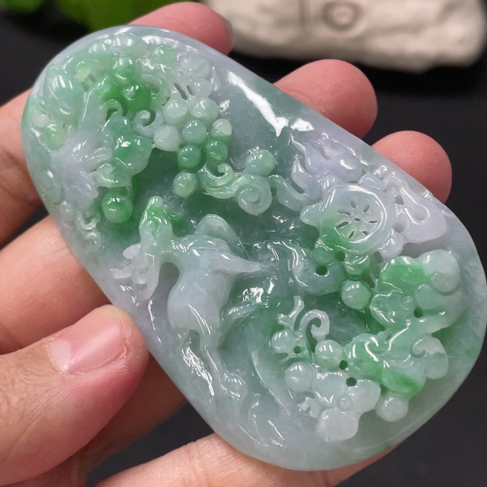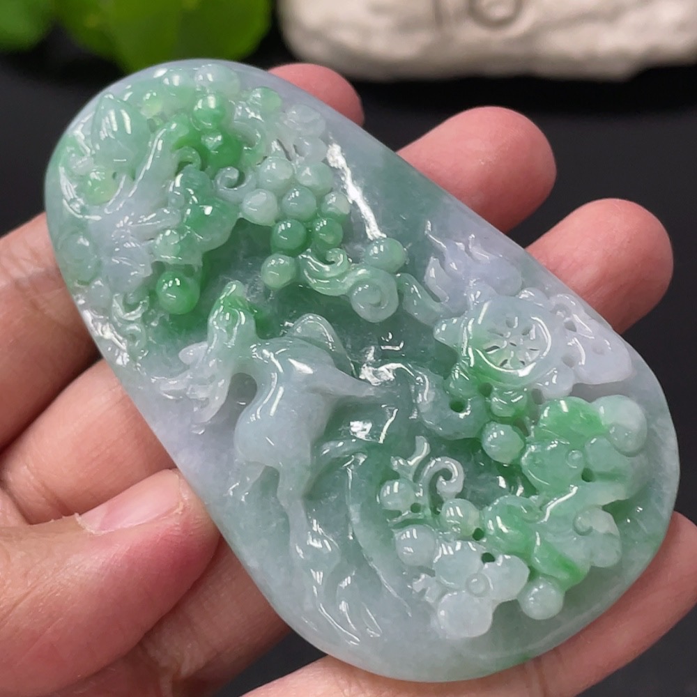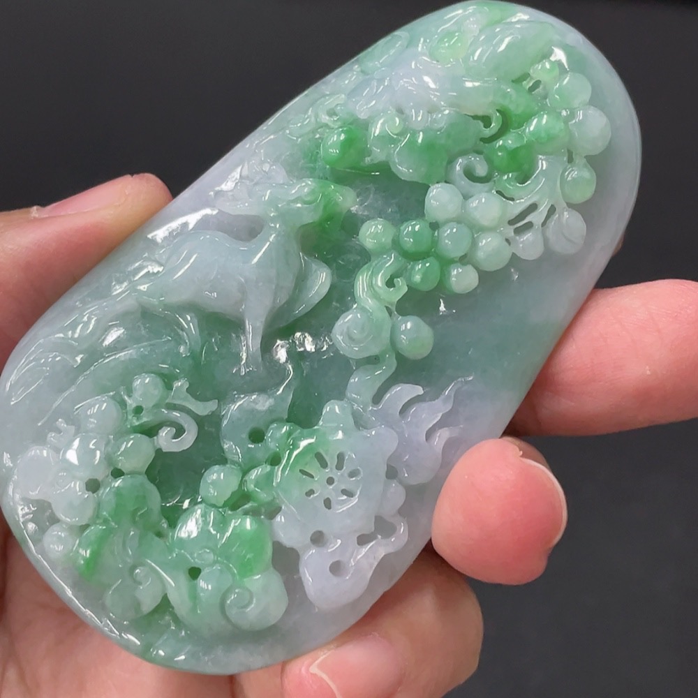 Jadeite Deer Pendant, Total Weight Approximately 54.27g