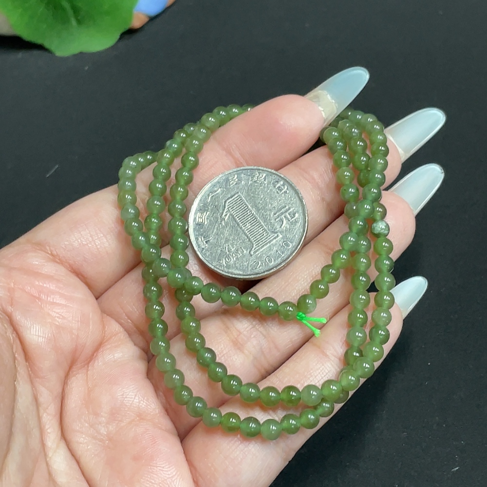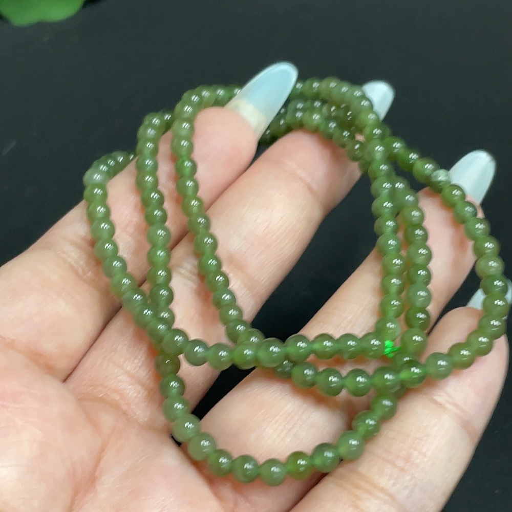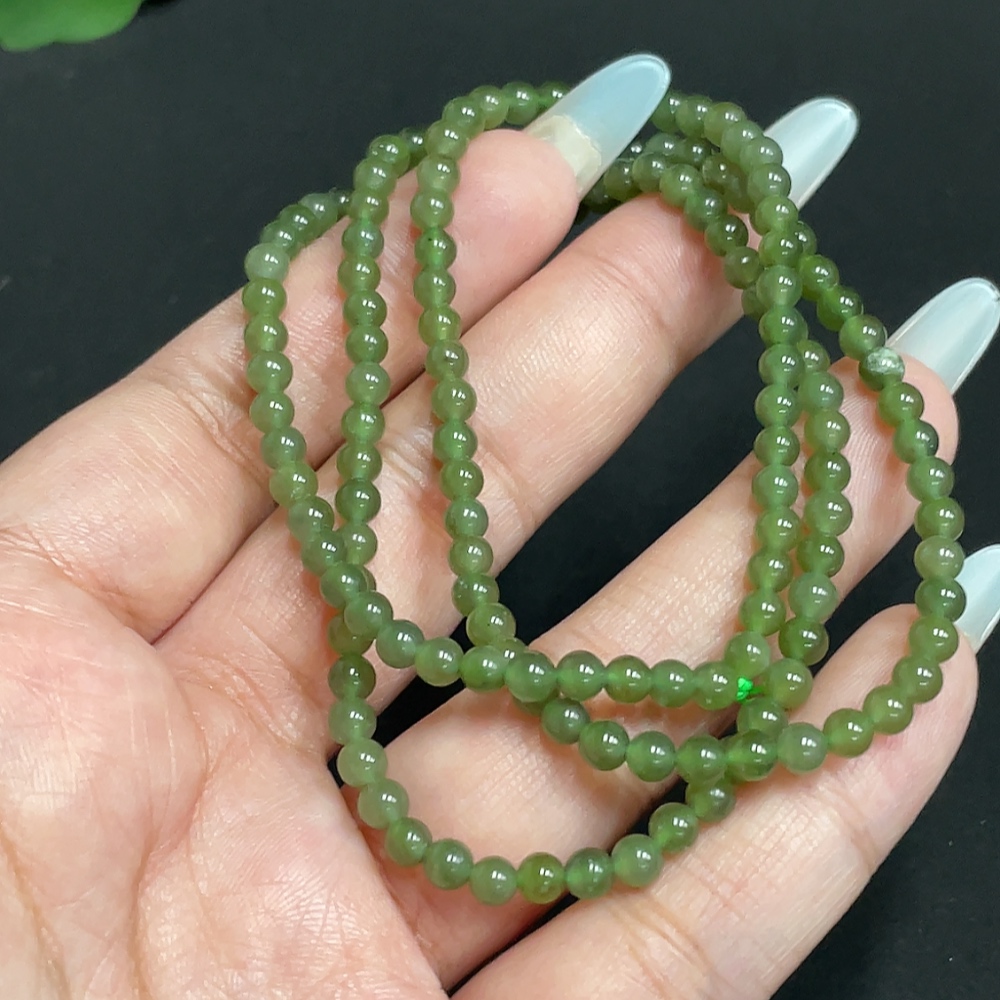 Hetian Jade Bead Necklace, Approx. 3.9 mm, Total Weight Approx. 14.3g
