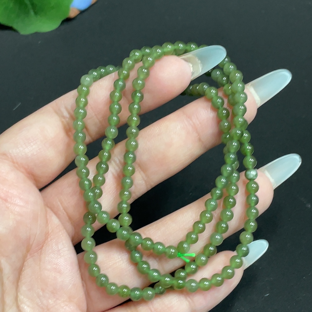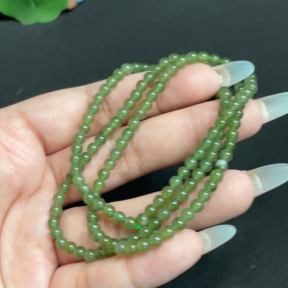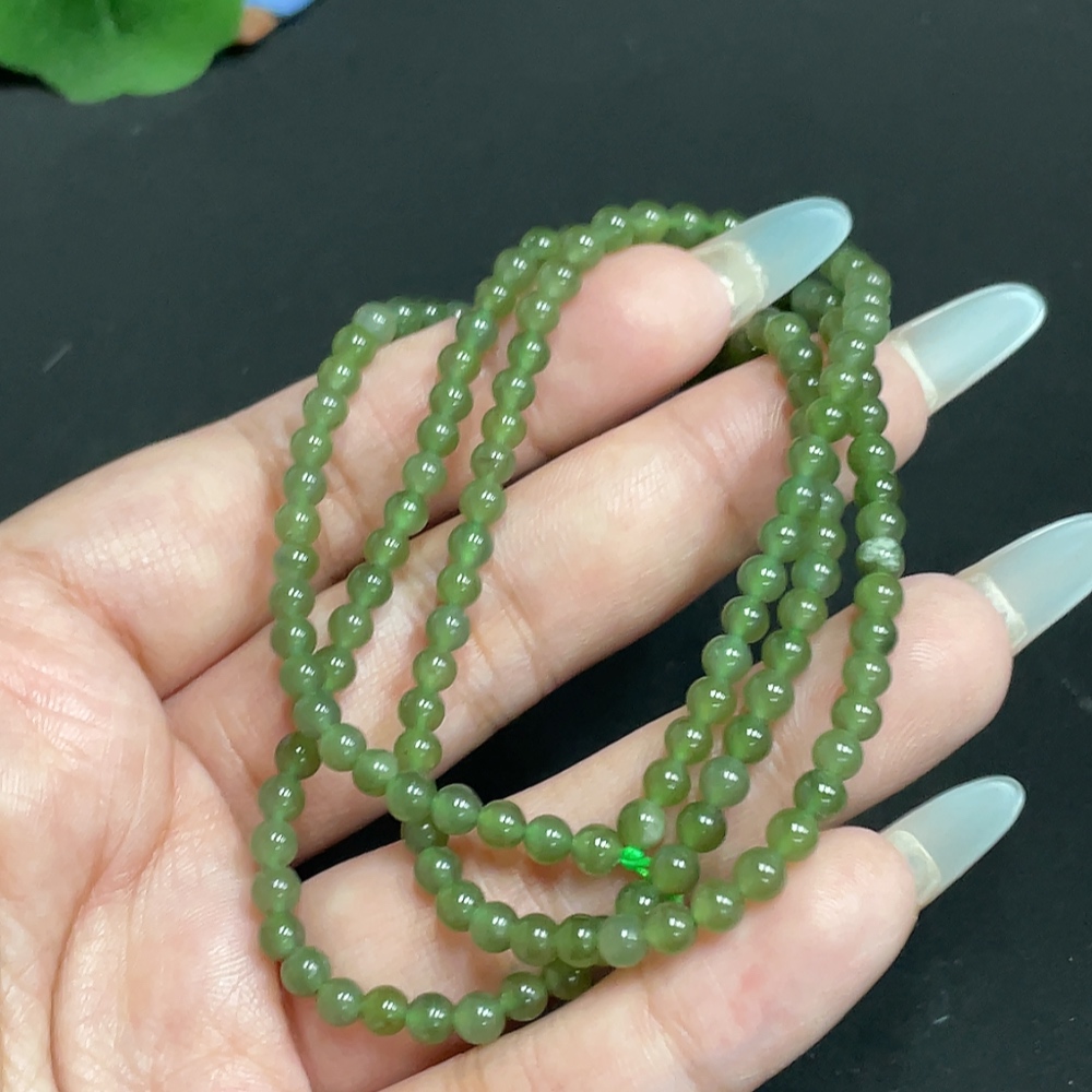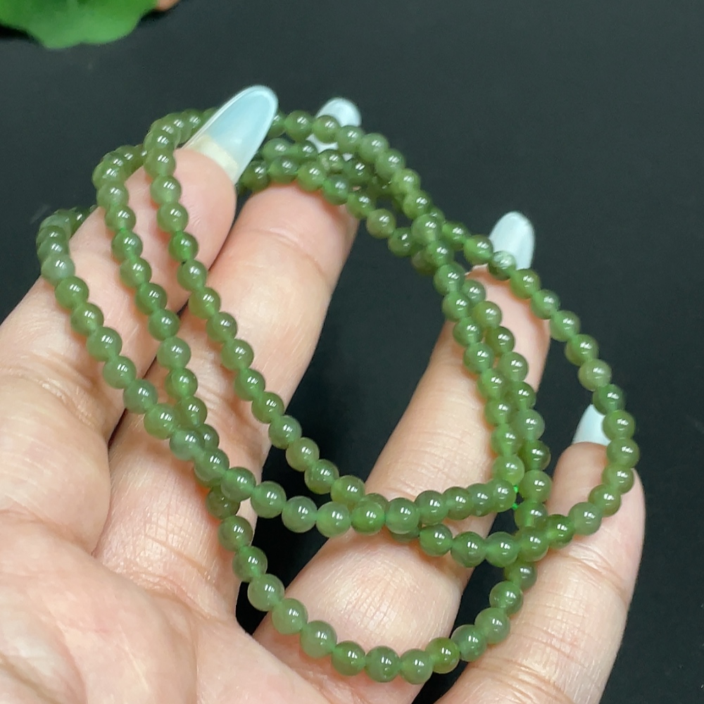 Hetian Jade Bead Necklace, Approx. 3.9 mm, Total Weight Approx. 14.3g