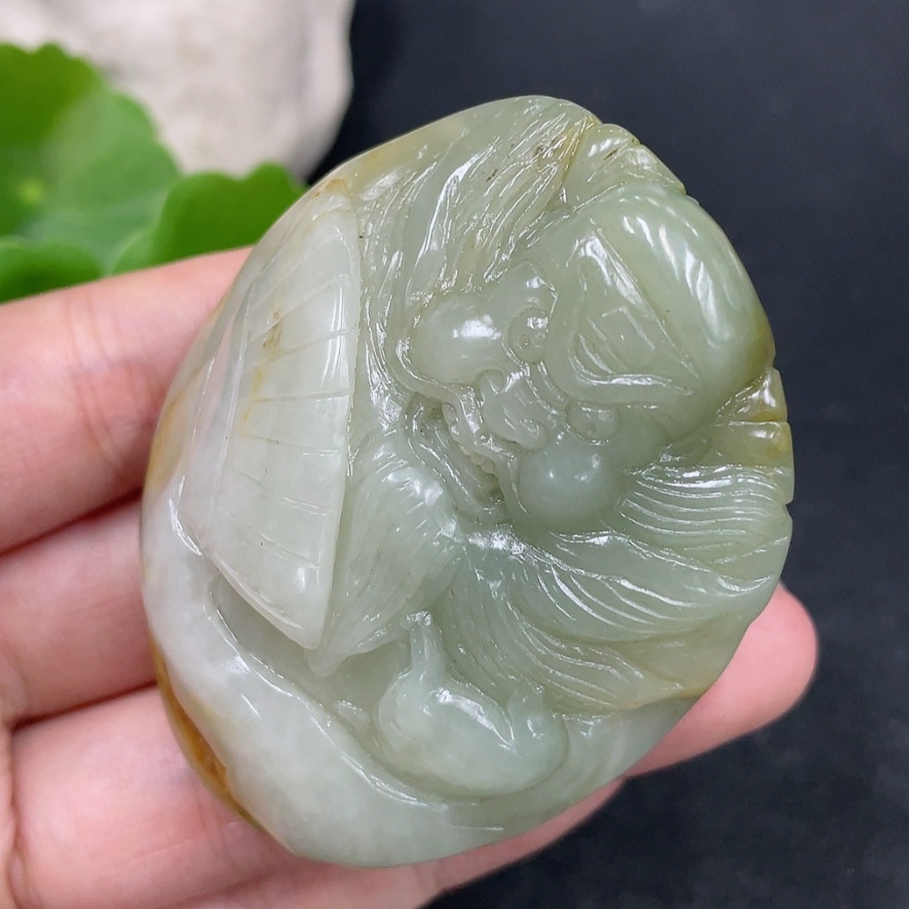 Trezaar - Hetian Jade Handheld Piece - Zhong Kui, Undetermined Skin Color Origin, Contains Other Mineral Components, Total Weight Approximately 109.3g