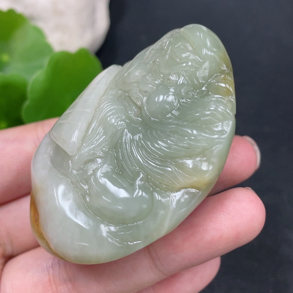 Hetian Jade Handheld Piece - Zhong Kui, Undetermined Skin Color Origin, Contains Other Mineral Components, Total Weight Approximately 109.3g