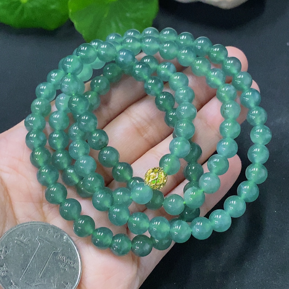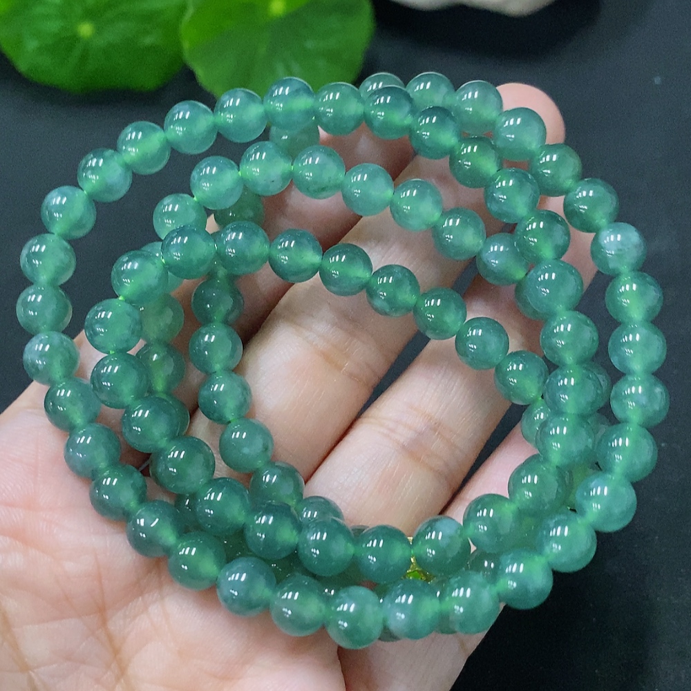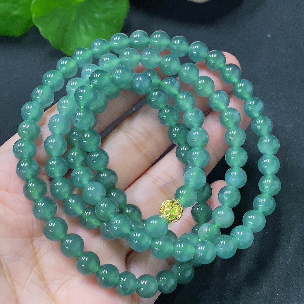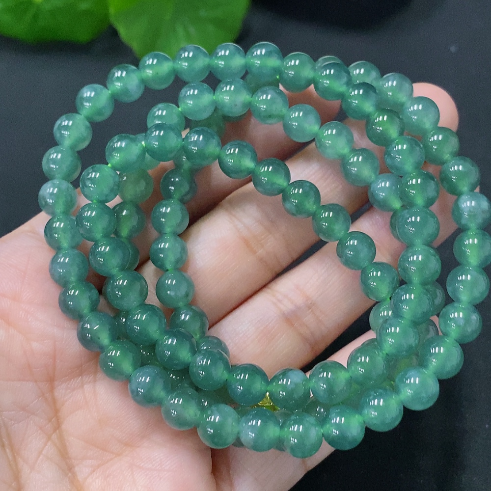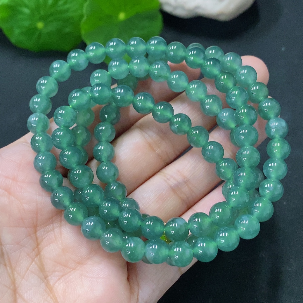 Jadeite Bead Necklace Approx. 6.5mm Non-Gold Total Weight Approx. 48g