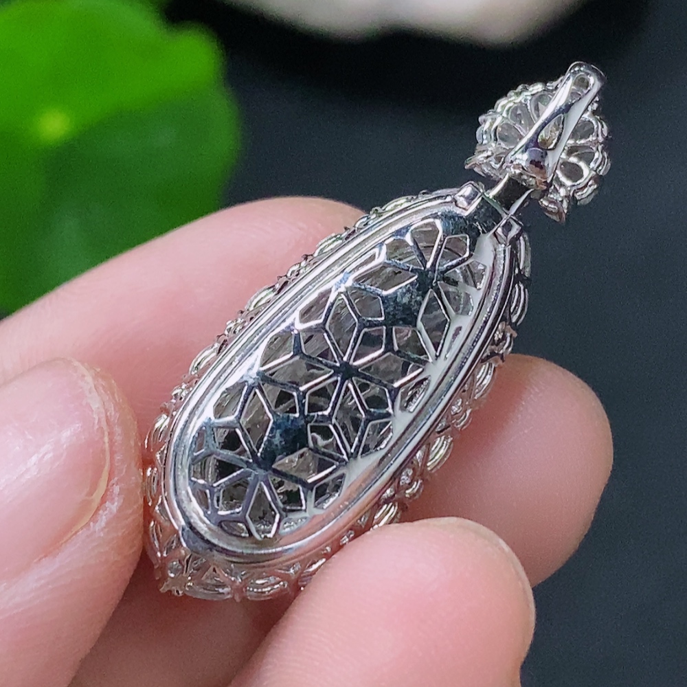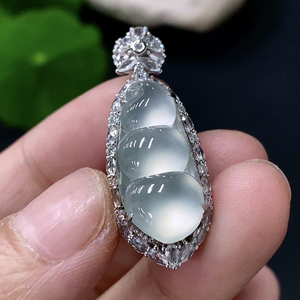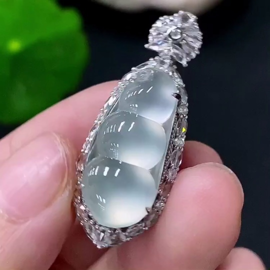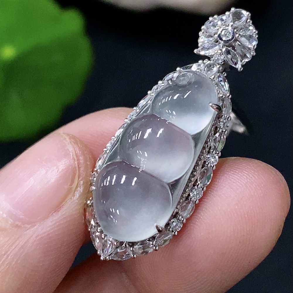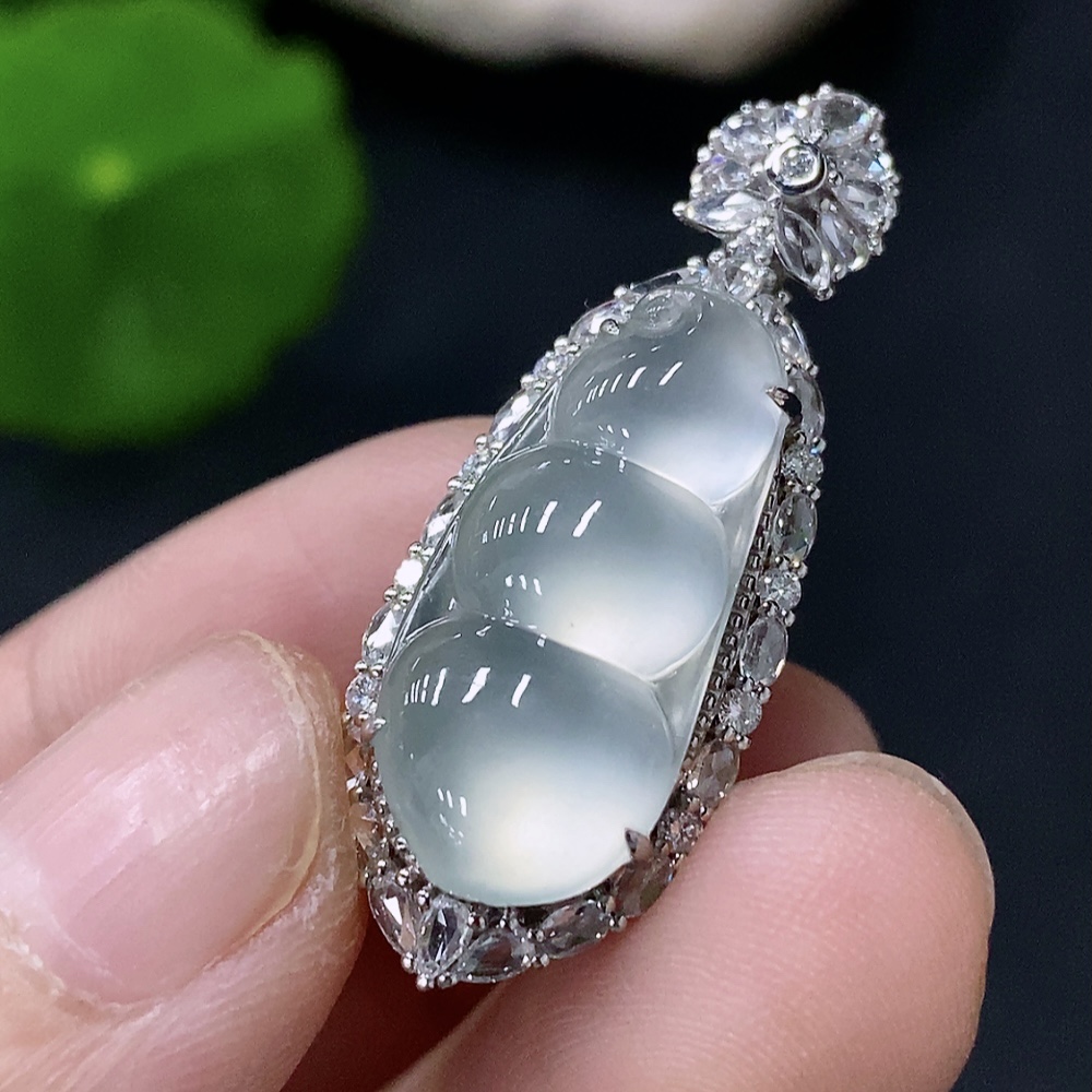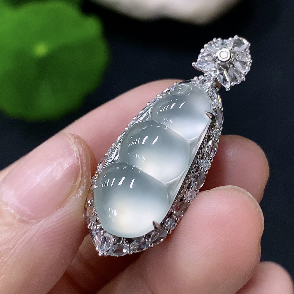 Jadeite Blessed Bean Pendant Set in 18k Gold with Diamond Accents, Total Weight Approximately 5.65g