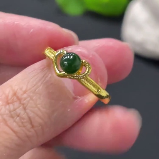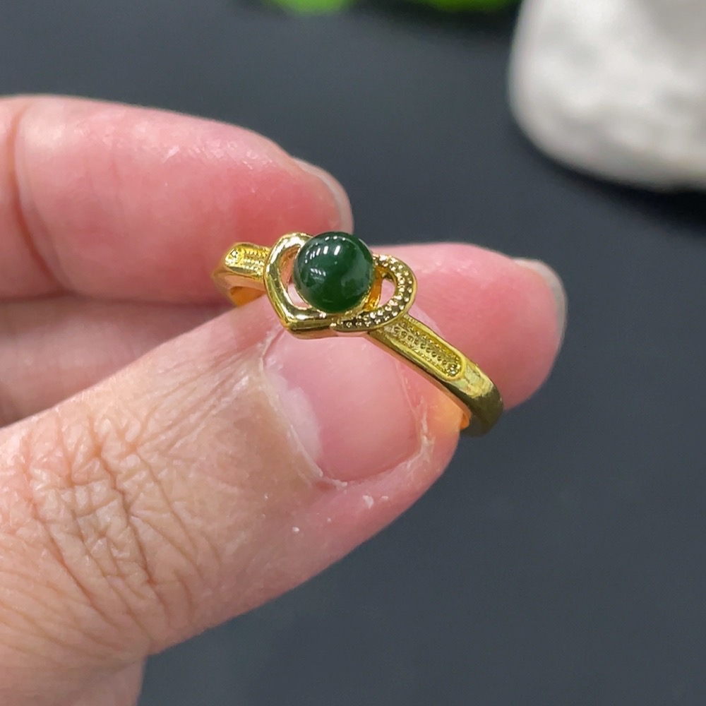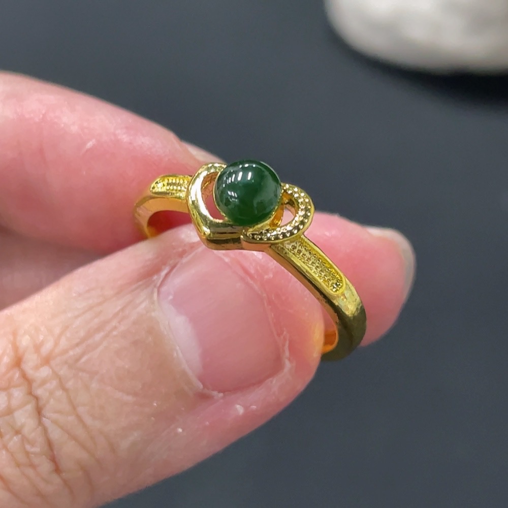 Jadeite Cabochon Inlaid Ring Non-Gold Inlaid Adjustable Size Total Weight Approx. 2.81g