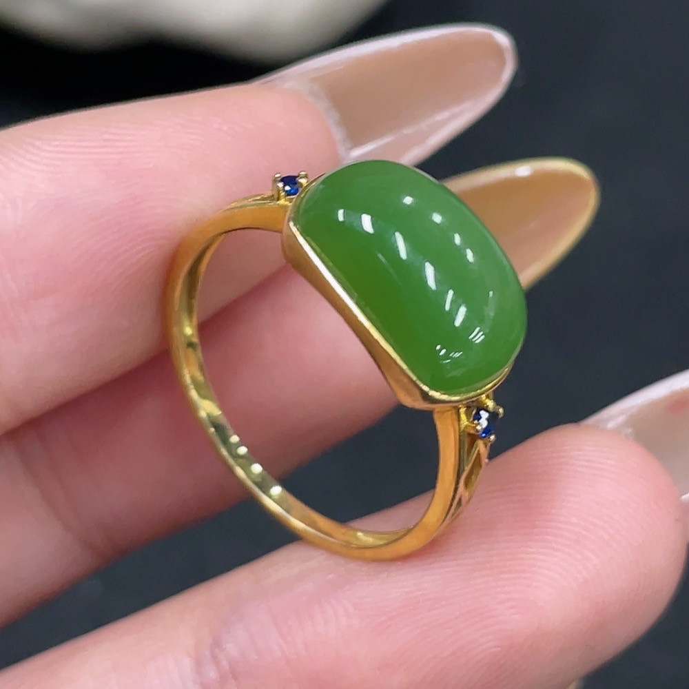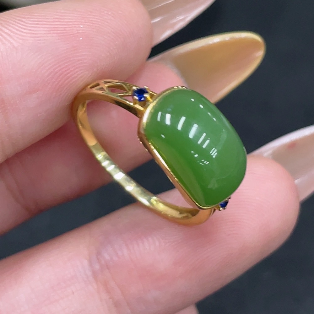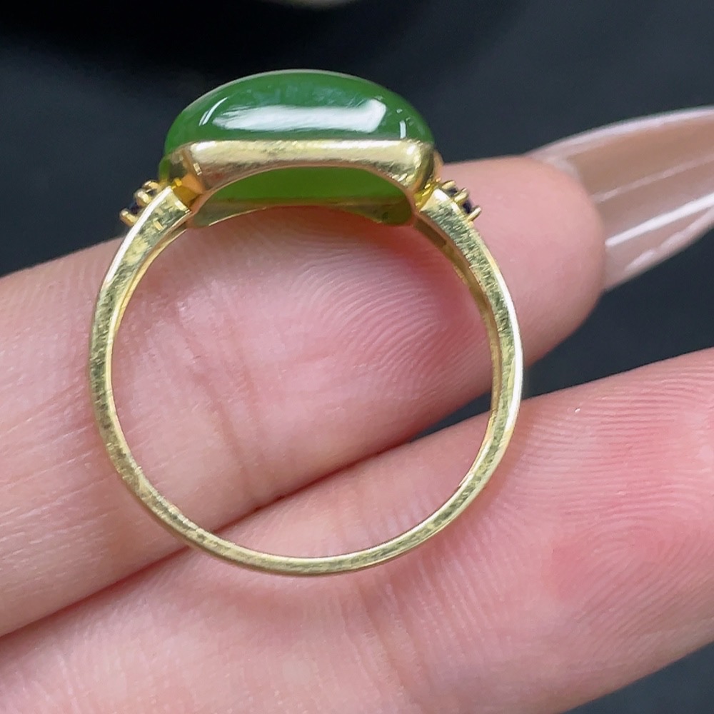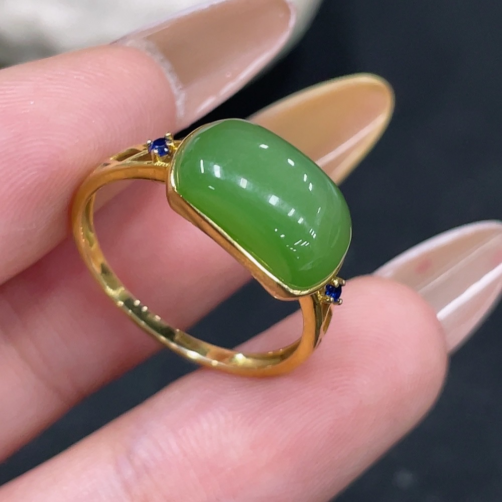 Hetian Jade Open-ended Inlaid Ring with 18k Gold, Size 15, Total Weight Approx. 2.1g