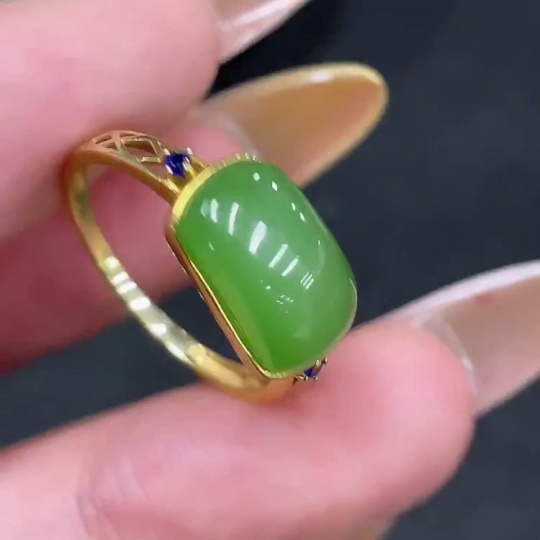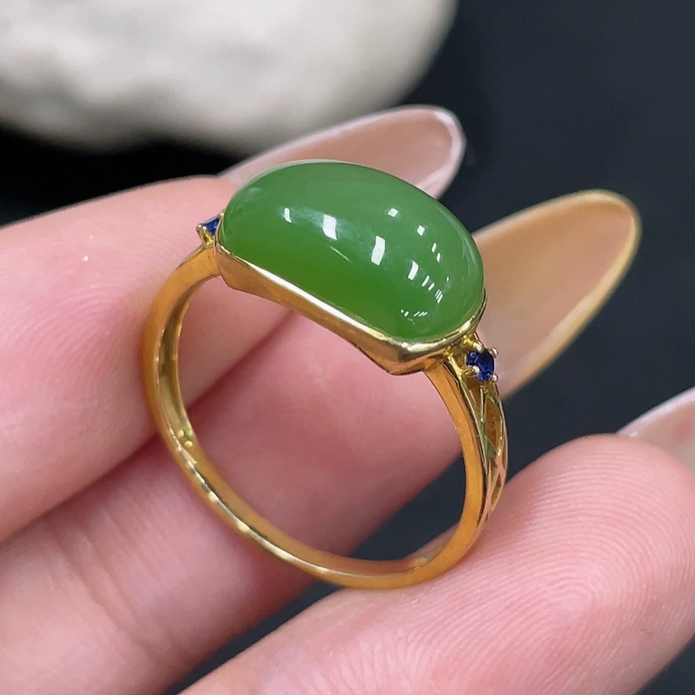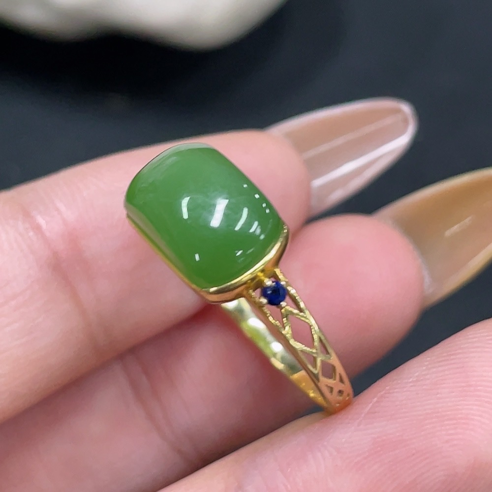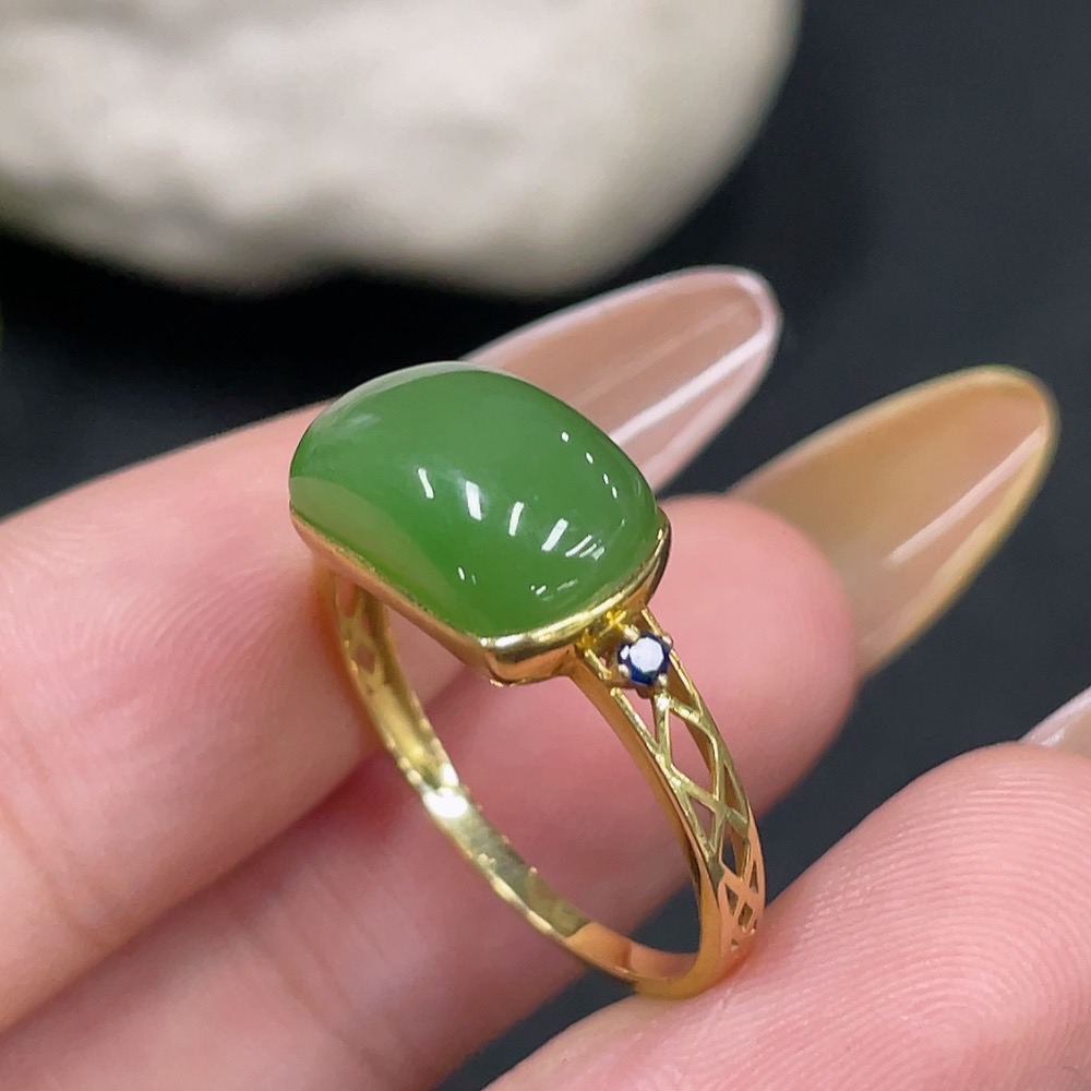 Hetian Jade Open-ended Inlaid Ring with 18k Gold, Size 15, Total Weight Approx. 2.1g