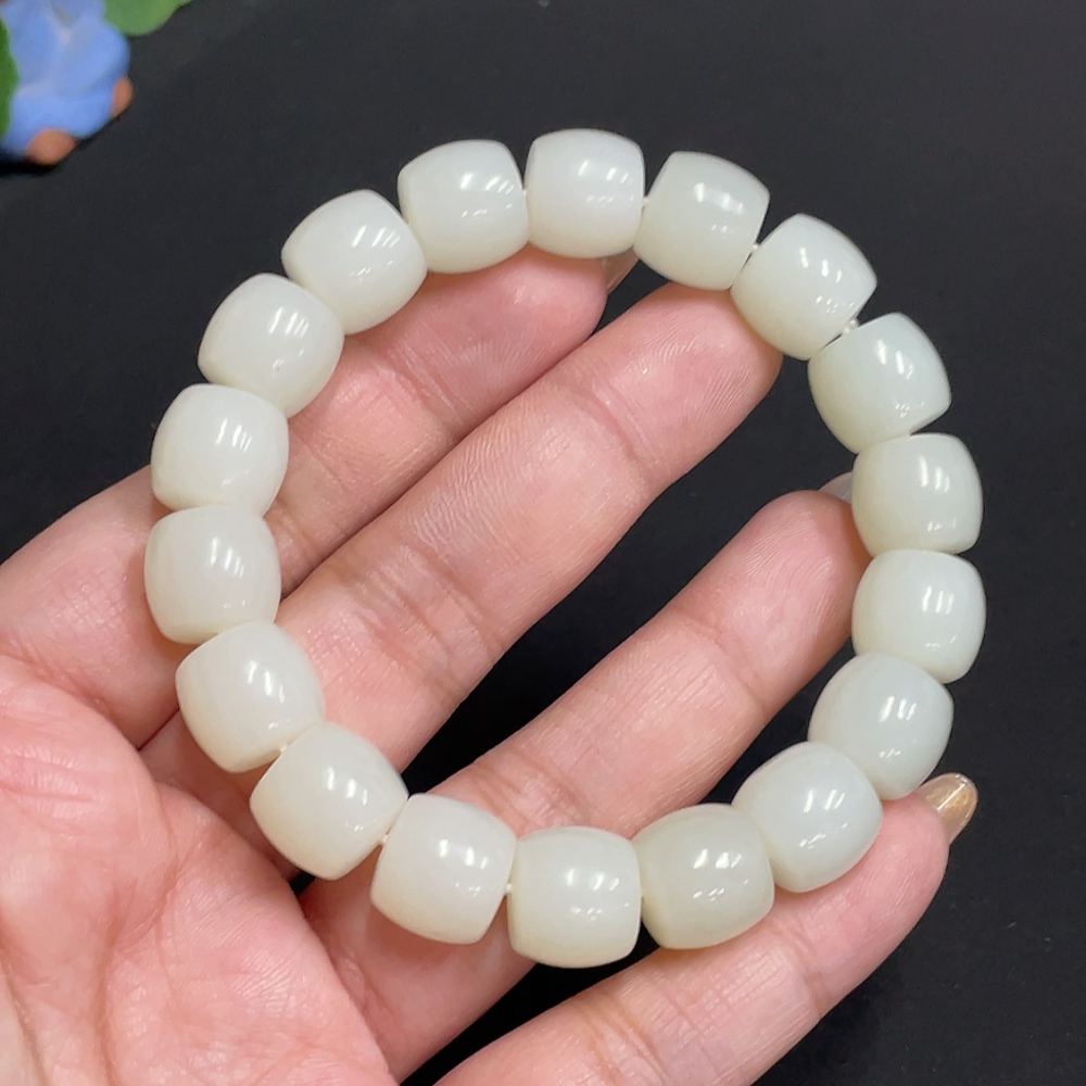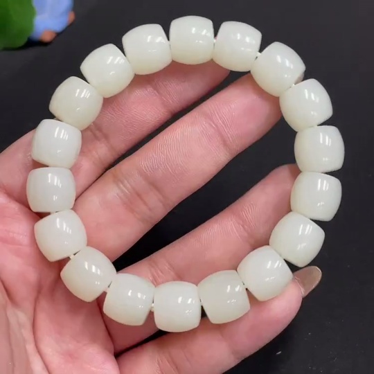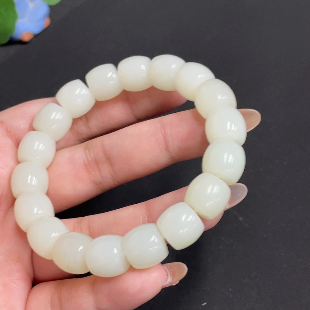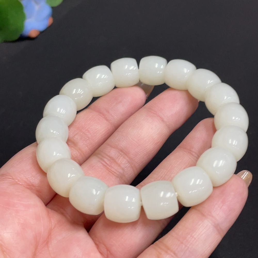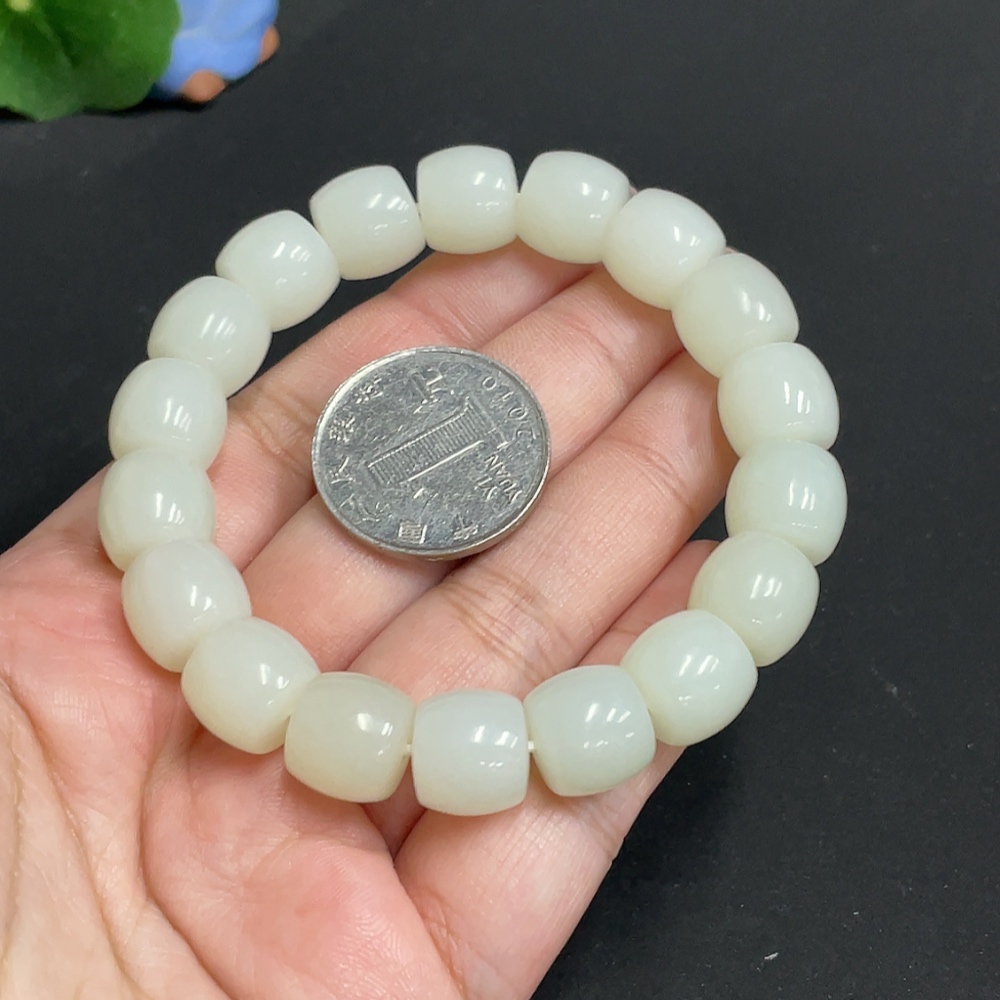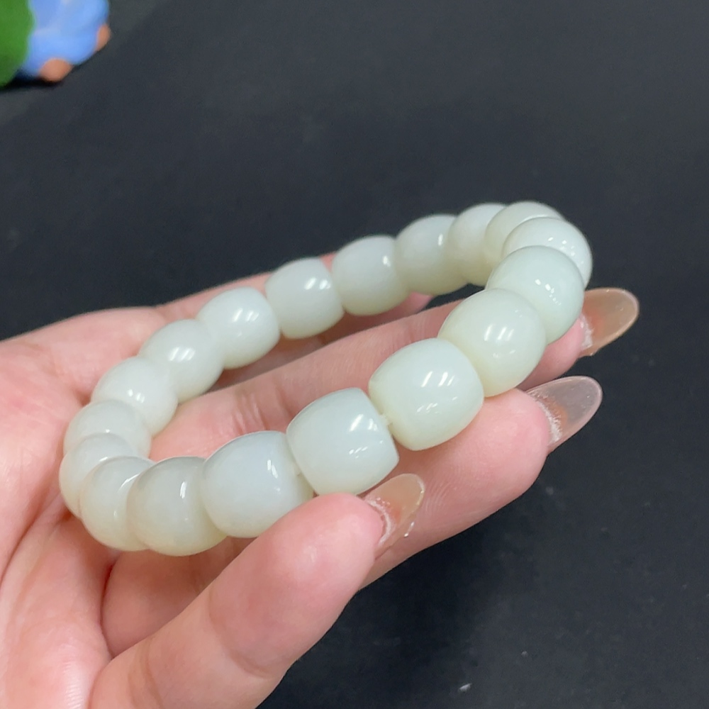 Hetian Jade Bracelet Approx. 11.7mm Beads Total Weight Approx. 52.1g