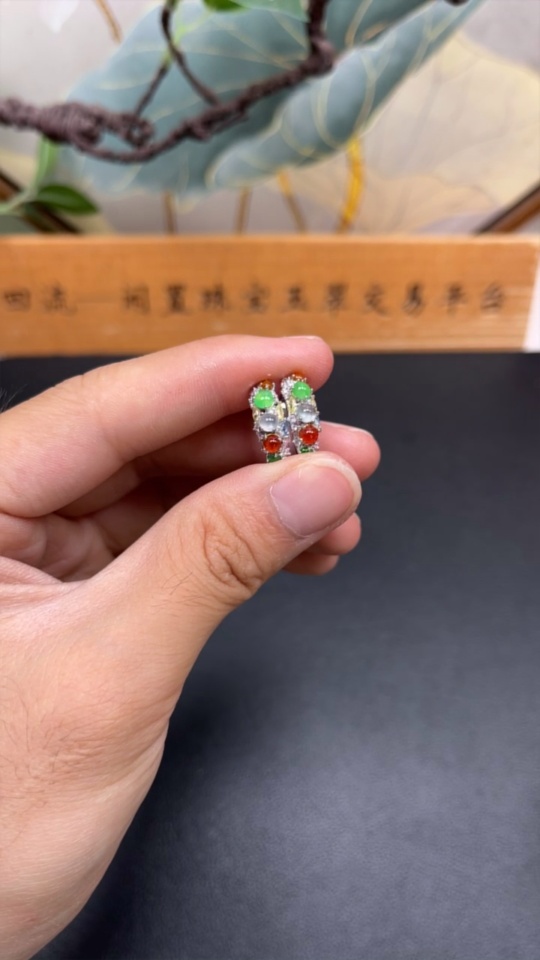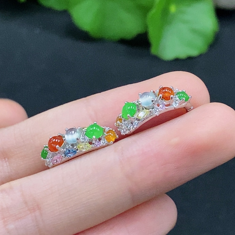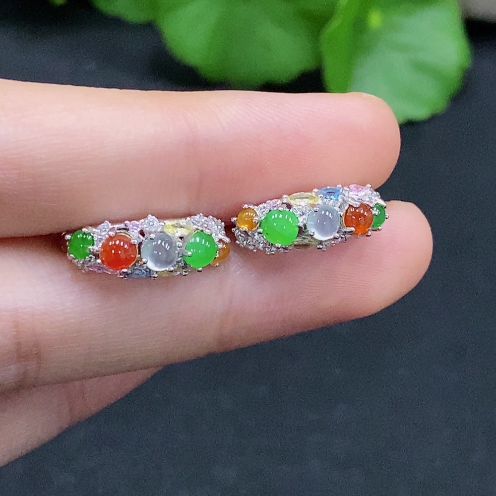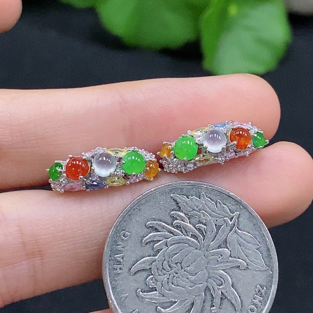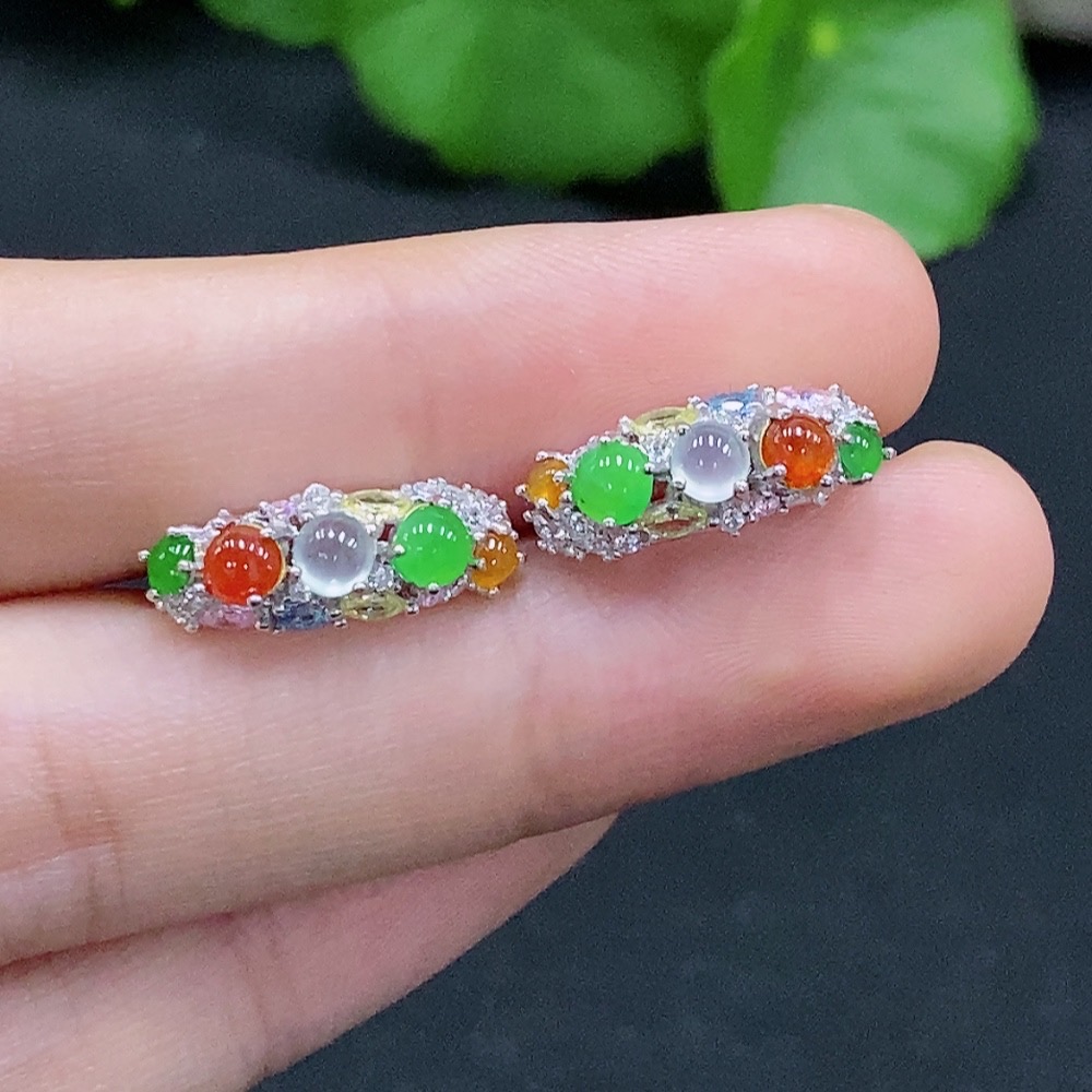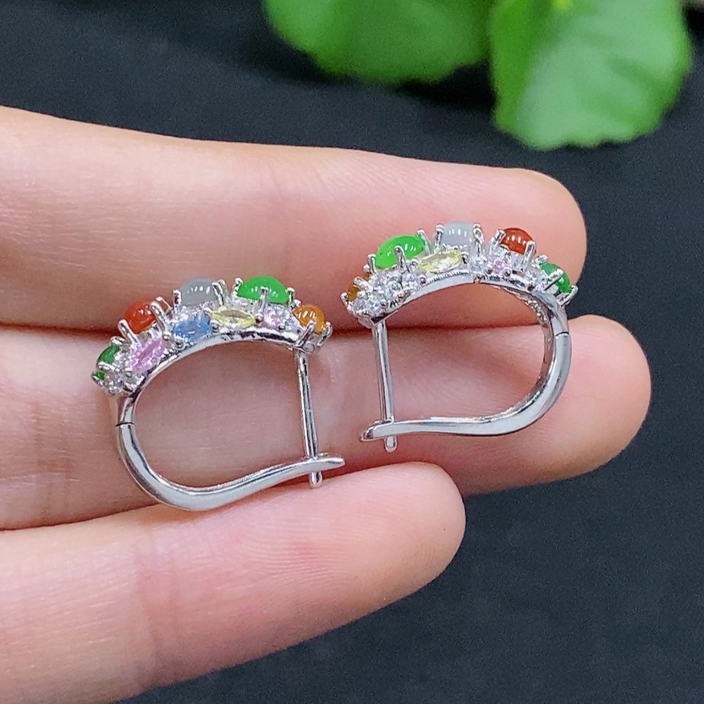 A pair of jadeite inlaid earrings Total weight about 2.9g (Non-gold inlaid) (Color origin undetermined)
