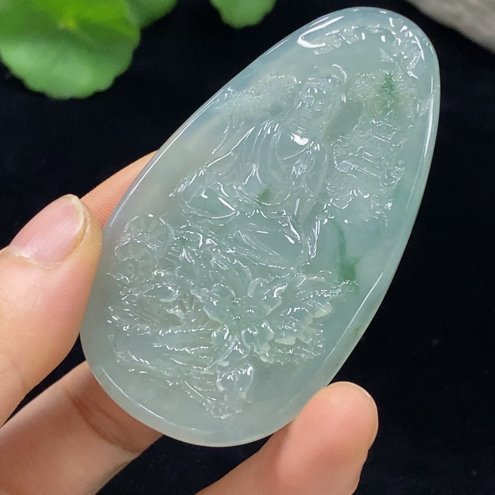 Jadeite Guanyin Pendant, Total Weight Approx. 36.45g
