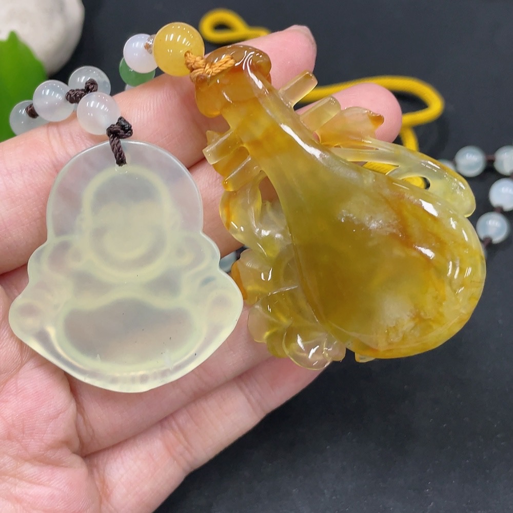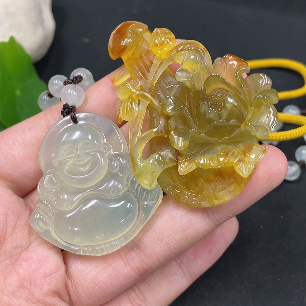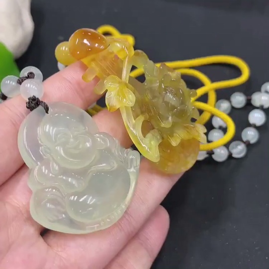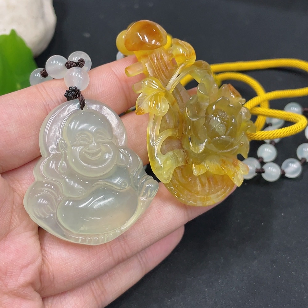 Trezaar - Xiuyu (Serpentine Jade) Pendant - Buddha + Soulmate
