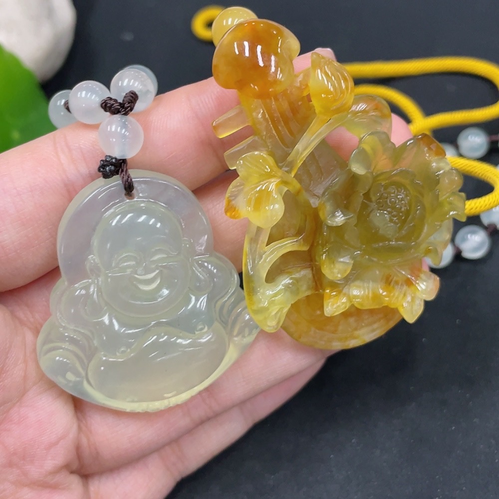 Xiuyu (Serpentine Jade) Pendant - Buddha + Soulmate
