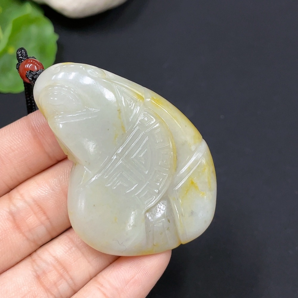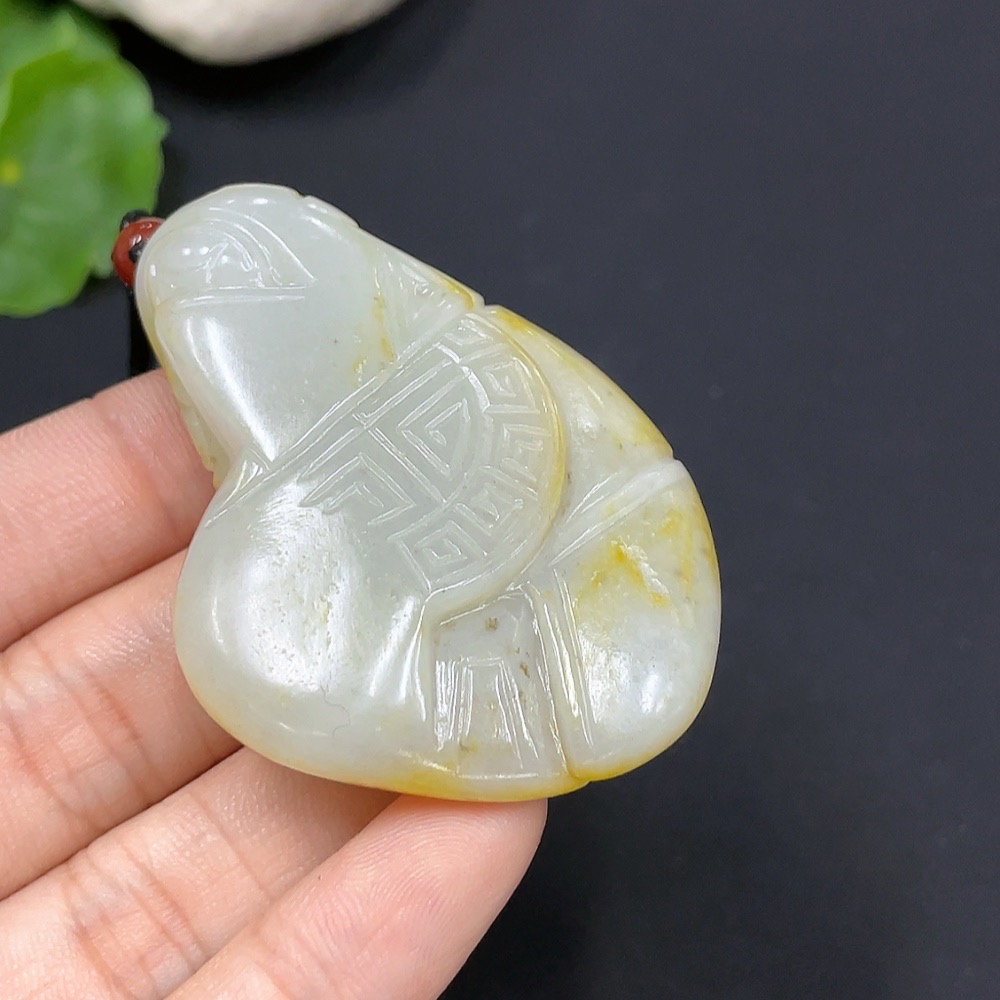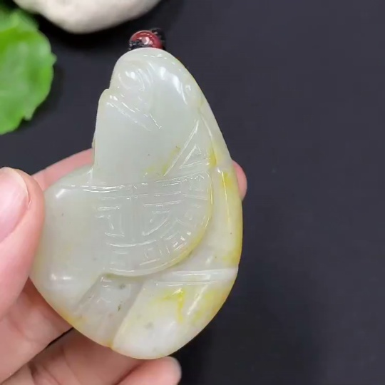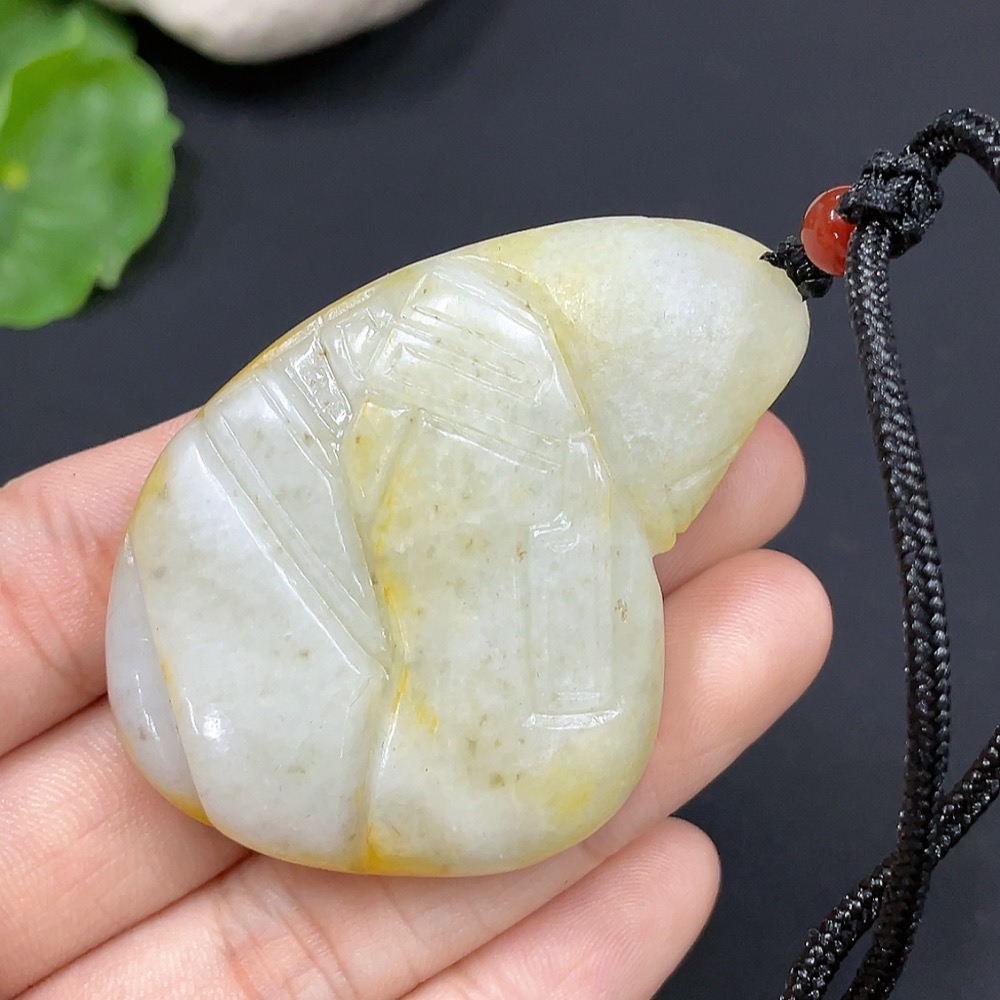 Hetian Jade antique pendant with rope, total weight approx. 43.3g (undetermined cause of skin color) (beads not Hetian Jade)